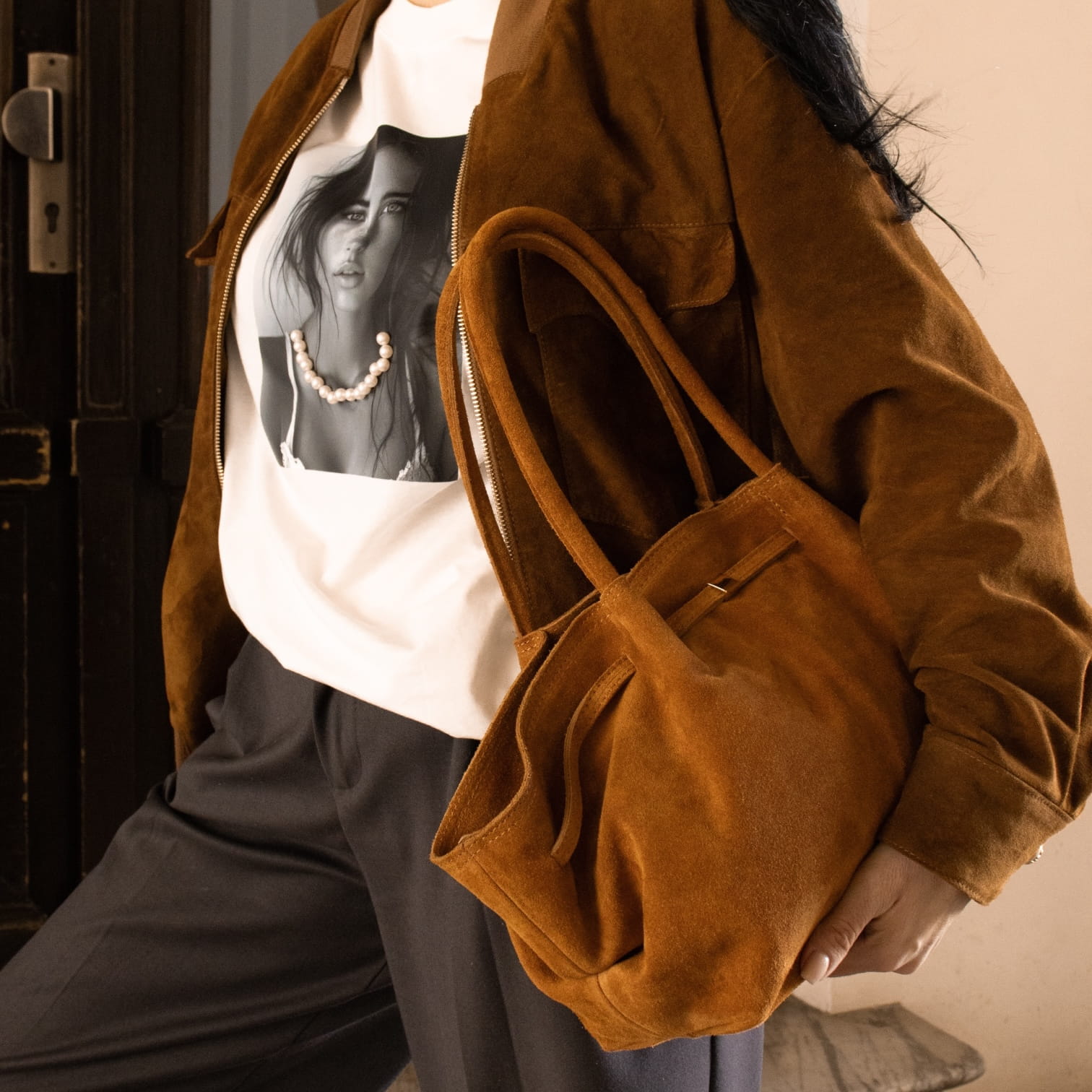 UWAGA !!! Proszę zwrócić uwagę, że zamszowa torba może farbować ubrania, zwłaszcza w jasnych odcieniach. Dzieje się tak ze względu na właściwości zamszu do wchłaniania i oddawania barwników. Zalecamy unikanie kontaktu z ubraniami podczas deszczu lub przy wysokiej wilgotności. Chroń torbę przed długotrwałym kontaktem z wodą i brudem, aby zachować jej kolor i strukturę.
