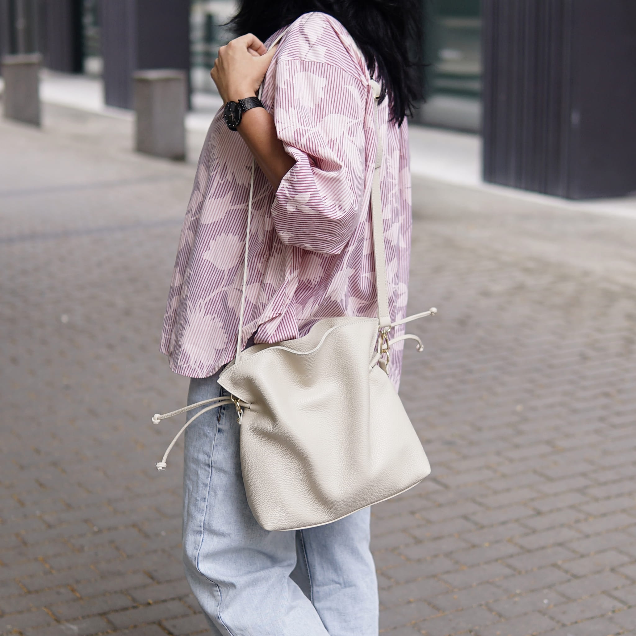 Skórzana torebka shopper Brae-M . Ręcznie wykonana z włoskiej skóry groszkowej. W zestawie dodatkowa saszetka na zamek na drobne przedmioty.