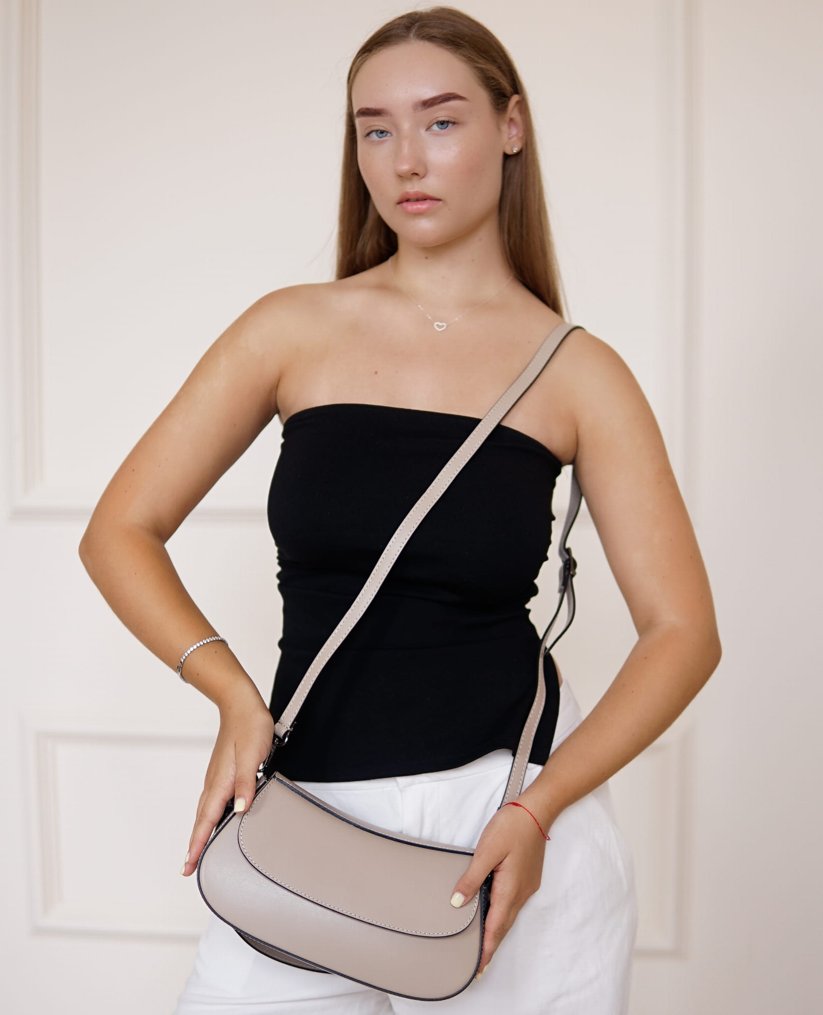 Torebka z włoskiej produkcji wykonana z delikatnej skóry, lekka, pojemna i elegancka, wyposażona w regulowany pasek, wykonana z wysokiej jakości naturalnej skóry. Doskonale komponuje się z każdym strojem, będąc idealnym dodatkiem do różnych okazji, zapewniając przy tym praktyczność i wygodę.