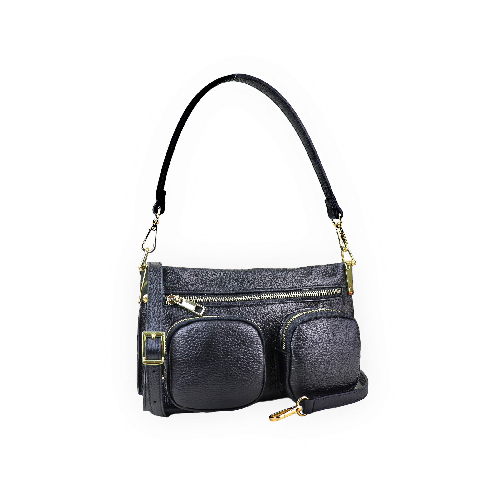 Stylowa torebka listonoszka z naturalnej skóry wyróżnia się nie tylko wysoką jakością wykonania, ale i praktycznymi rozwiązaniami. Posiada zarówno z przodu, jak i z tyłu praktyczne kieszenie zamykane na suwak, które umożliwiają bezpieczne przechowywanie drobnych przedmiotów i szybki dostęp do najpotrzebniejszych rzeczy. Regulowany pasek pozwala na dopasowanie torebki do indywidualnych preferencji, a jej kompaktowe rozmiary czynią ją idealną na codzienne wyjścia.