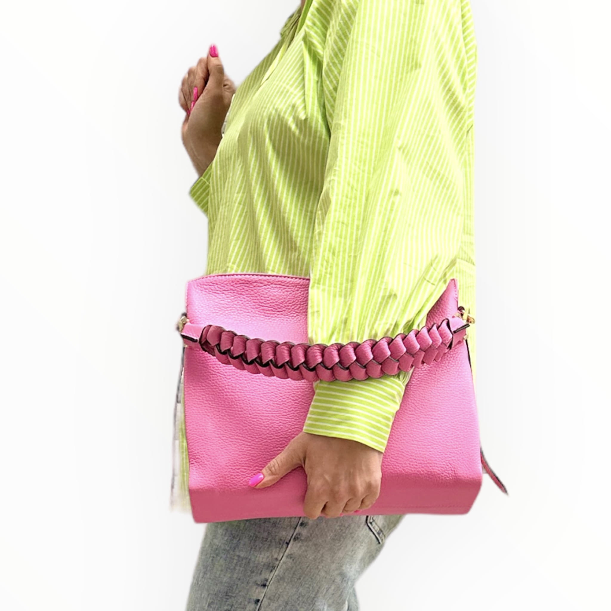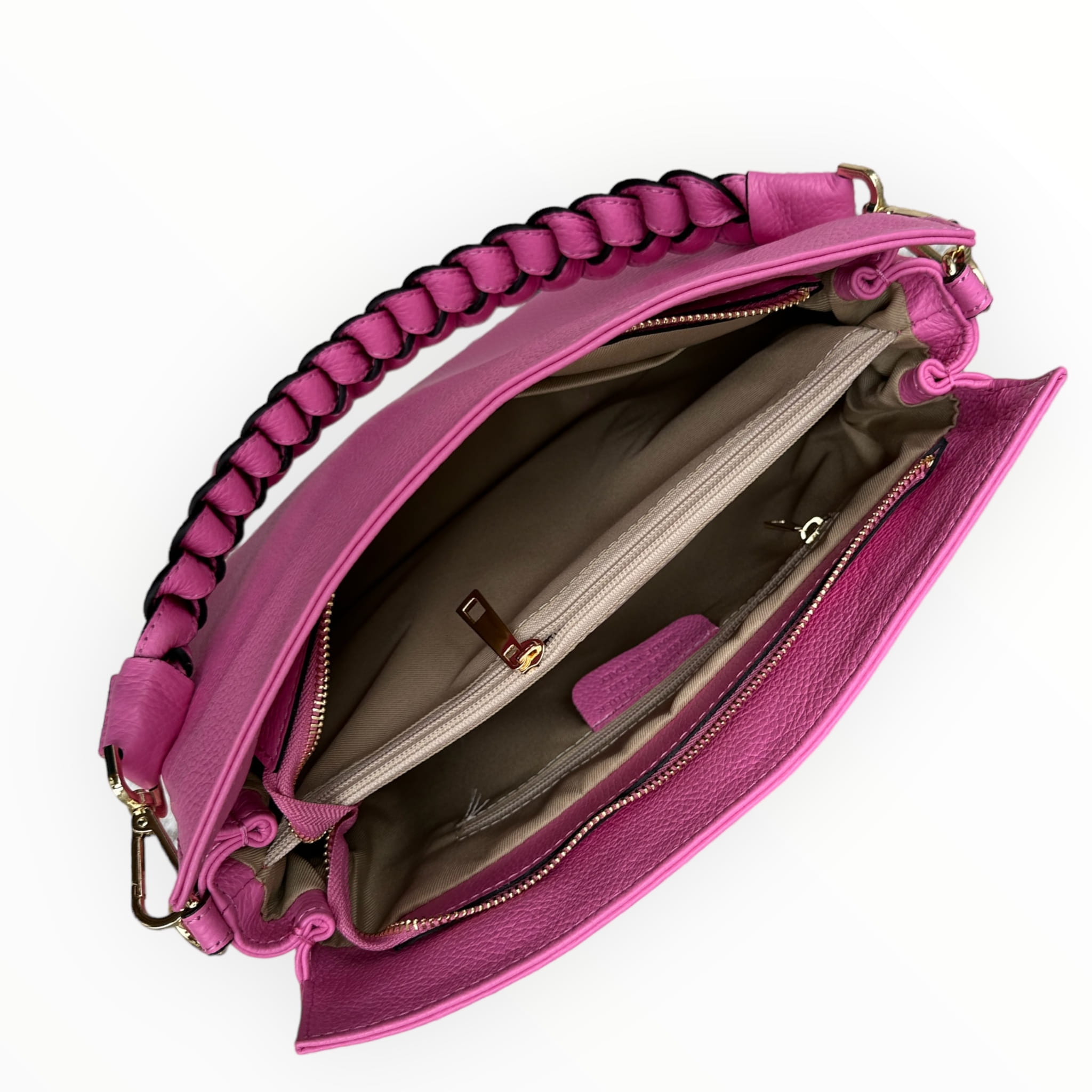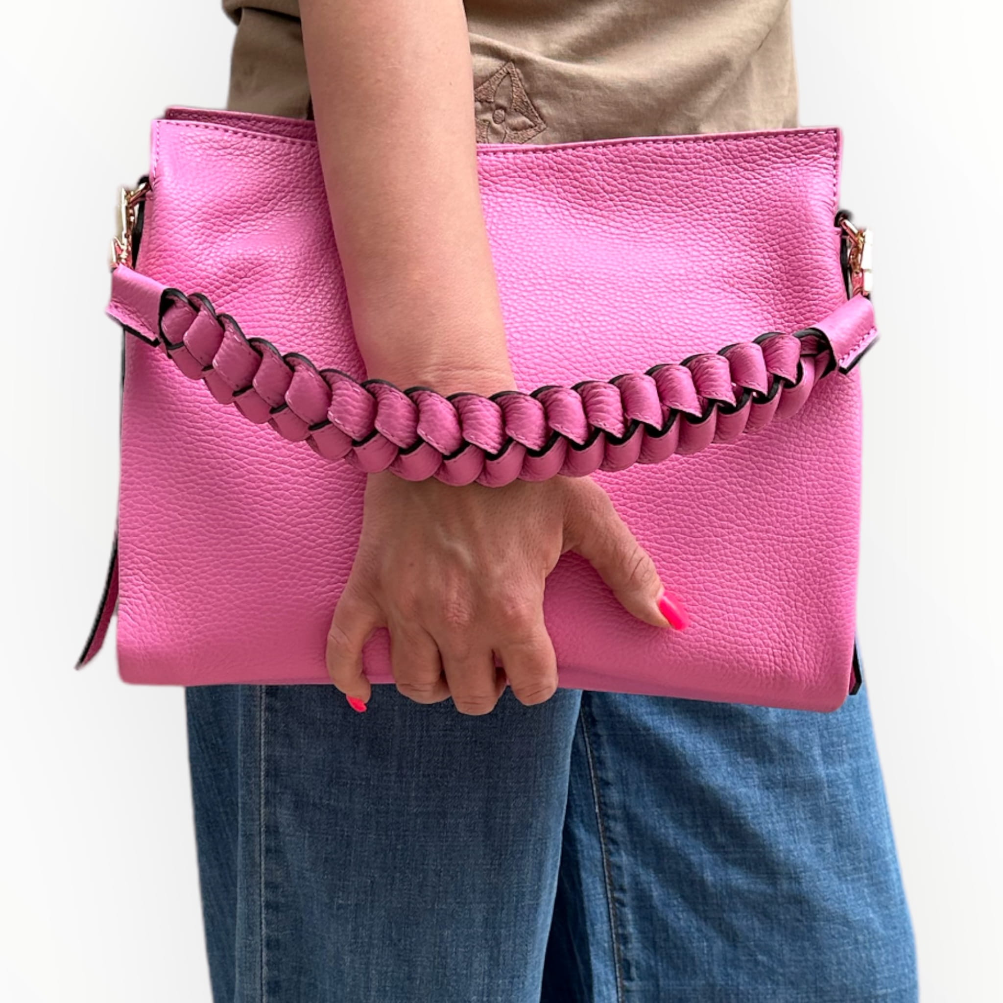 - Torebka posiada piękny pleciony pasek podręczny wykonany ze skóry naturalnej.