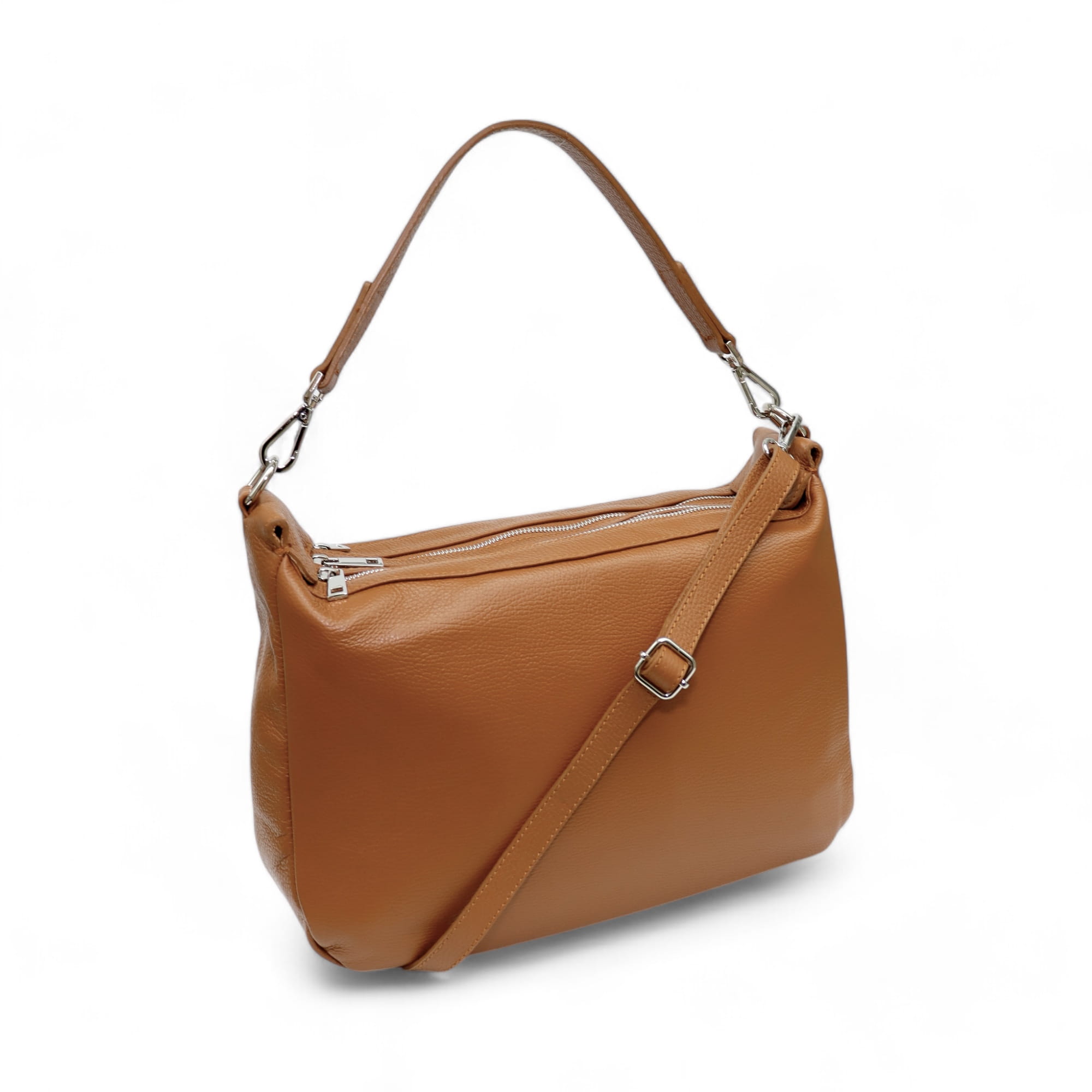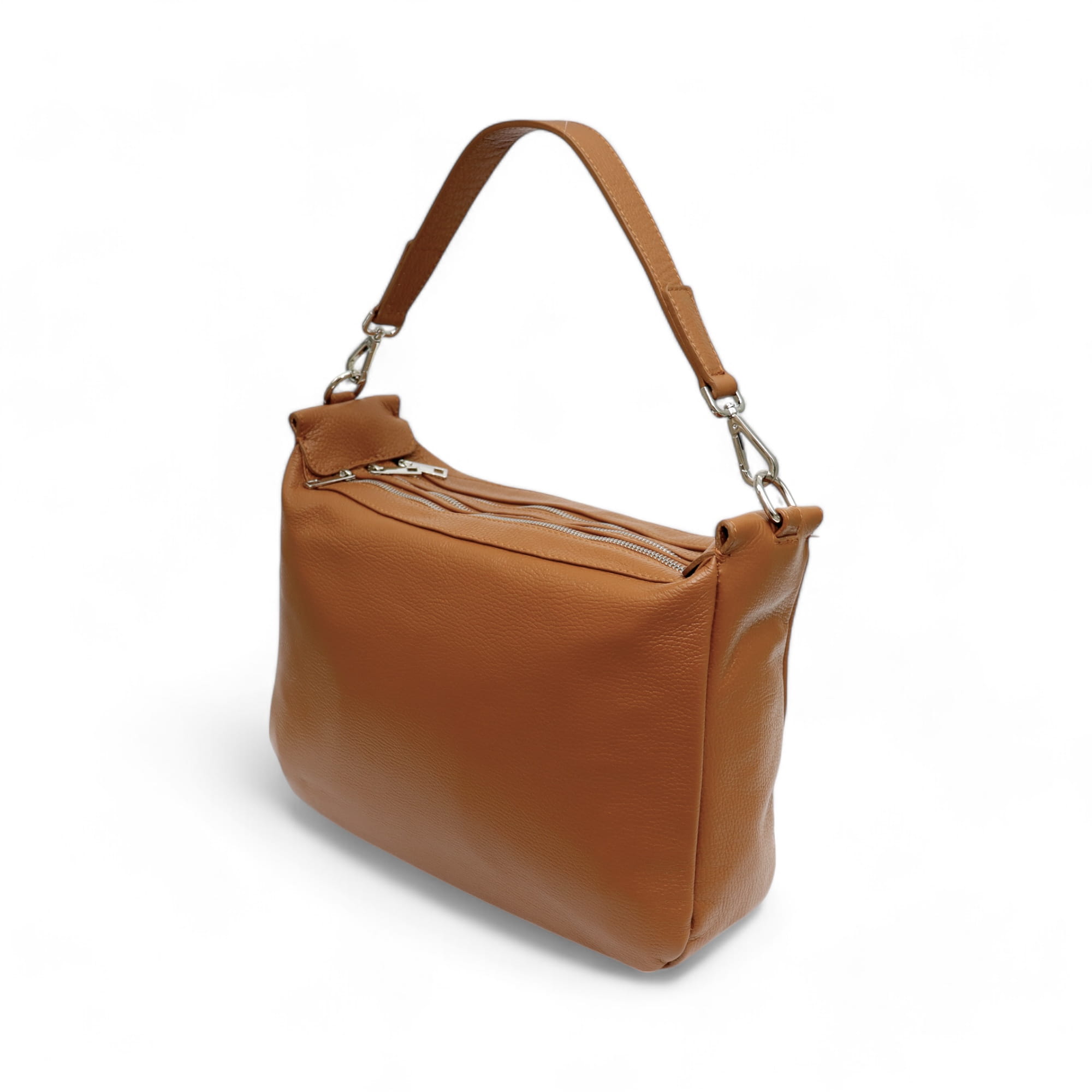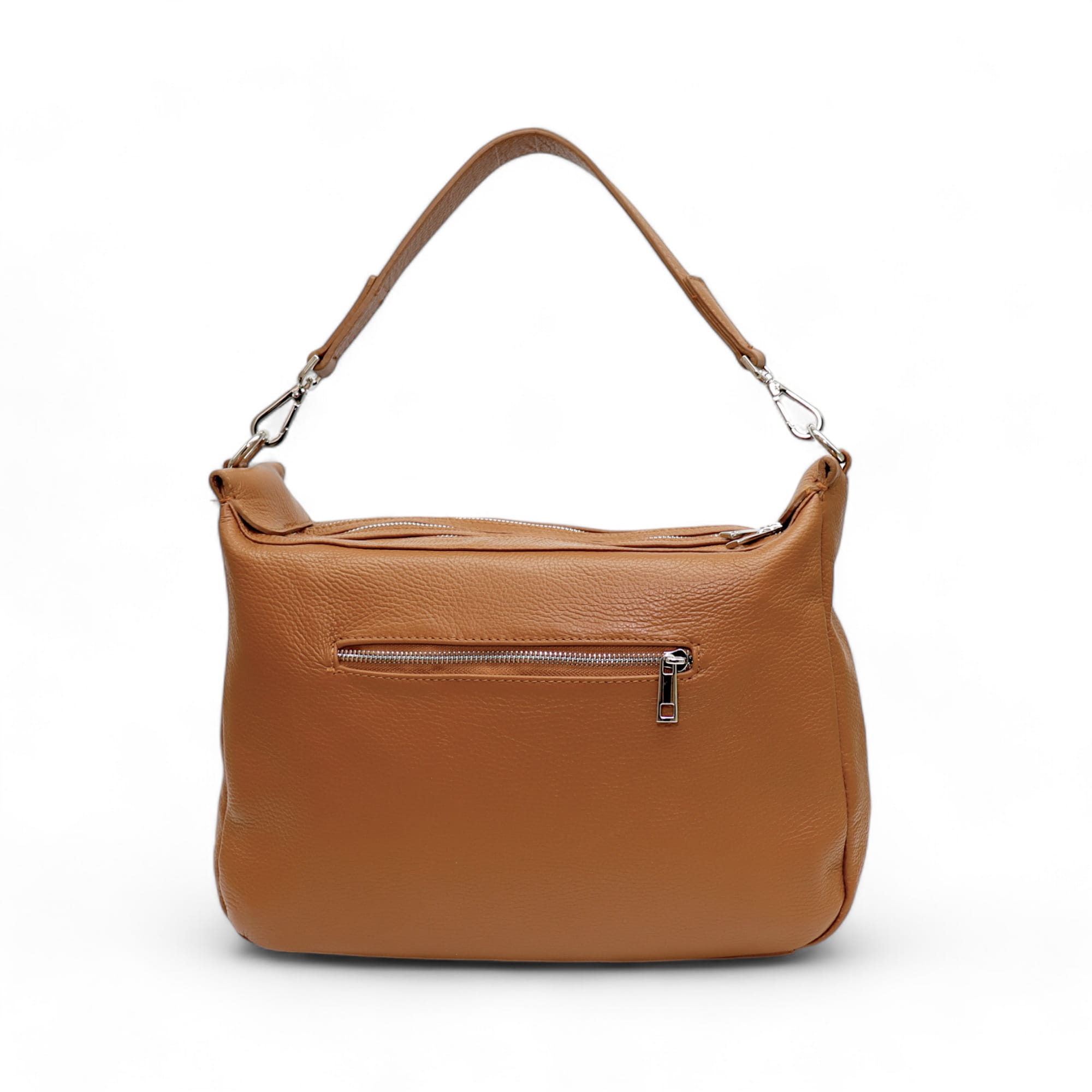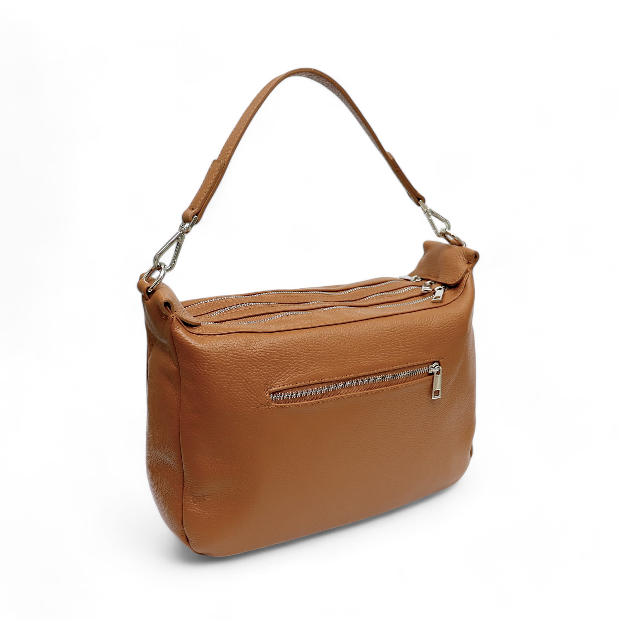 - Dwie dodatkowe otwarte kieszonki na telefon oraz jedną zamykaną na suwak w komorze głównej.