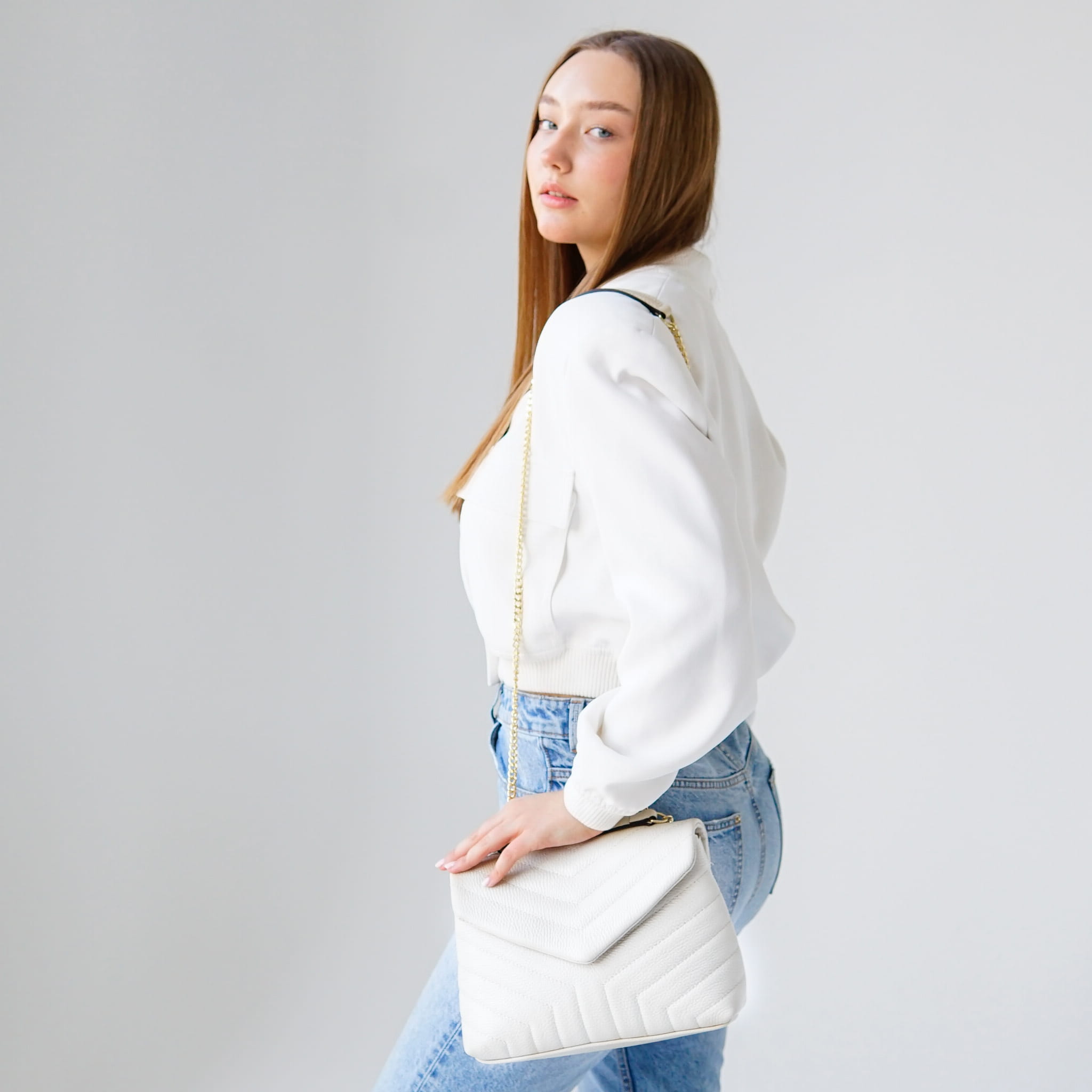 - Torebkę można nosić na ramię i przez ramię, ma dodatkowy pasek łańcuszek.