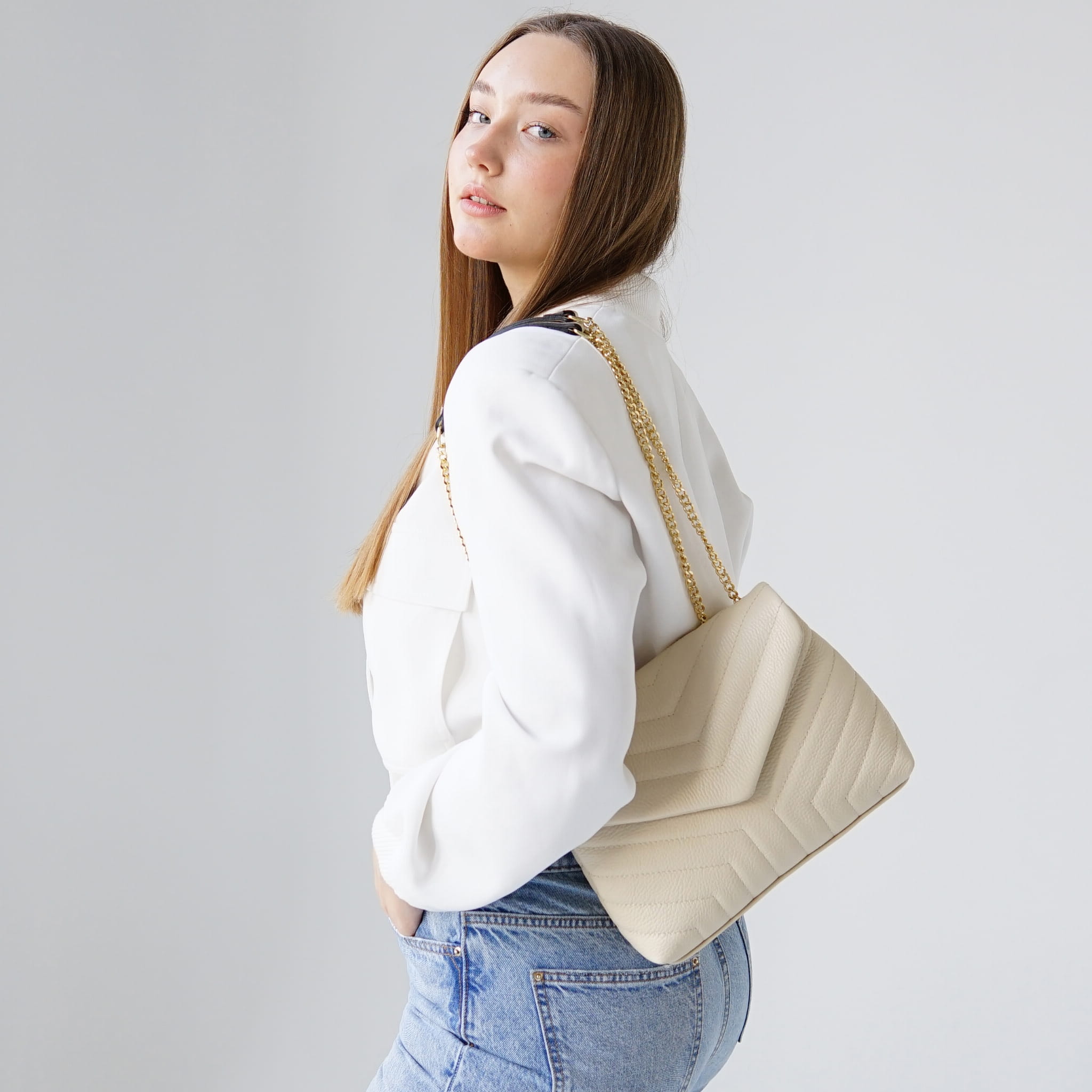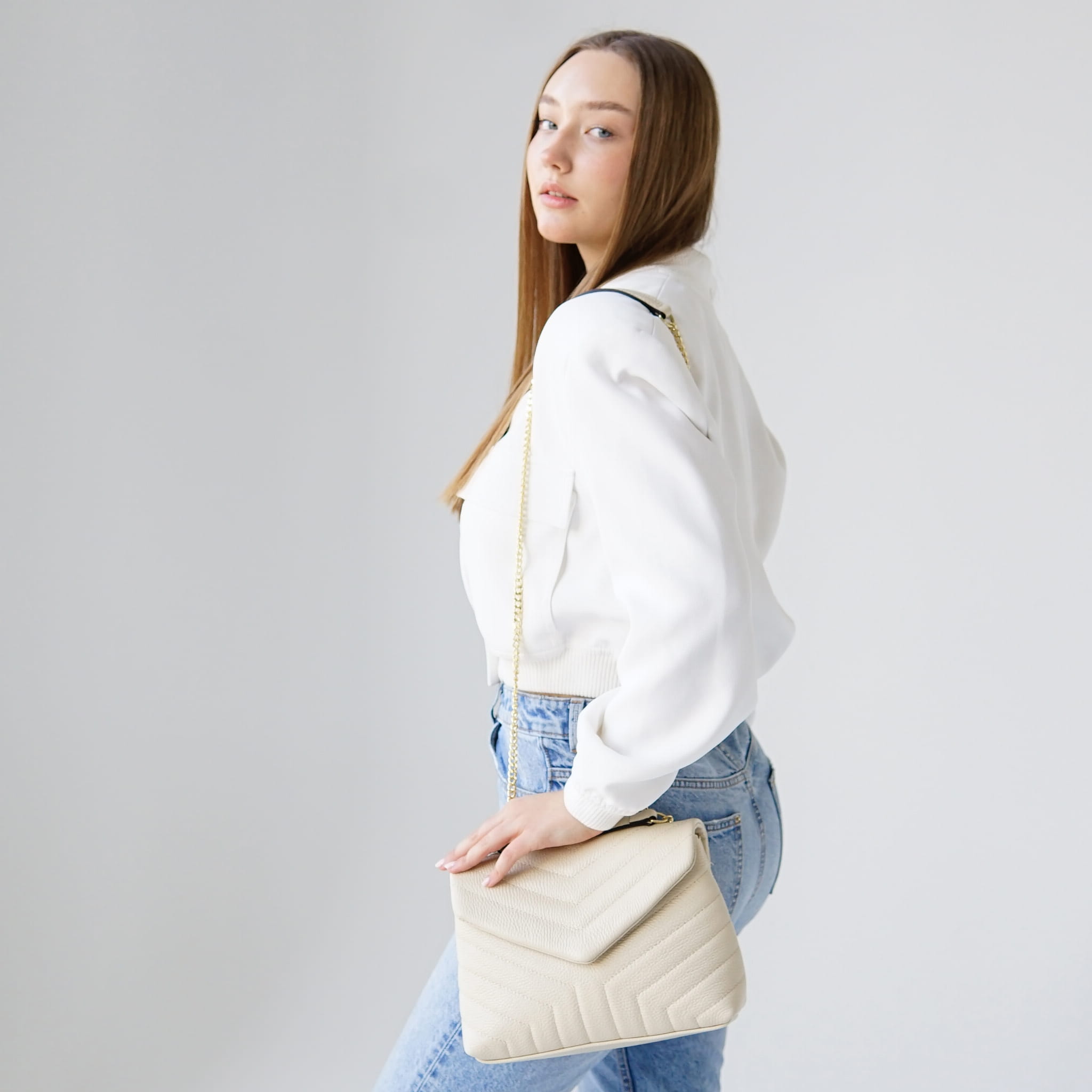 - Torebkę można nosić na ramię i przez ramię, ma dodatkowy pasek łańcuszek.