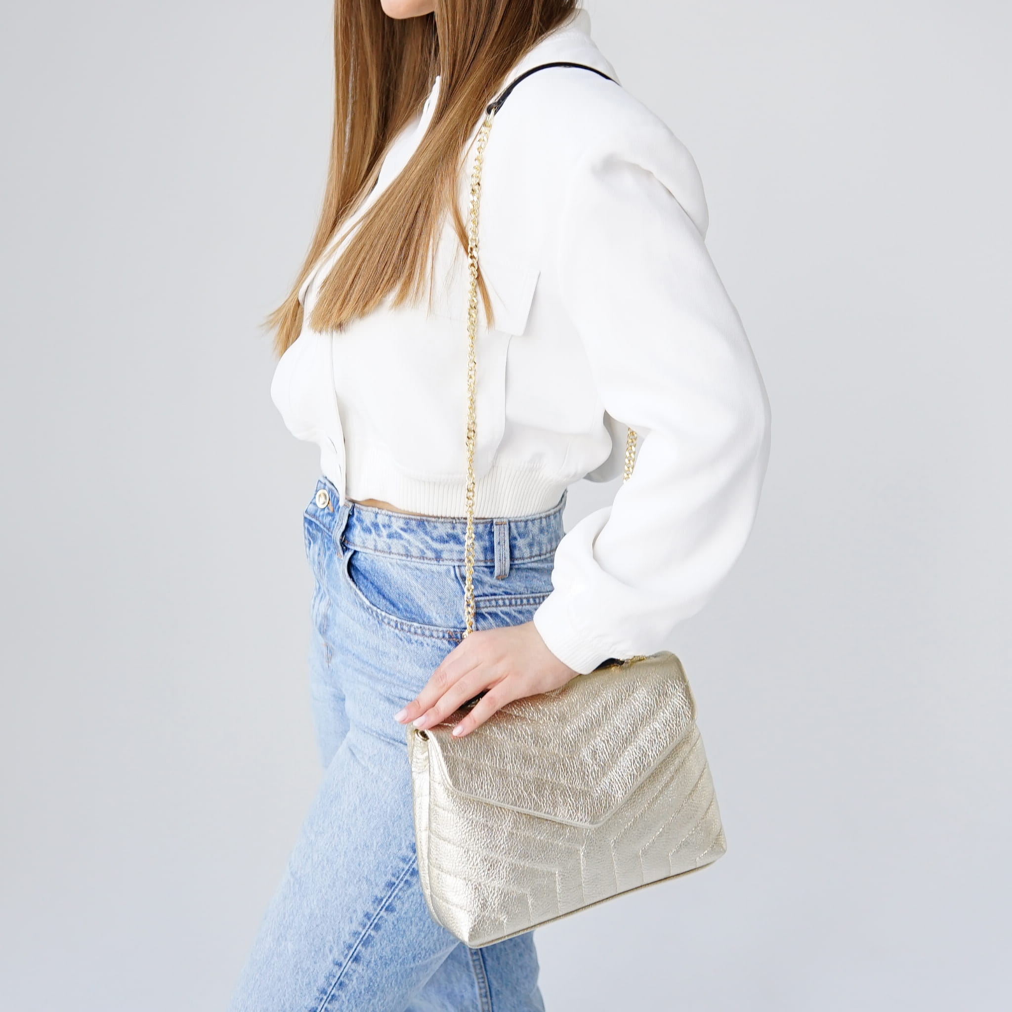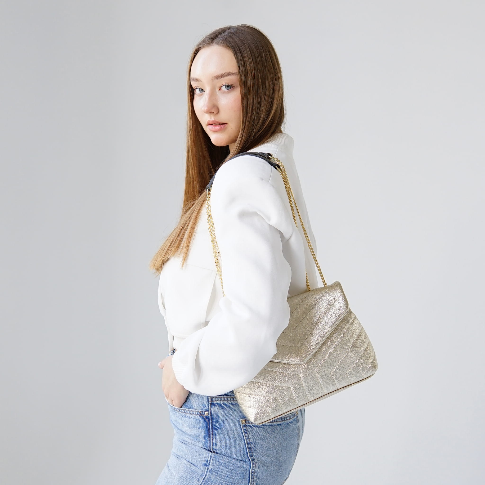 - Torebkę można nosić na ramię i przez ramię, ma dodatkowy pasek łańcuszek.