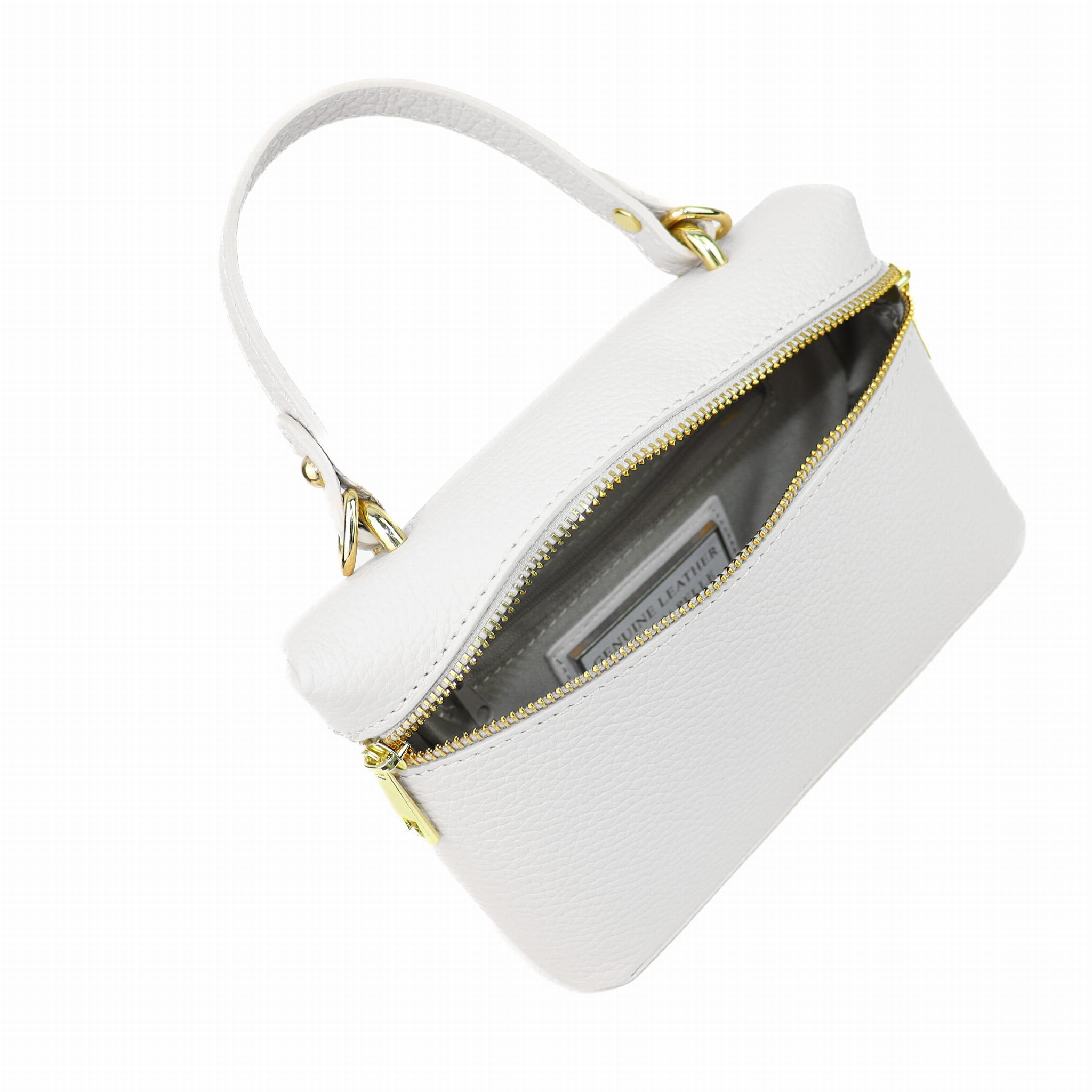 Ta stylowa mała torebka kuferek jest wykonana z wysokiej jakości naturalnej skóry, co nadaje jej elegancki i nowoczesny wygląd. Jej kompaktowy rozmiar jest idealny do codziennego użytku, ale jednocześnie jest wystarczająco pojemna, aby pomieścić wszystkie niezbędne rzeczy. Klasyczny design i wyrafinowanie materiału sprawiają, że jest idealnym akcesorium do każdego stroju, pomagając stworzyć spójny i stylowy wygląd.