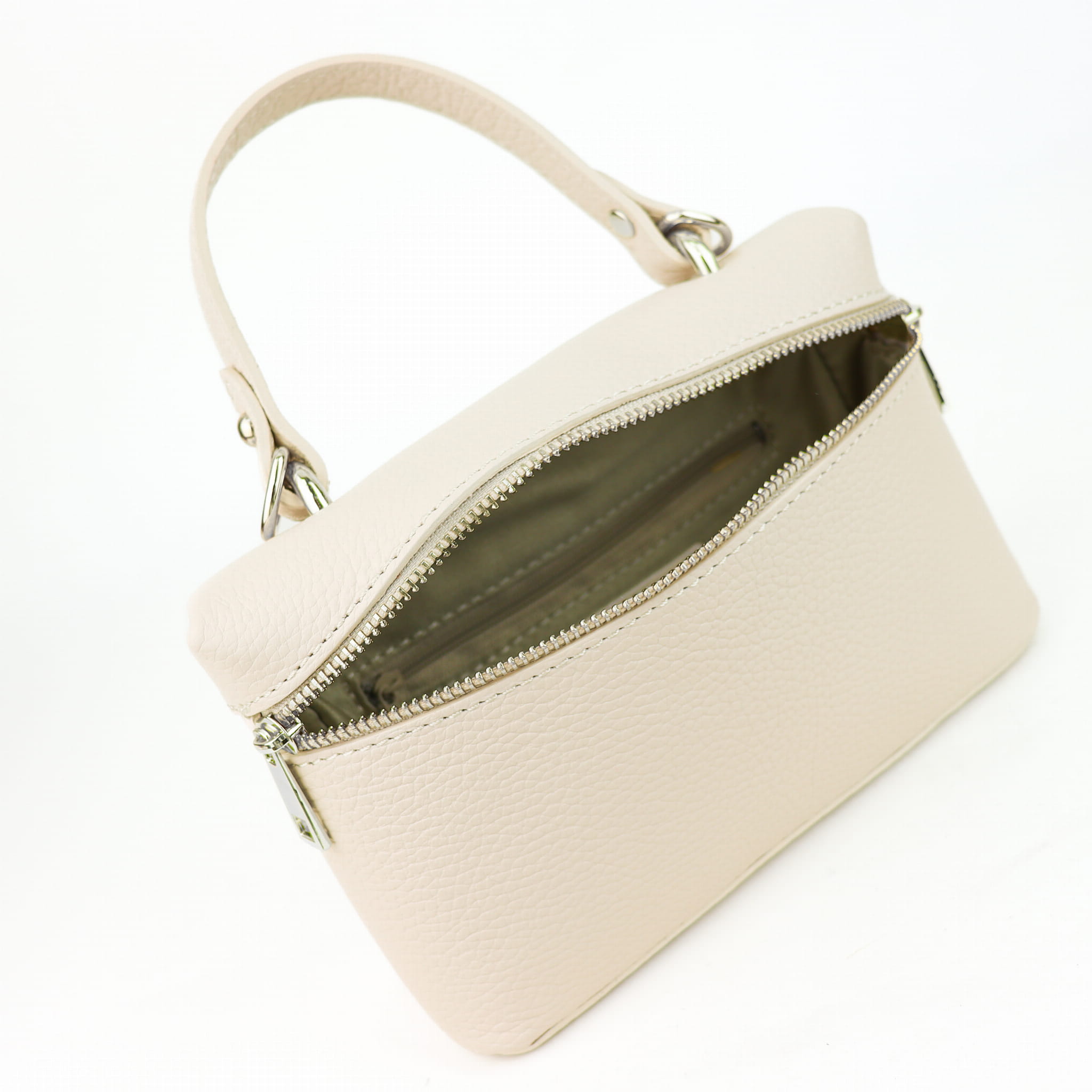Ta stylowa mała torebka kuferek jest wykonana z wysokiej jakości naturalnej skóry, co nadaje jej elegancki i nowoczesny wygląd. Jej kompaktowy rozmiar jest idealny do codziennego użytku, ale jednocześnie jest wystarczająco pojemna, aby pomieścić wszystkie niezbędne rzeczy. Klasyczny design i wyrafinowanie materiału sprawiają, że jest idealnym akcesorium do każdego stroju, pomagając stworzyć spójny i stylowy wygląd.