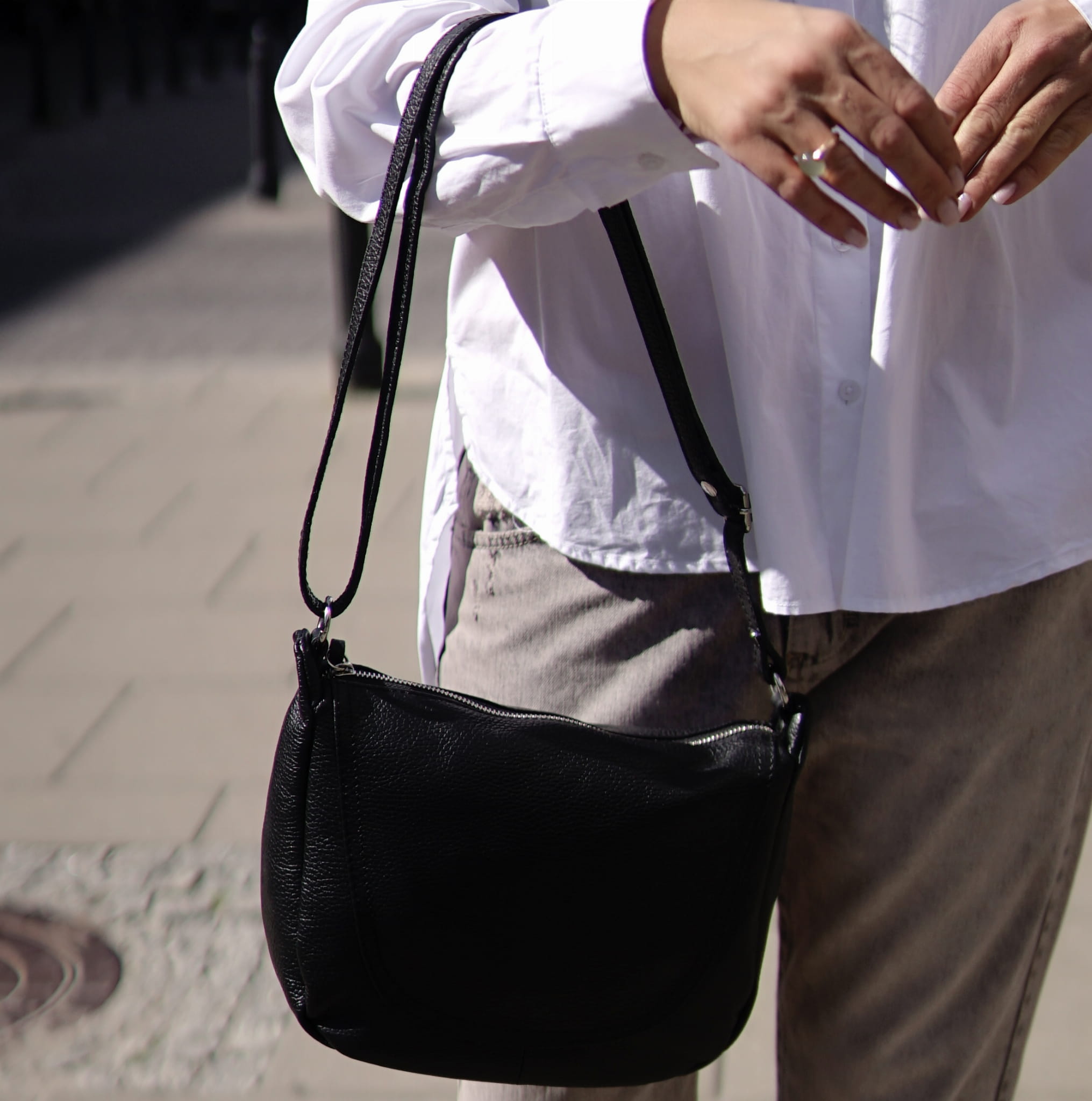 - Ten model torebki posiada jedną komorę zasuwana na suwak