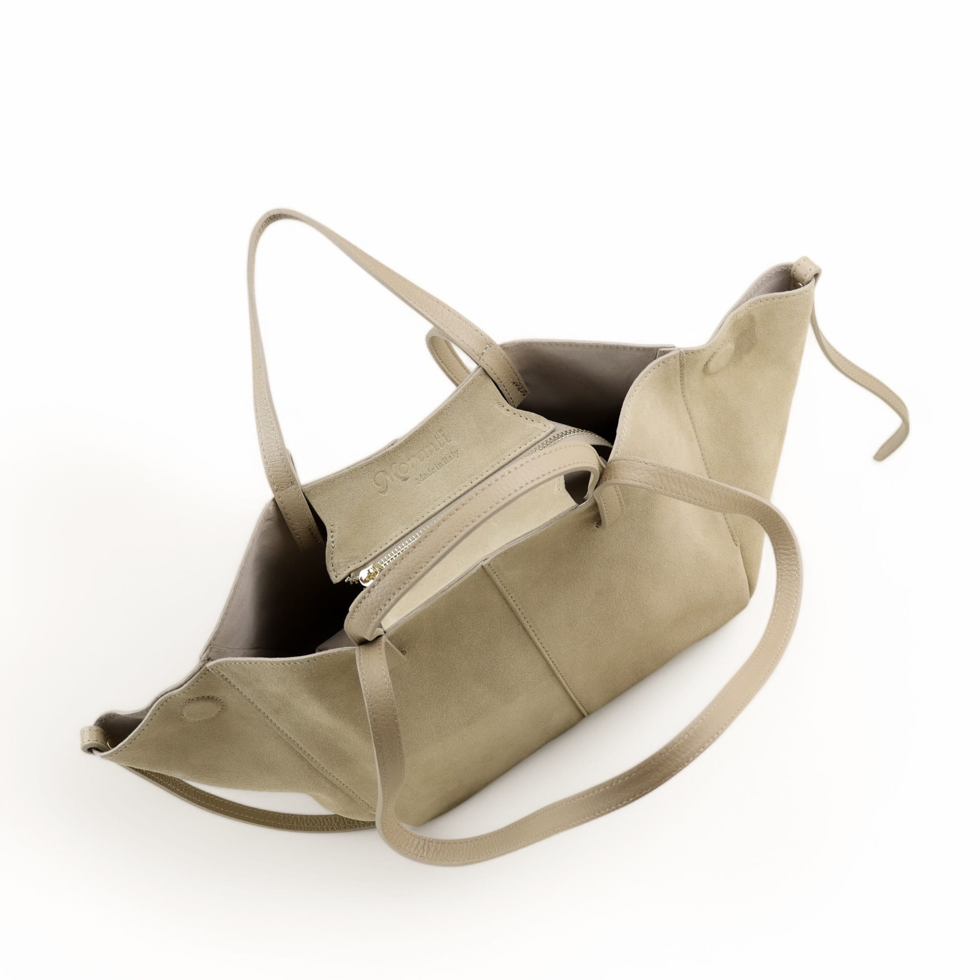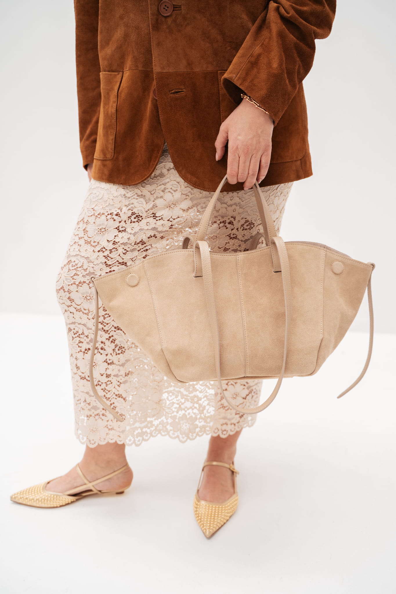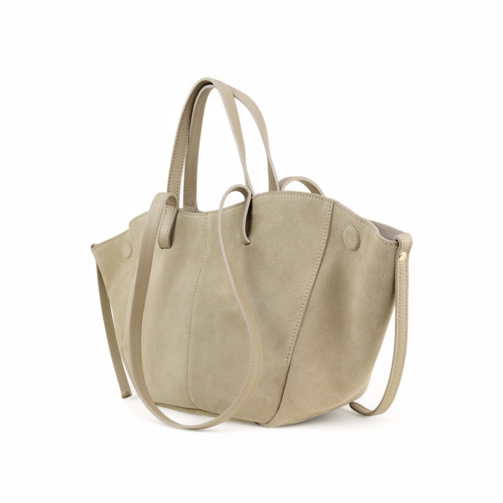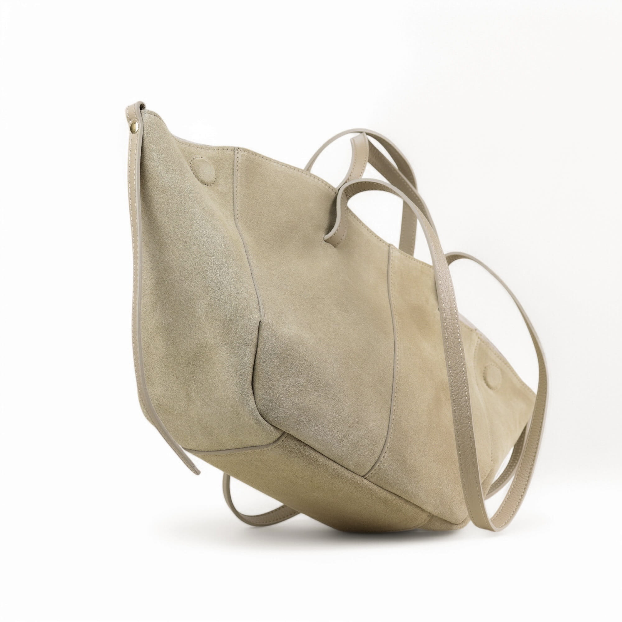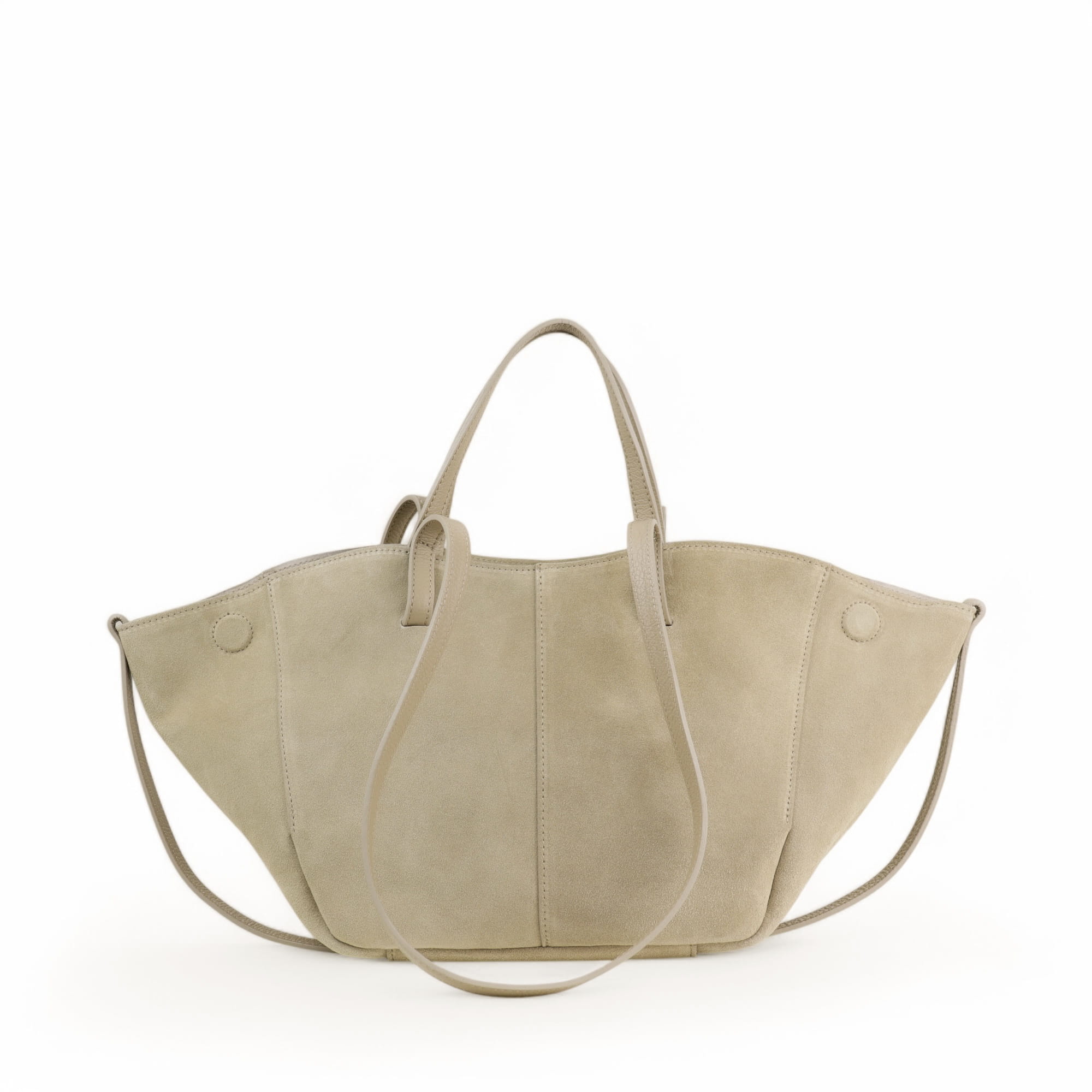 • Torebka zmienia kształt w zależności od potrzeb — rozszerz bok dla większej pojemności albo ściśnij, by wyglądała bardziej kompaktowo.