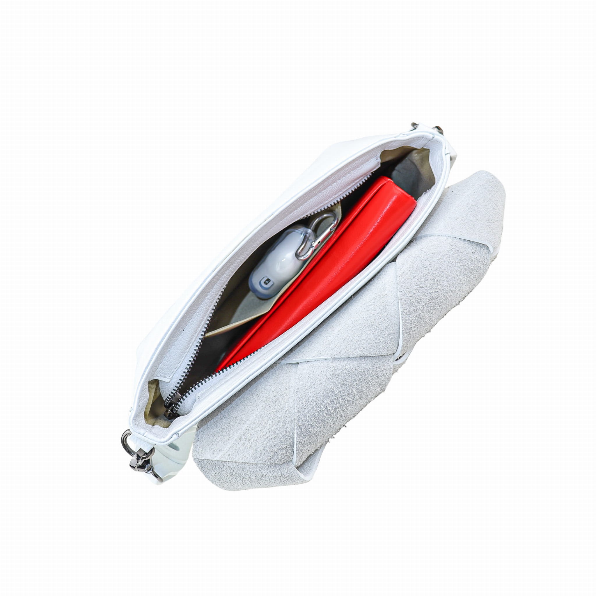 - Mieści portfel, okulary, telefon.