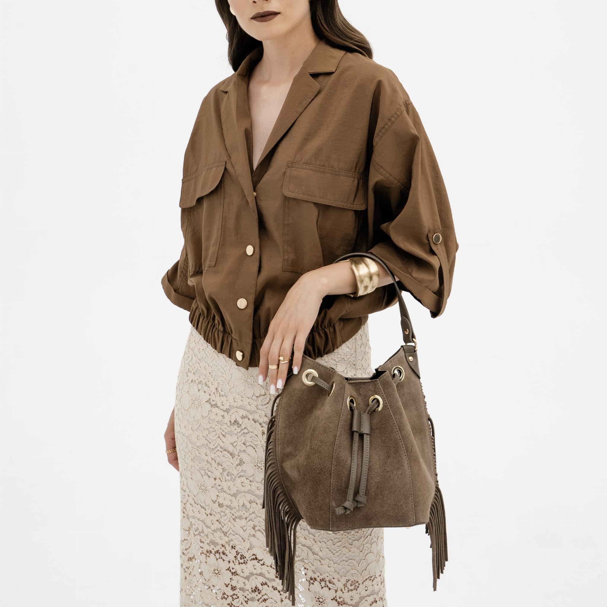 UWAGA !!! Proszę zwrócić uwagę, że zamszowa torba może farbować ubrania, zwłaszcza w jasnych odcieniach. Dzieje się tak ze względu na właściwości zamszu do wchłaniania i oddawania barwników. Zalecamy unikanie kontaktu z ubraniami podczas deszczu lub przy wysokiej wilgotności. Chroń torbę przed długotrwałym kontaktem z wodą i brudem, aby zachować jej kolor i strukturę.