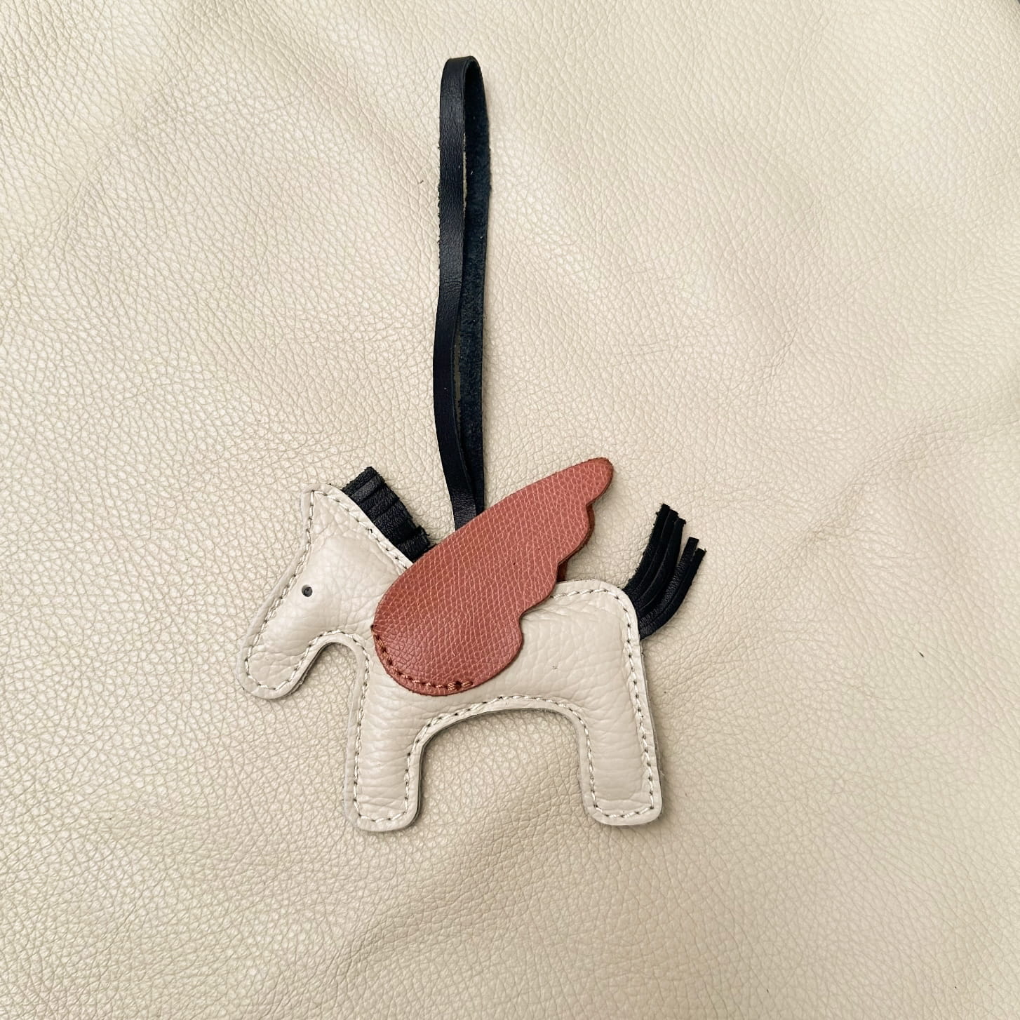 Ręcznie wykonany brelok Pegas z naturalnej skóry to nie tylko uroczy detal — to Twój osobisty talizman. Kolorowe skrzydła, kontrastowa grzywa i miękka forma konika sprawiają, że każda torebka zyskuje charakter i nutę fantazji.