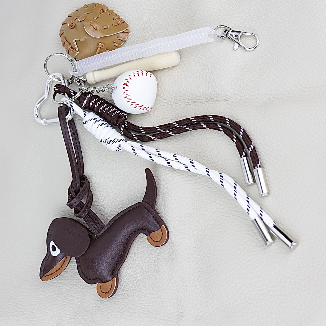 Szukasz unikalnego akcentu, który doda Twojej torebce charakteru? Ten designerski brelok z uroczą taksą to idealny wybór! Wykonany z wysokiej jakości materiałów, ozdobiony dodatkami inspirowanymi baseballem, sprawi, że Twoja torebka stanie się jeszcze bardziej wyjątkowa.