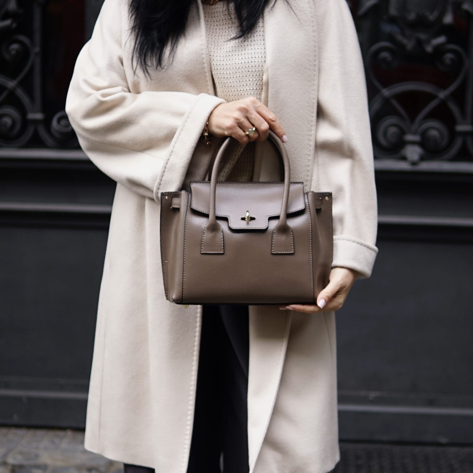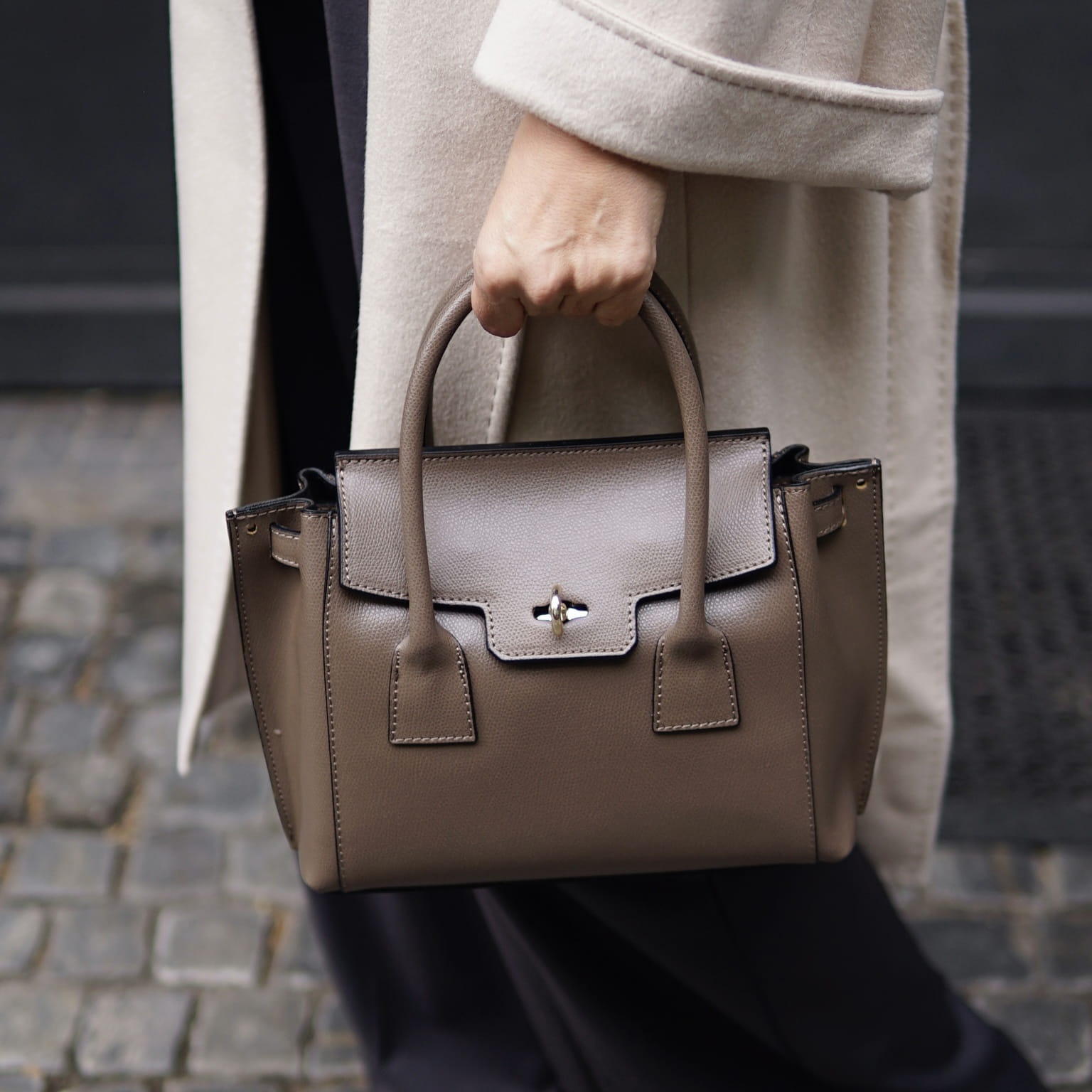 Posiada nóżki u podstawy, zabezpieczają torebkę przed zarysowaniami.