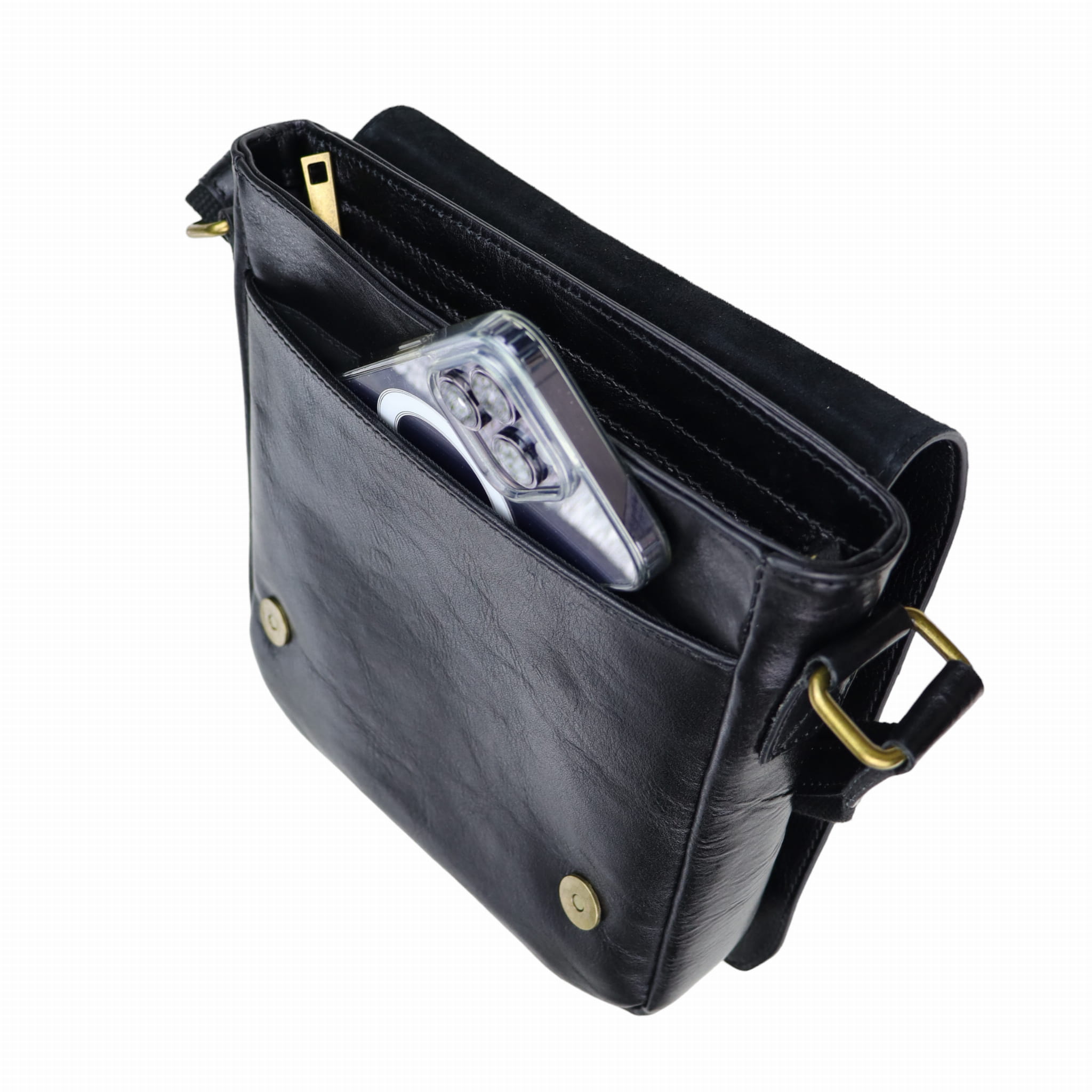 Torba zapinana jest na dwa bezpieczne magnesy, a główna komora zamykana jest na mocny zamek błyskawiczny, co zapewnia ochronę przechowywanych rzeczy. Wnętrze torby zaprojektowano z myślą o praktyczności – znajduje się tam jedna otwarta kieszeń oraz jedna kieszeń zamykana na zamek, które pomogą w organizacji niezbędnych akcesoriów. Dodatkowo, torba wyposażona jest w regulowany skórzany pasek na ramię, co umożliwia dostosowanie długości do indywidualnych potrzeb.