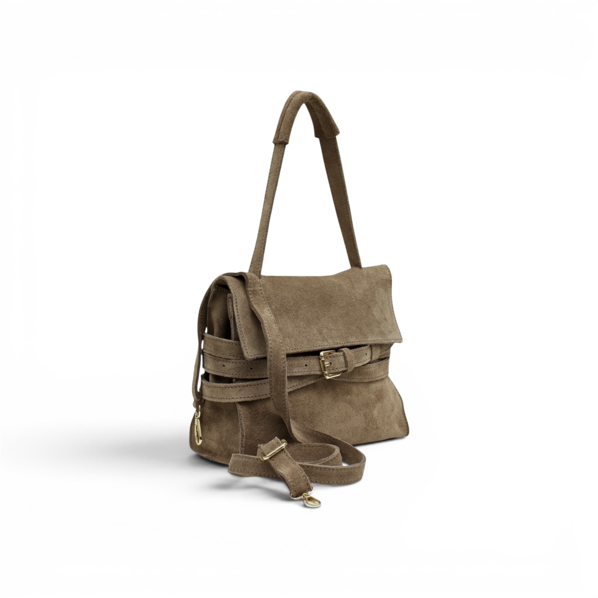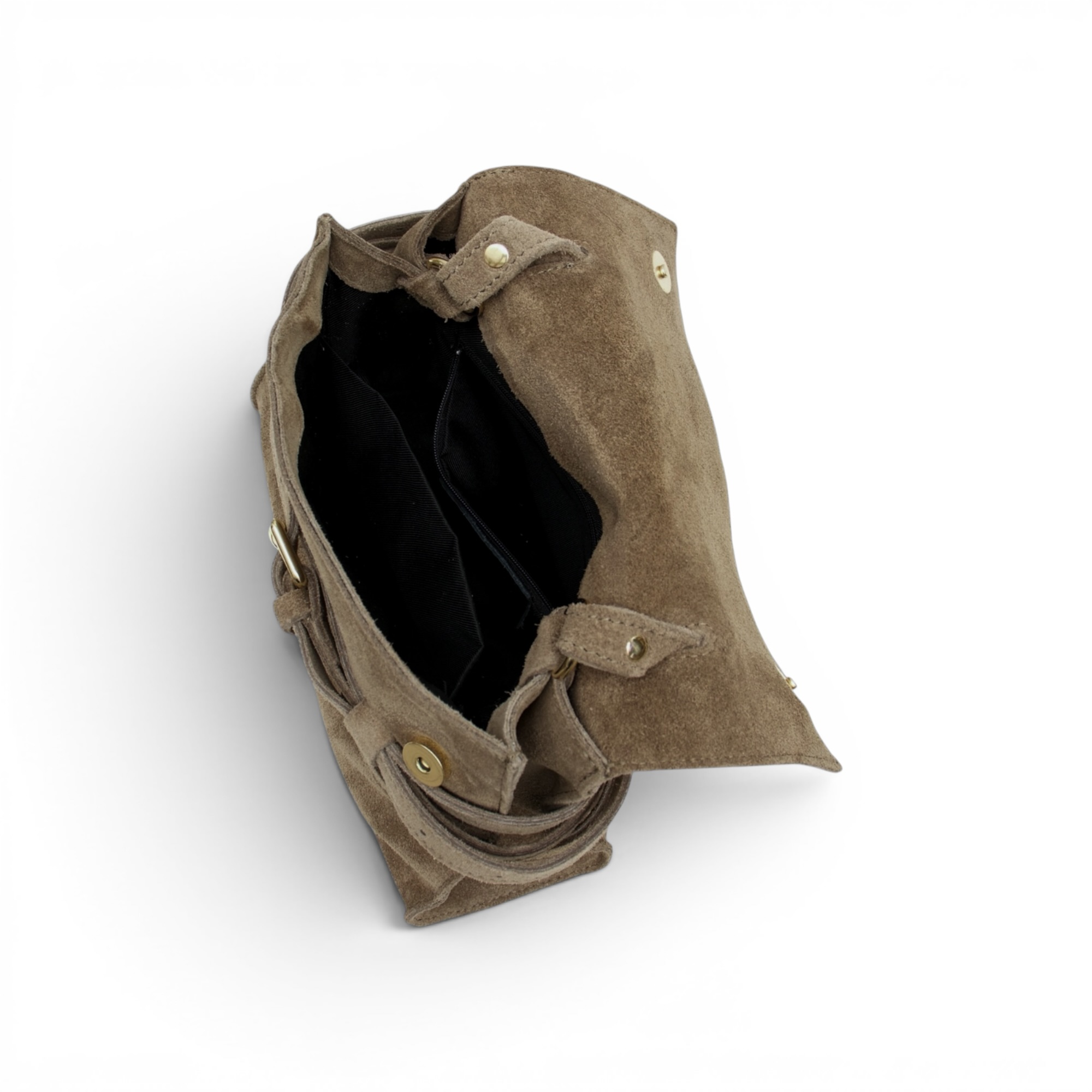Stylowa i funkcjonalna torebka damska wykonana z wysokiej jakości naturalnej skóry zamszowej, uszyta we Włoszech. Idealna na co dzień oraz na wyjątkowe okazje – łączy kompaktowy rozmiar z praktycznym wnętrzem.