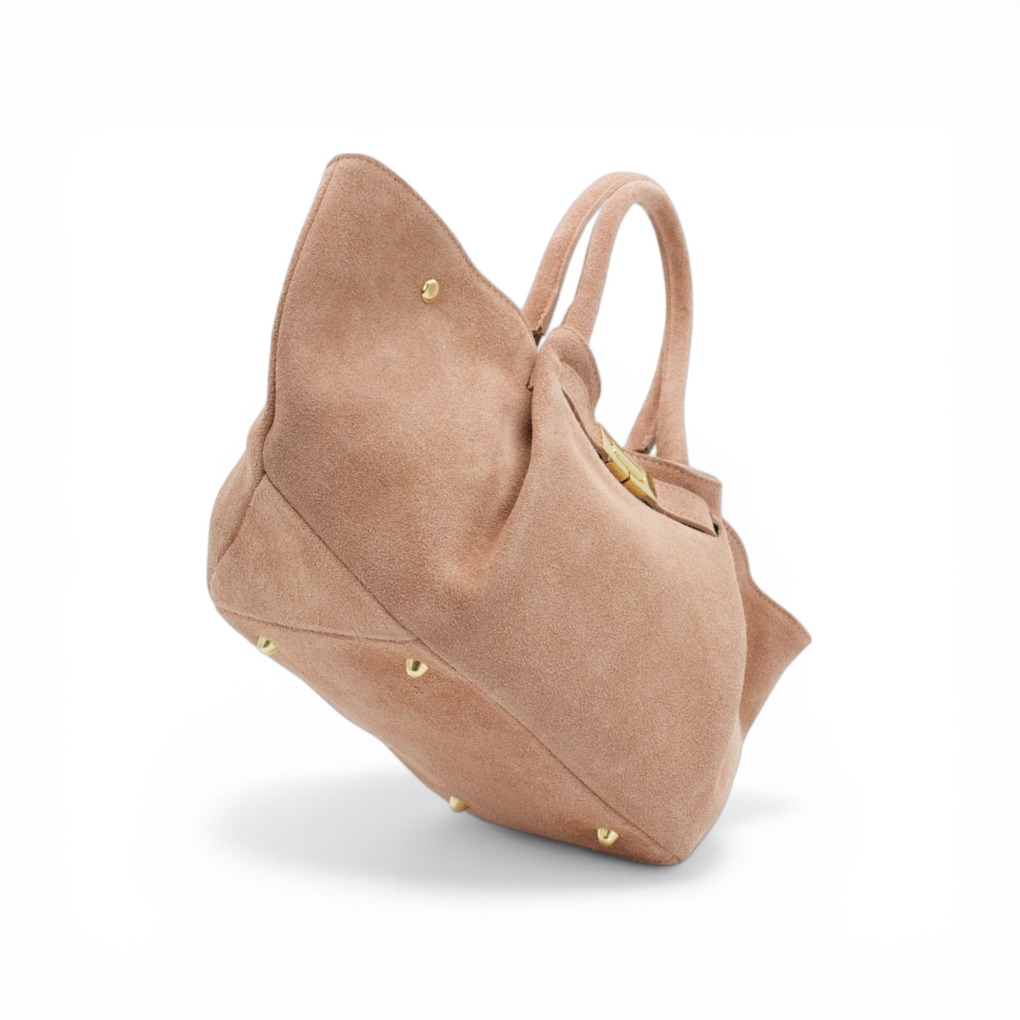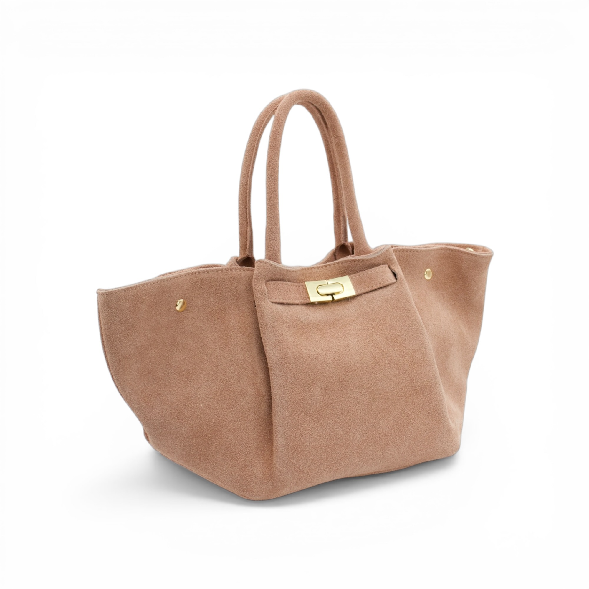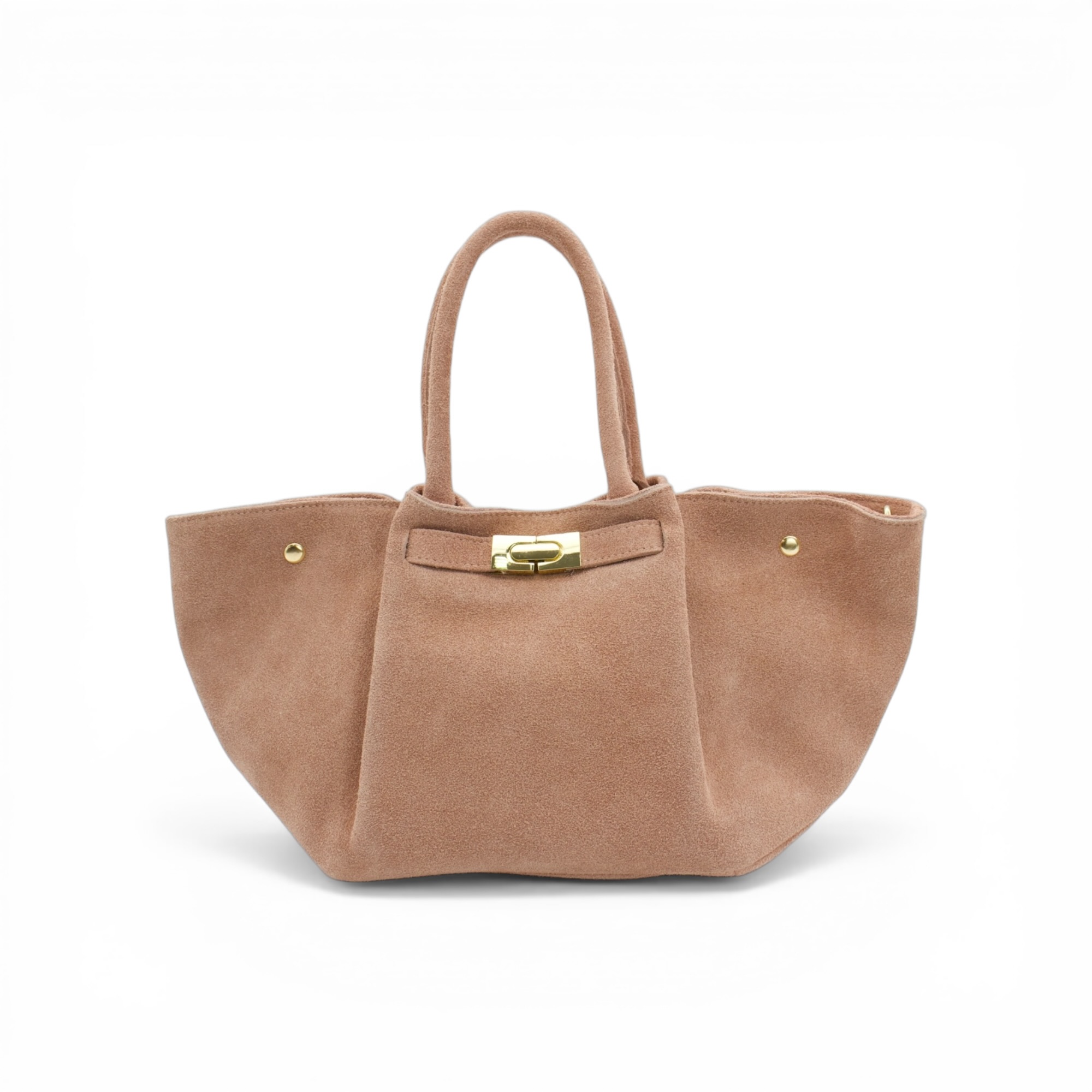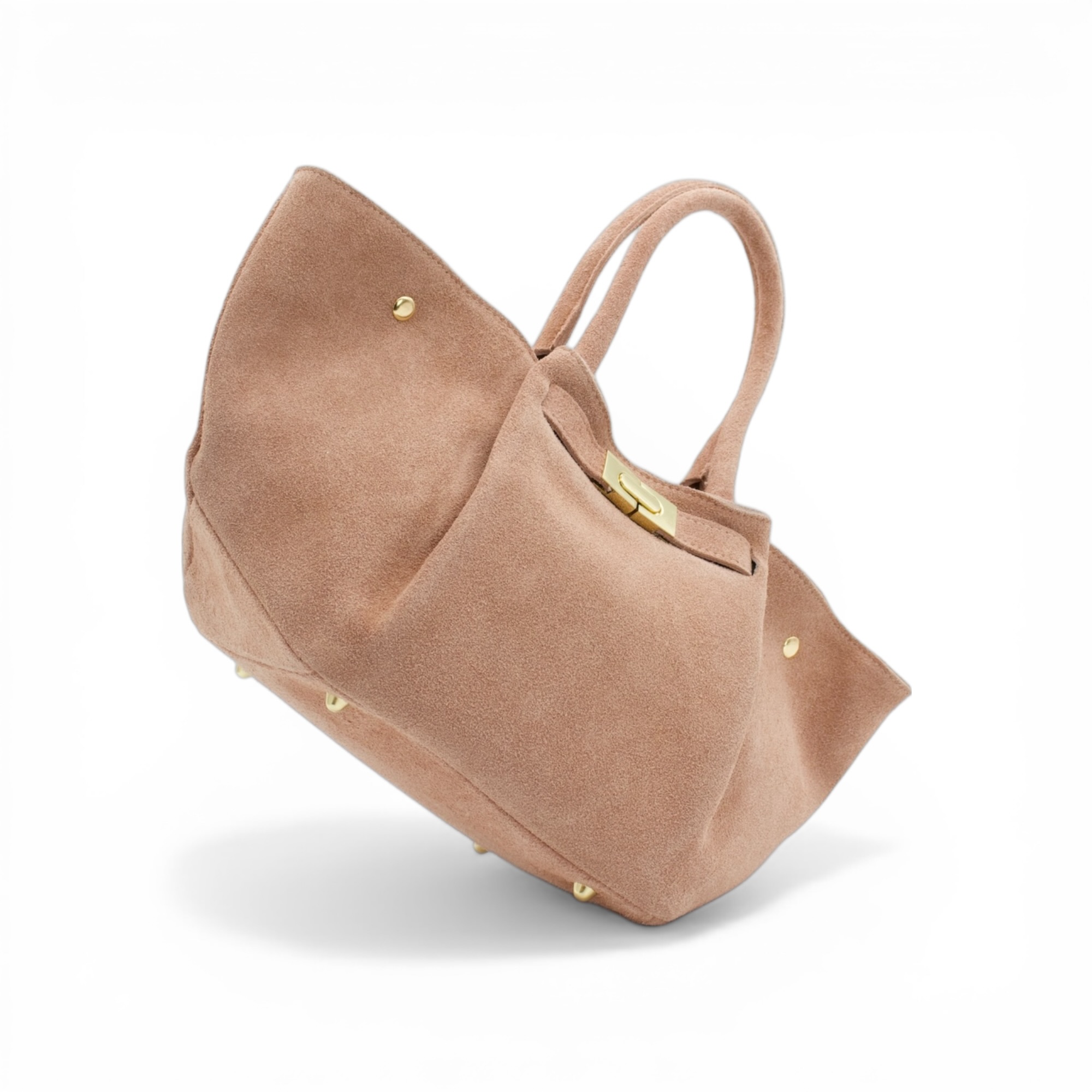 Najmodniejszy dodatek tego sezonu! Nowa torebka Balbina zachwyca eleganckim designem i ponadczasowym stylem. Wykonana z miękkiego, wysokiej jakości zamszu w odcieniu cappuccino, idealnie komponuje się z każdą stylizacją – od codziennych po bardziej eleganckie.