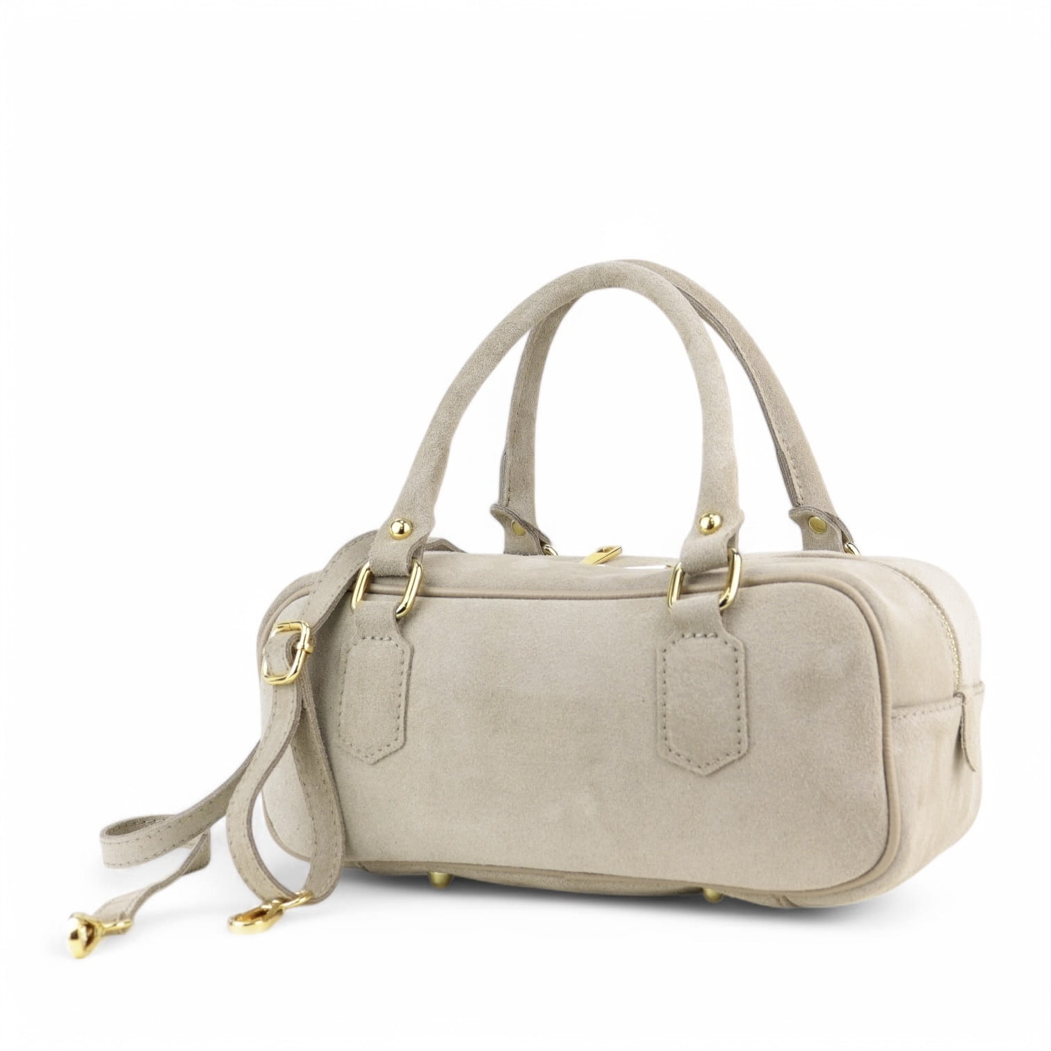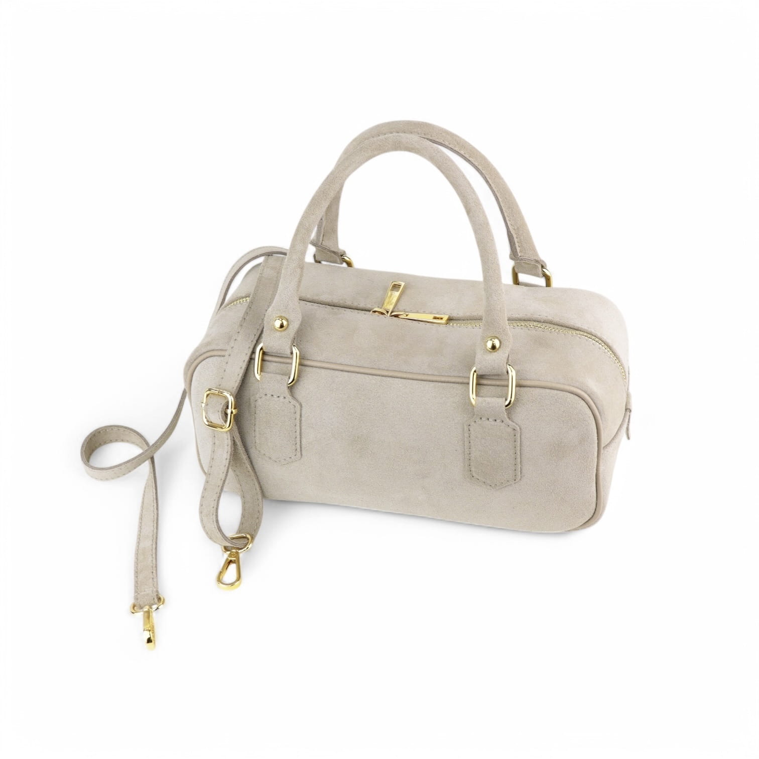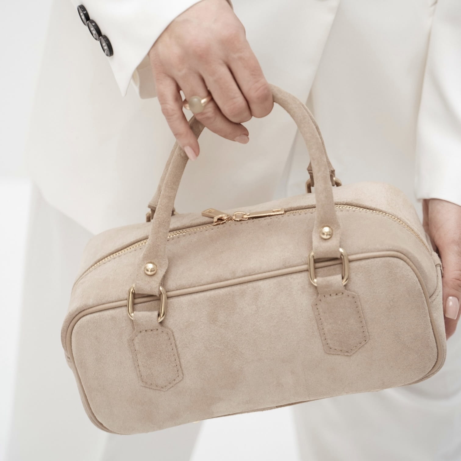 Ta zamszowa torebka to idealny dodatek na każdą okazję. Elegancka i kompaktowa, wyposażona w dwa solidne uchwyty oraz odpinany pasek na ramię, dzięki czemu można ją nosić zarówno w ręce, jak i na ramieniu. Wykonana z najwyższej jakości materiałów, zapewnia trwałość i stylowy wygląd. Doskonała na co dzień lub na specjalne wyjścia, podkreśli każdą stylizację.