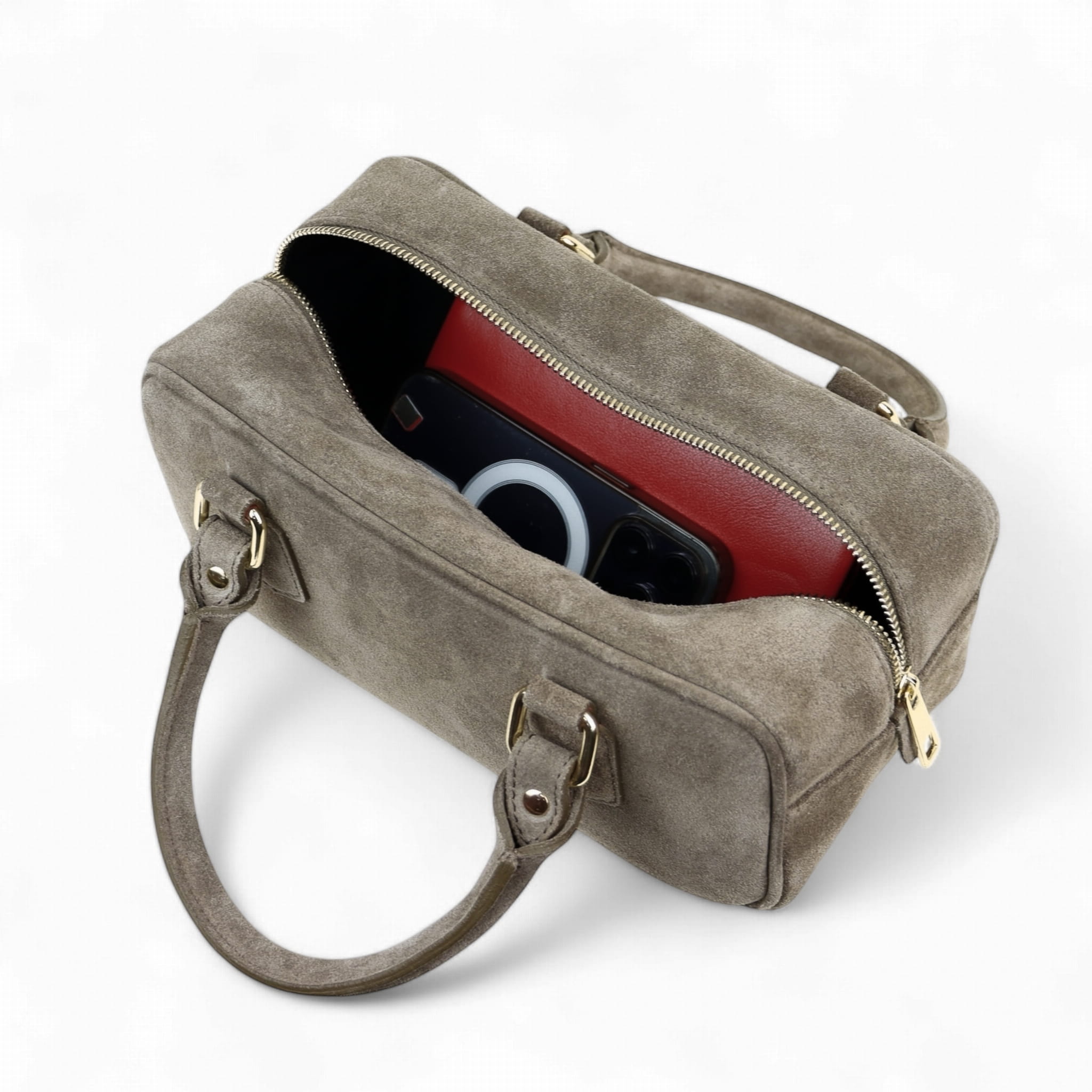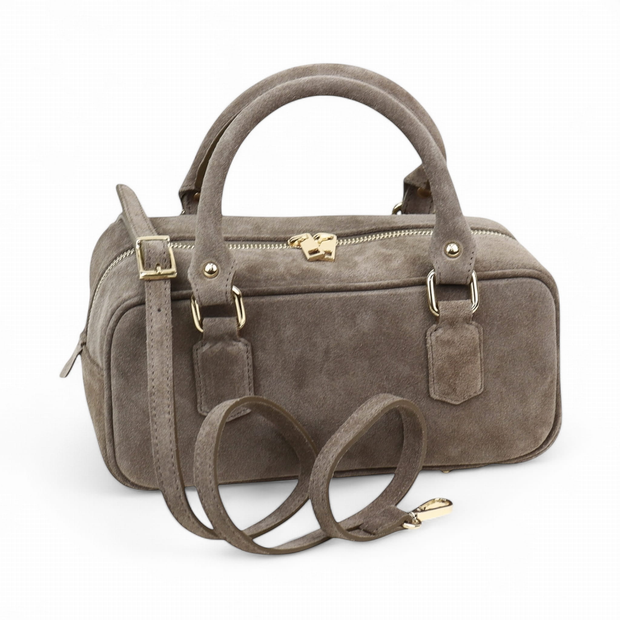 Ta zamszowa torebka to idealny dodatek na każdą okazję. Elegancka i kompaktowa, wyposażona w dwa solidne uchwyty oraz odpinany pasek na ramię, dzięki czemu można ją nosić zarówno w ręce, jak i na ramieniu. Wykonana z najwyższej jakości materiałów, zapewnia trwałość i stylowy wygląd. Doskonała na co dzień lub na specjalne wyjścia, podkreśli każdą stylizację.