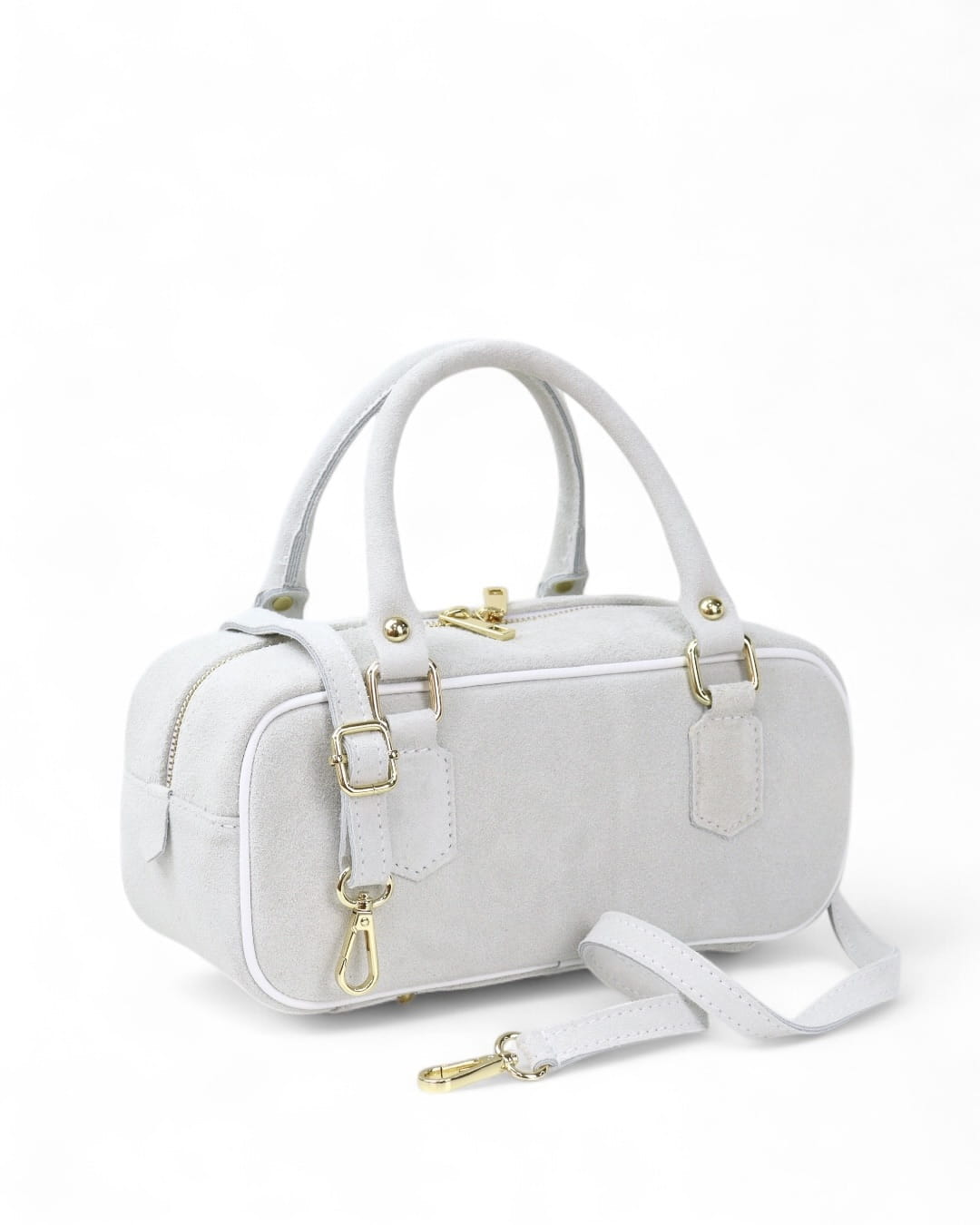 Ta zamszowa torebka to idealny dodatek na każdą okazję. Elegancka i kompaktowa, wyposażona w dwa solidne uchwyty oraz odpinany pasek na ramię, dzięki czemu można ją nosić zarówno w ręce, jak i na ramieniu. Wykonana z najwyższej jakości materiałów, zapewnia trwałość i stylowy wygląd. Doskonała na co dzień lub na specjalne wyjścia, podkreśli każdą stylizację.