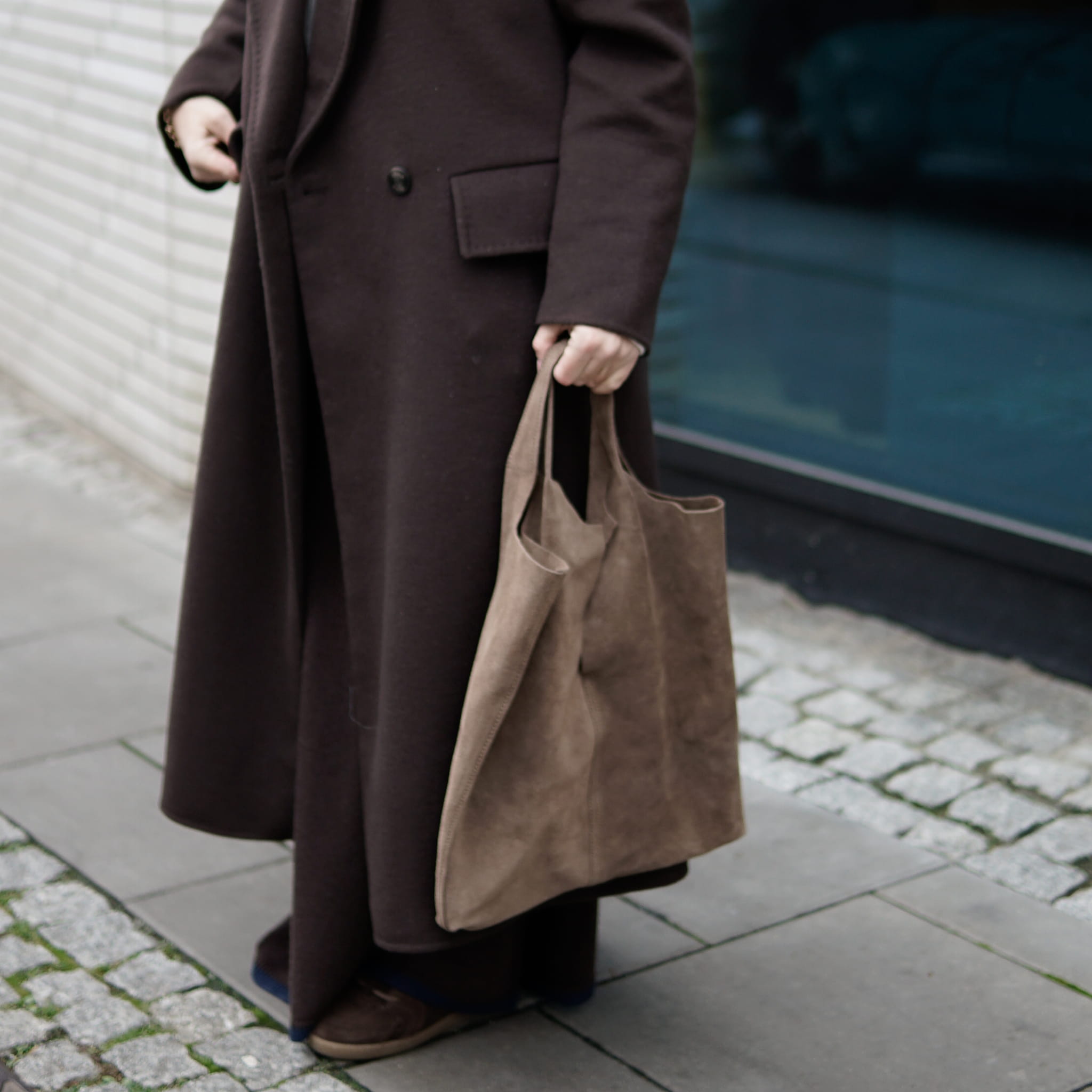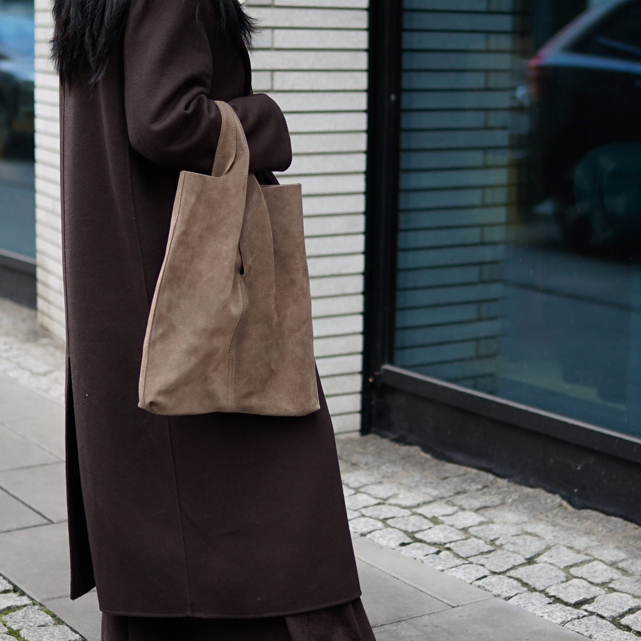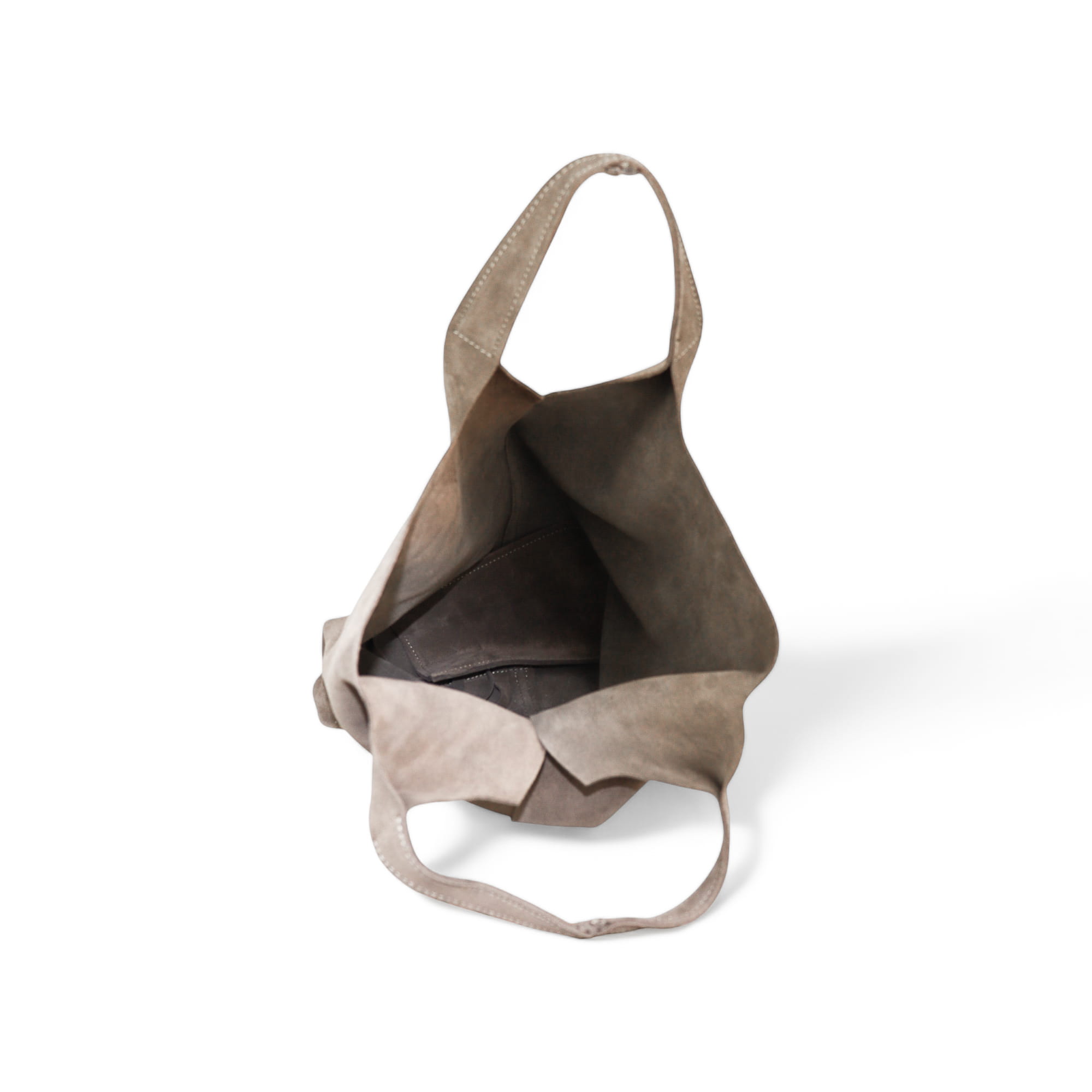 Shopperka wykonana z naturalnej skóry zamszowej, stylowa i praktyczna. Wewnątrz znajduje się wygodna kieszeń na zamek, idealna na przechowywanie drobiazgów. Pojemna i elegancka, doskonała na co dzień i na specjalne okazje.
