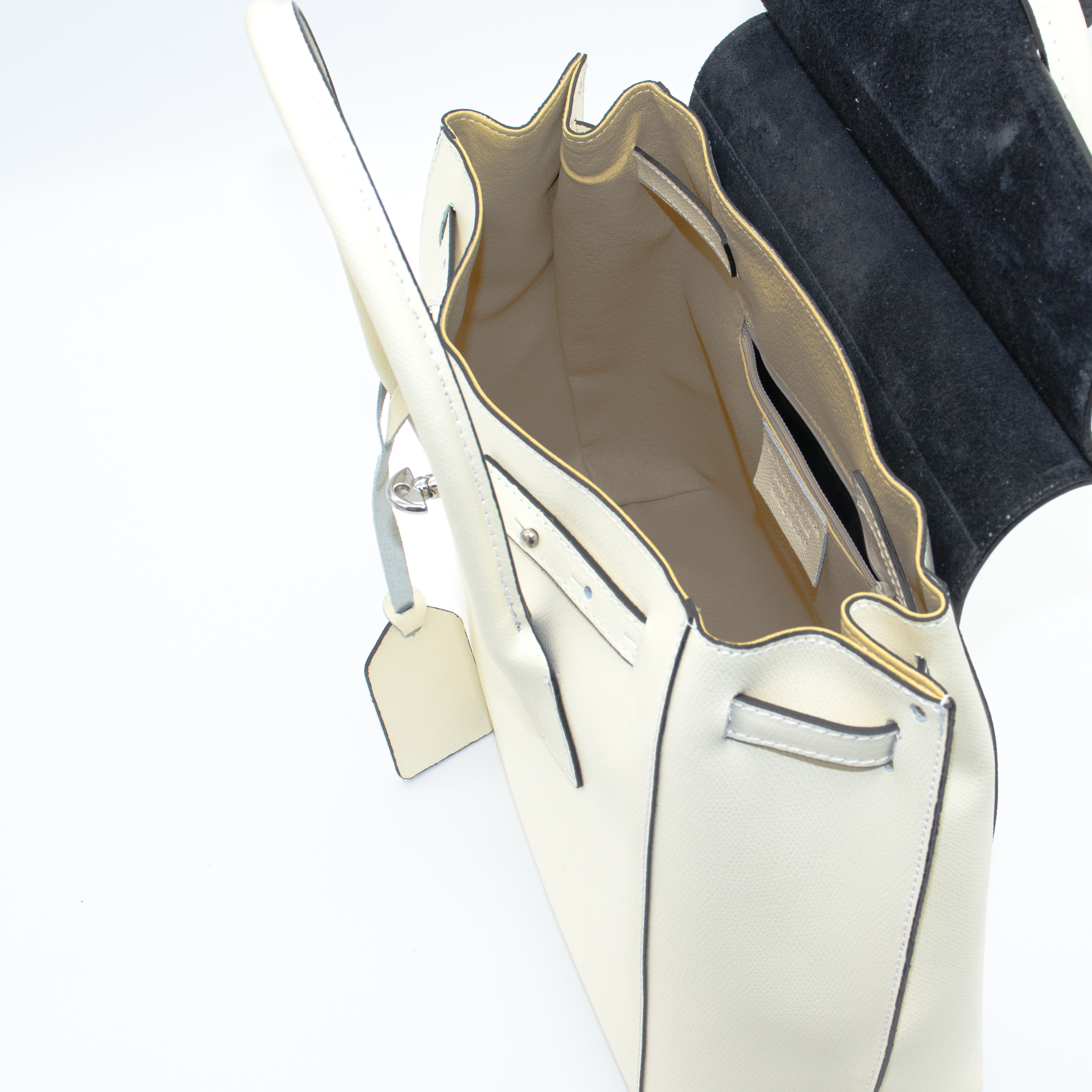 - Dwa skórzane uchwyty do noszenia torby w ręku.