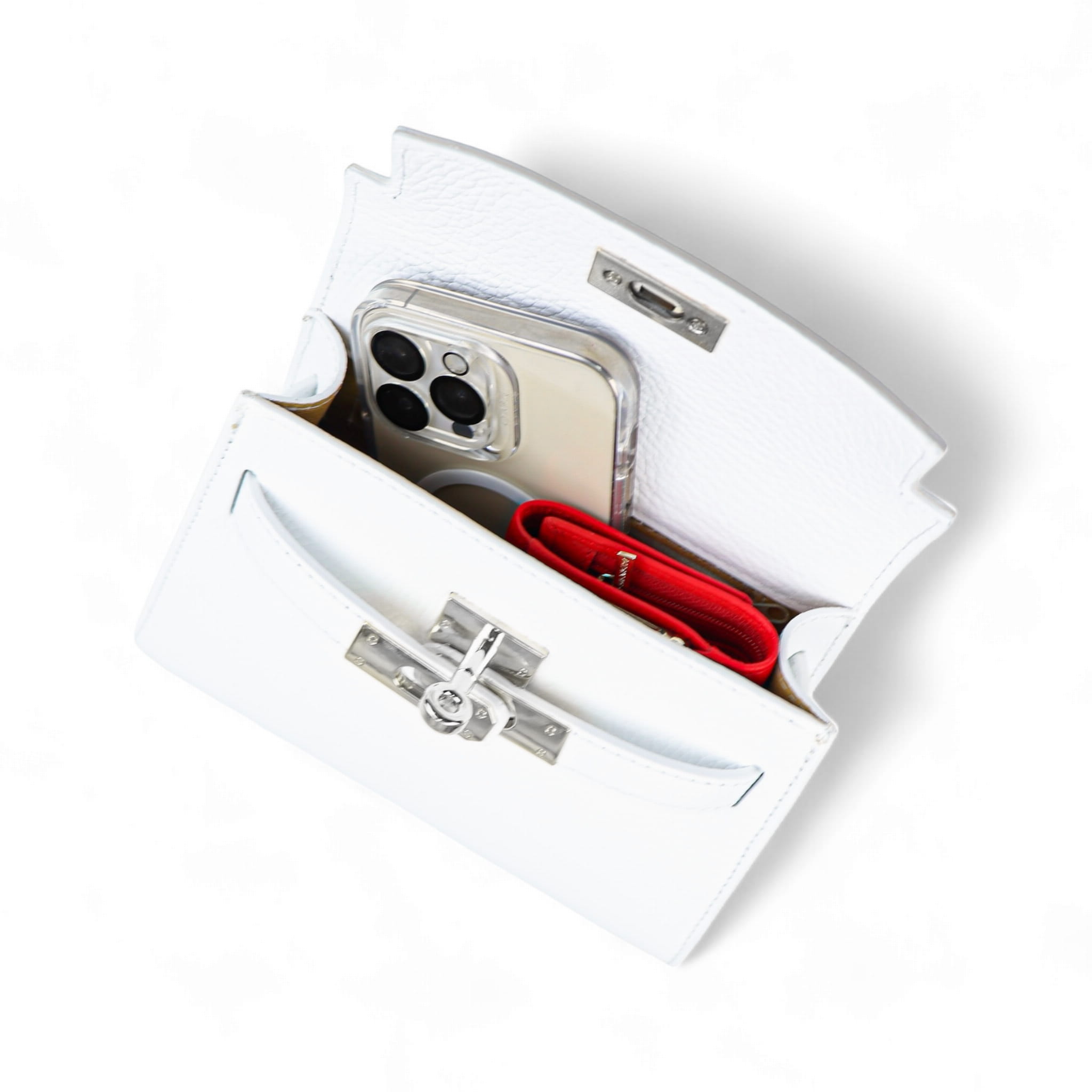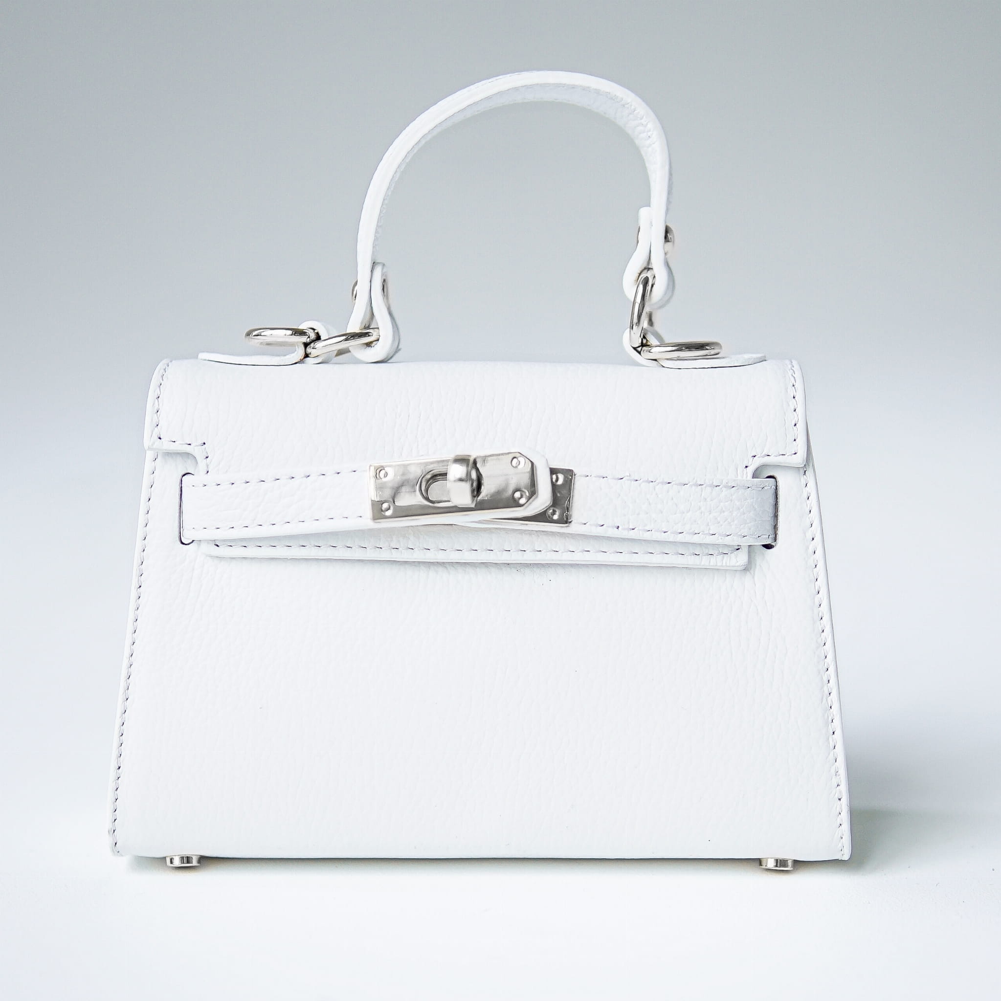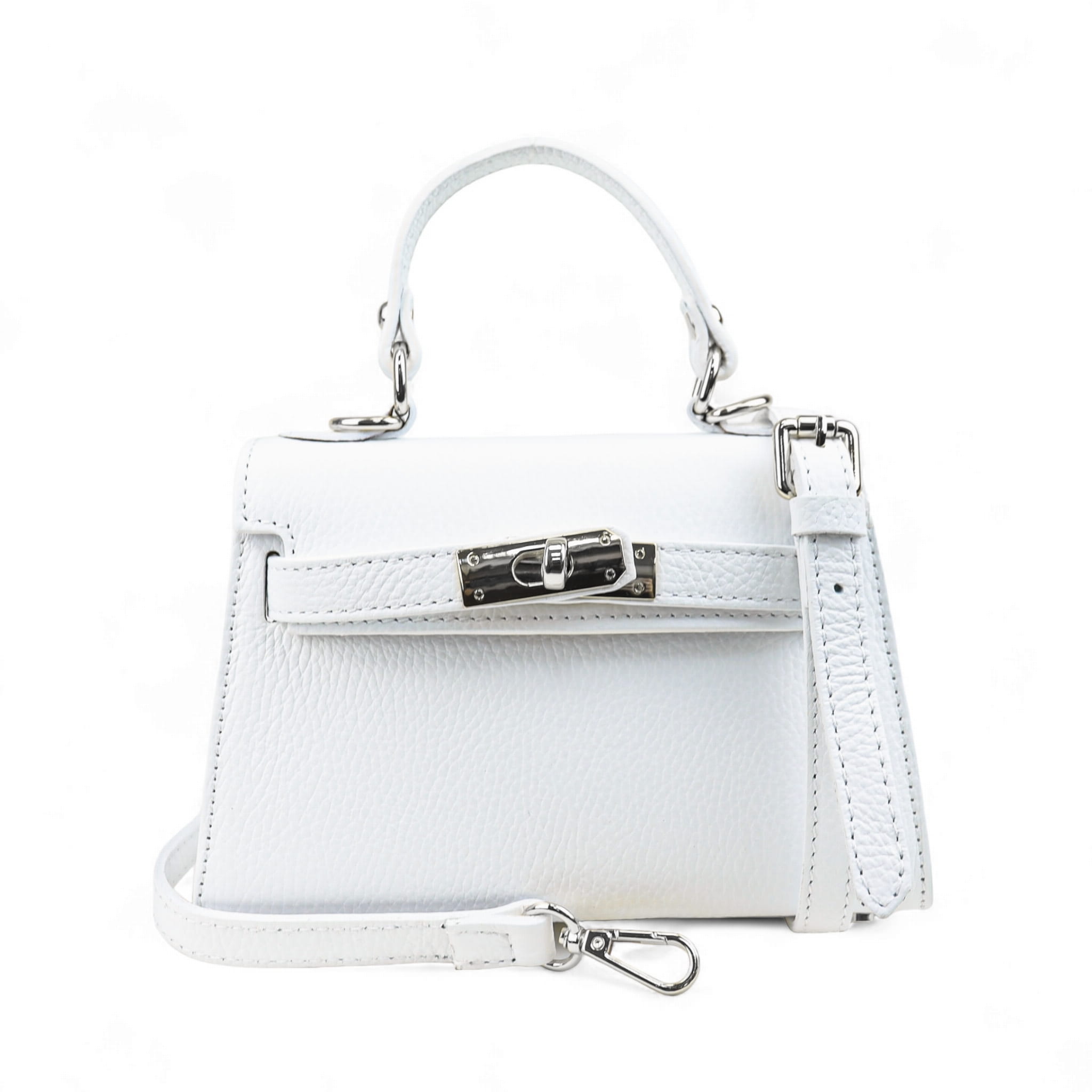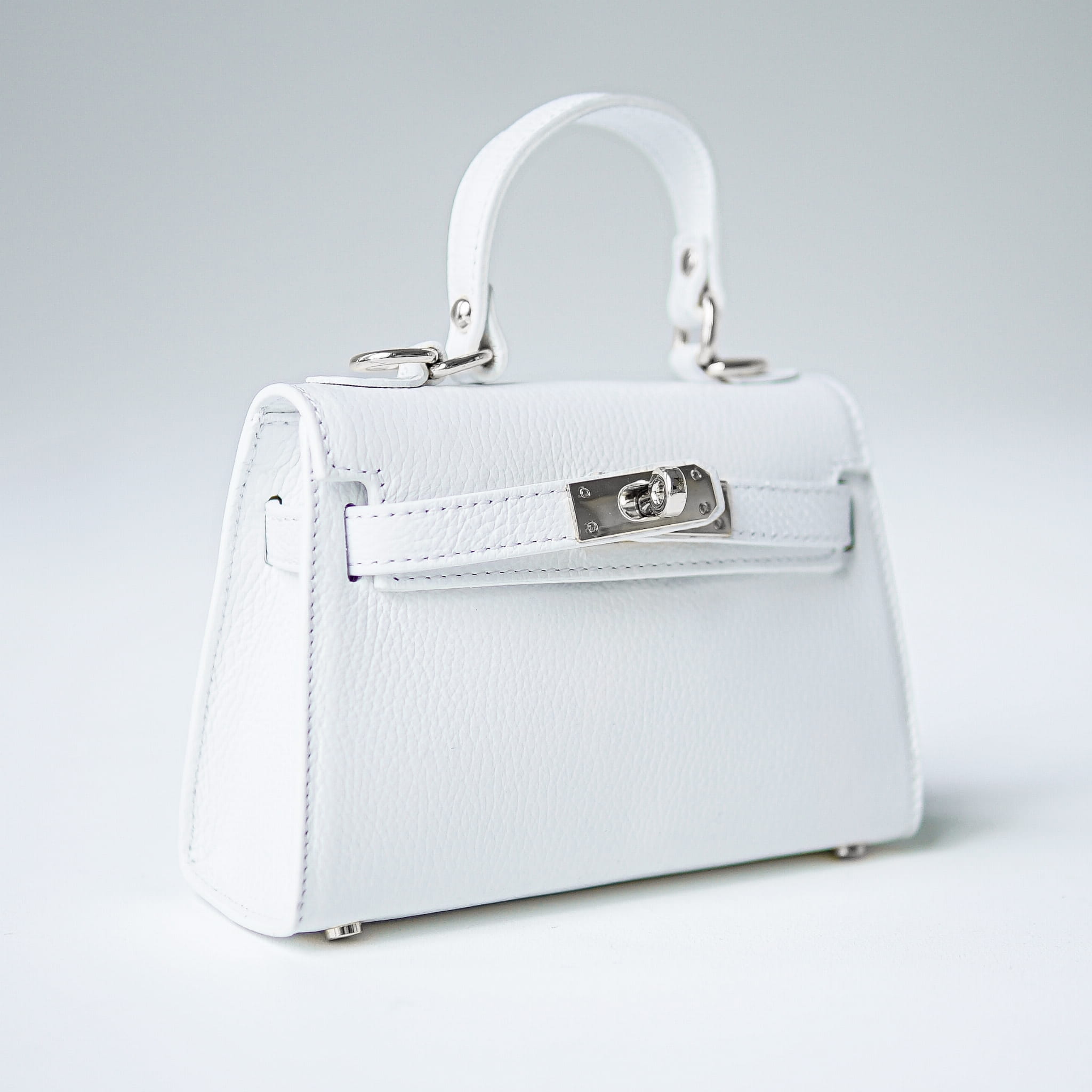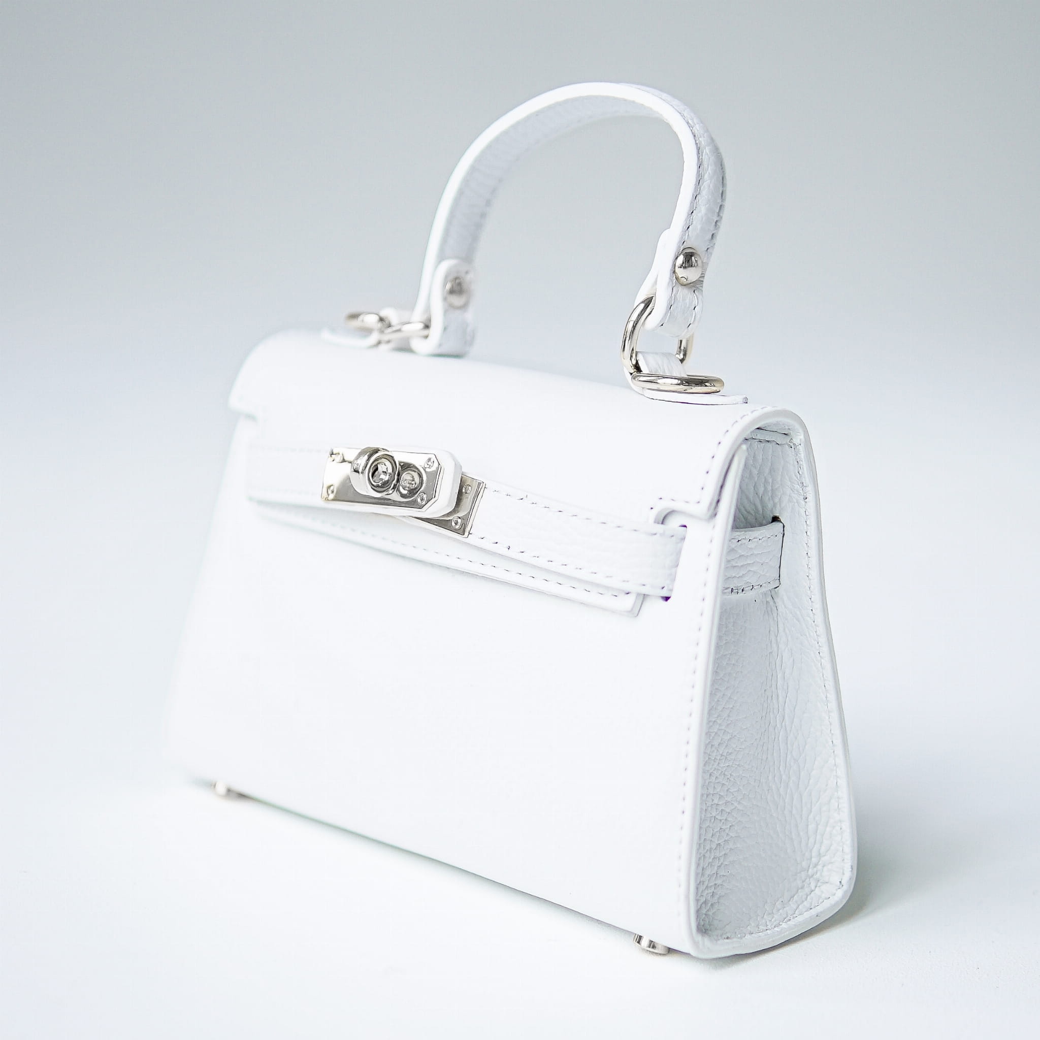 Torebka Damska Kuferek, licowa skóra Emily Biała (srebro)