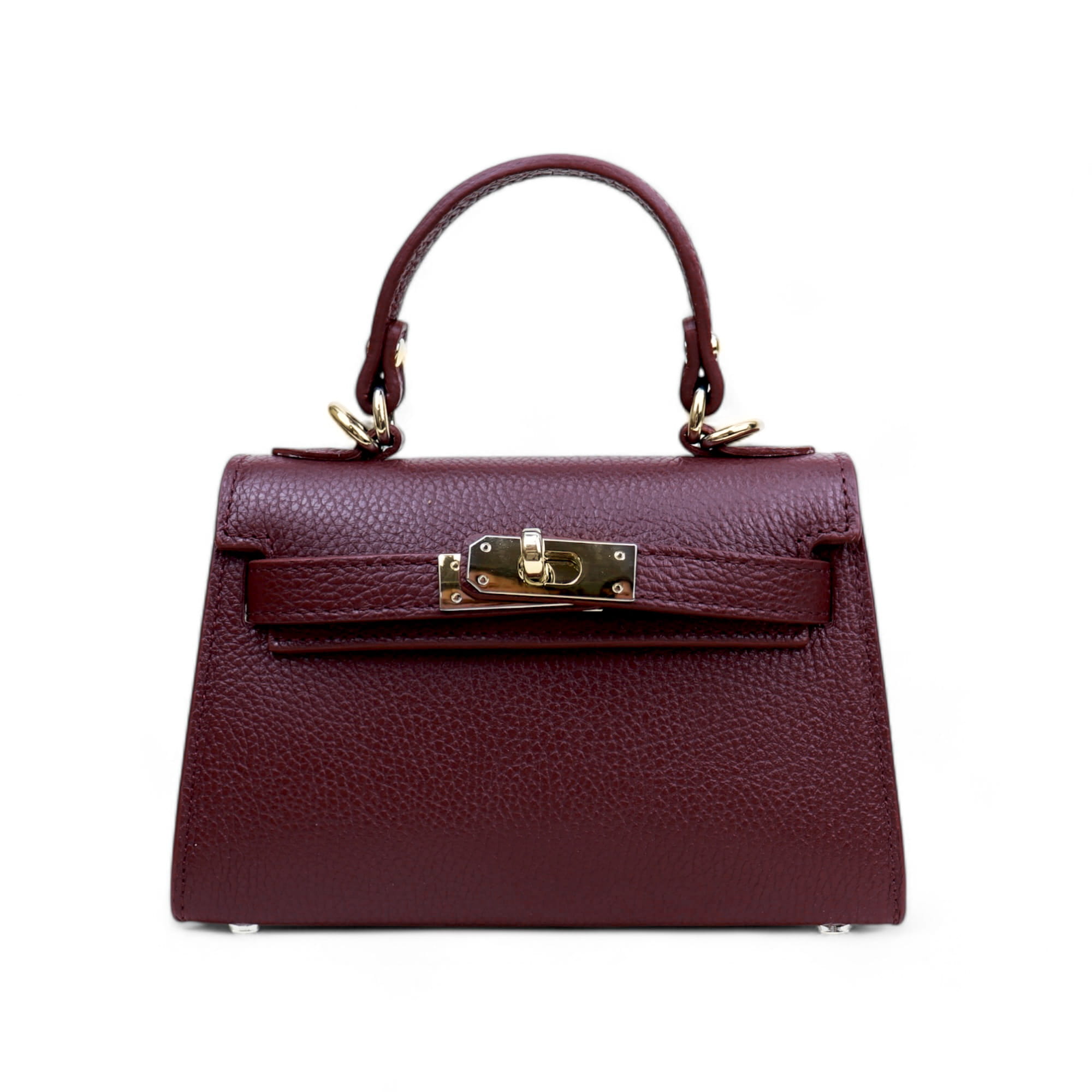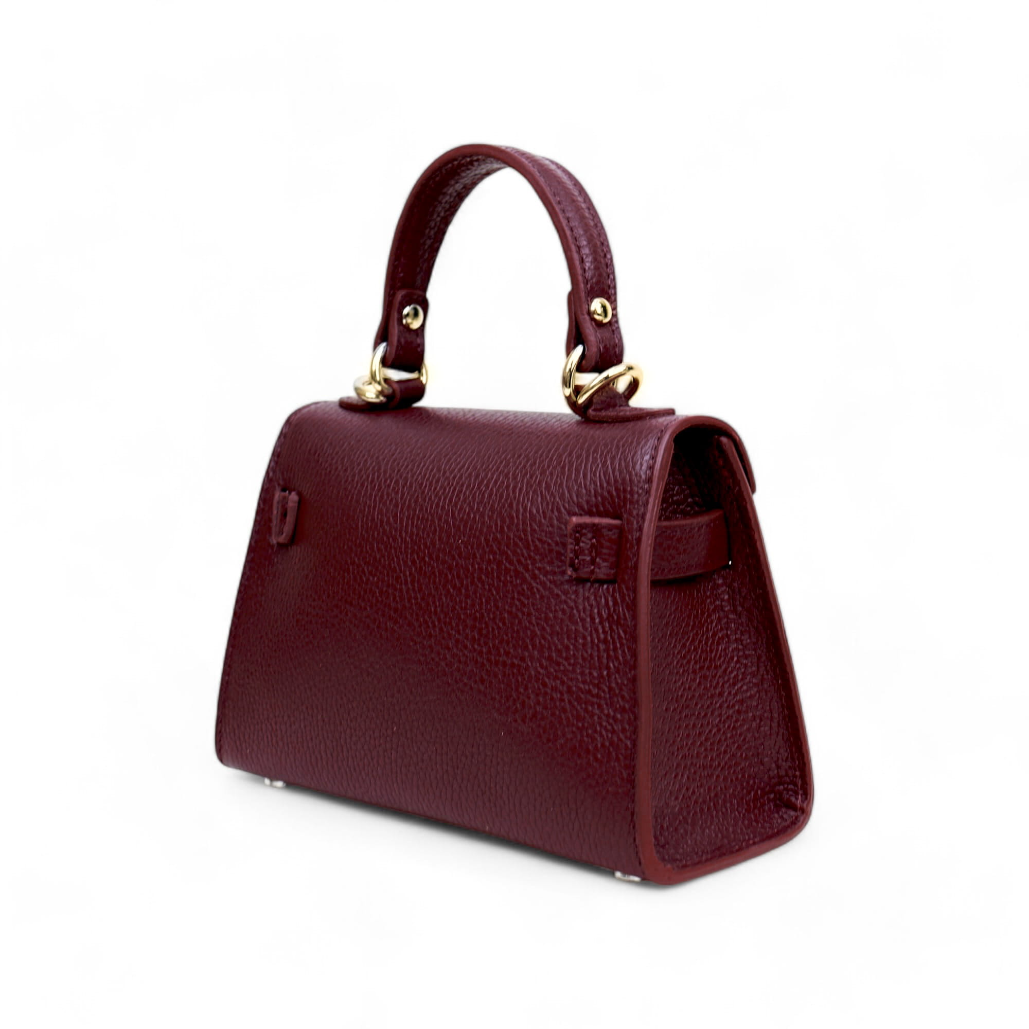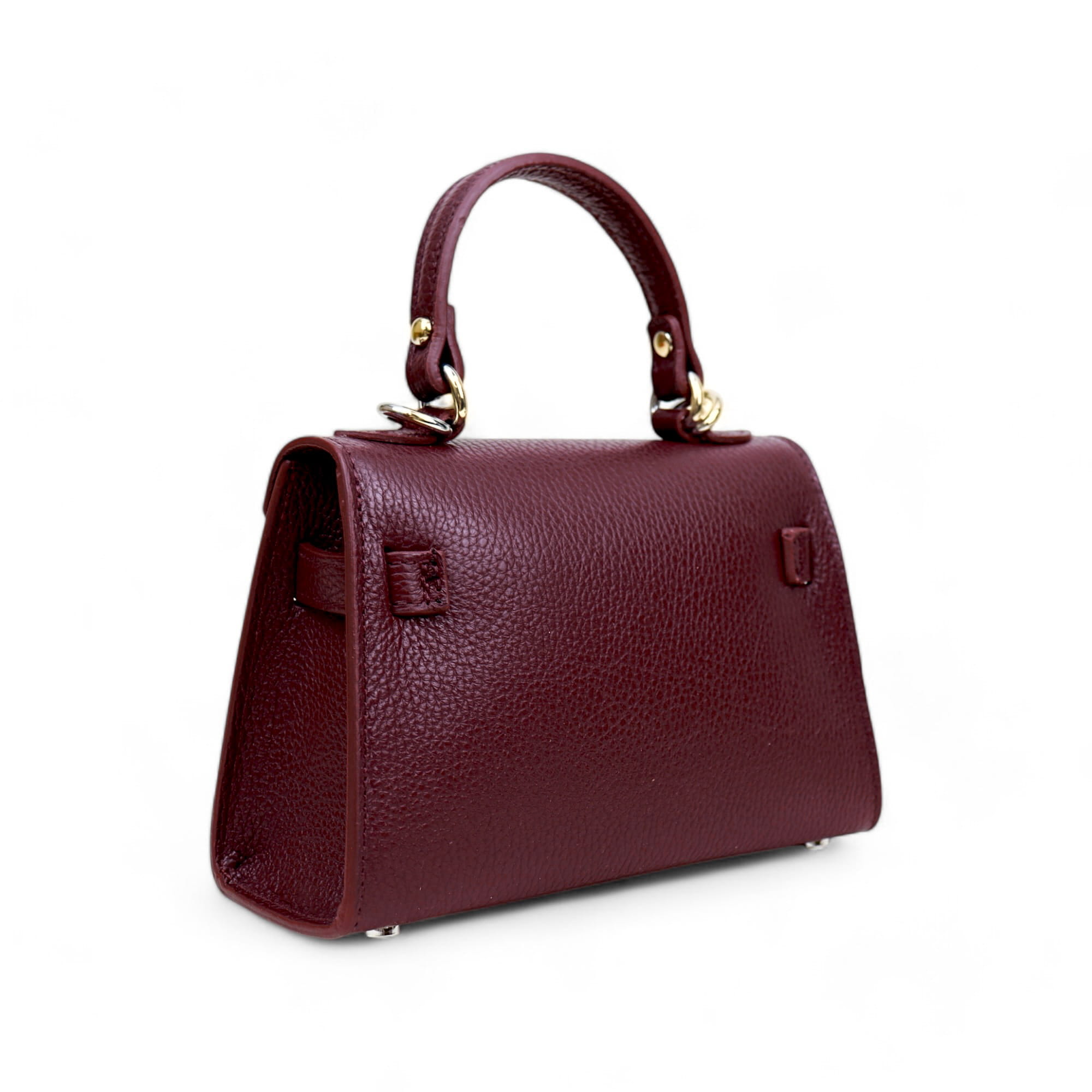 Torebka Damska Kuferek, licowa skóra Emily Bordo (złoto)