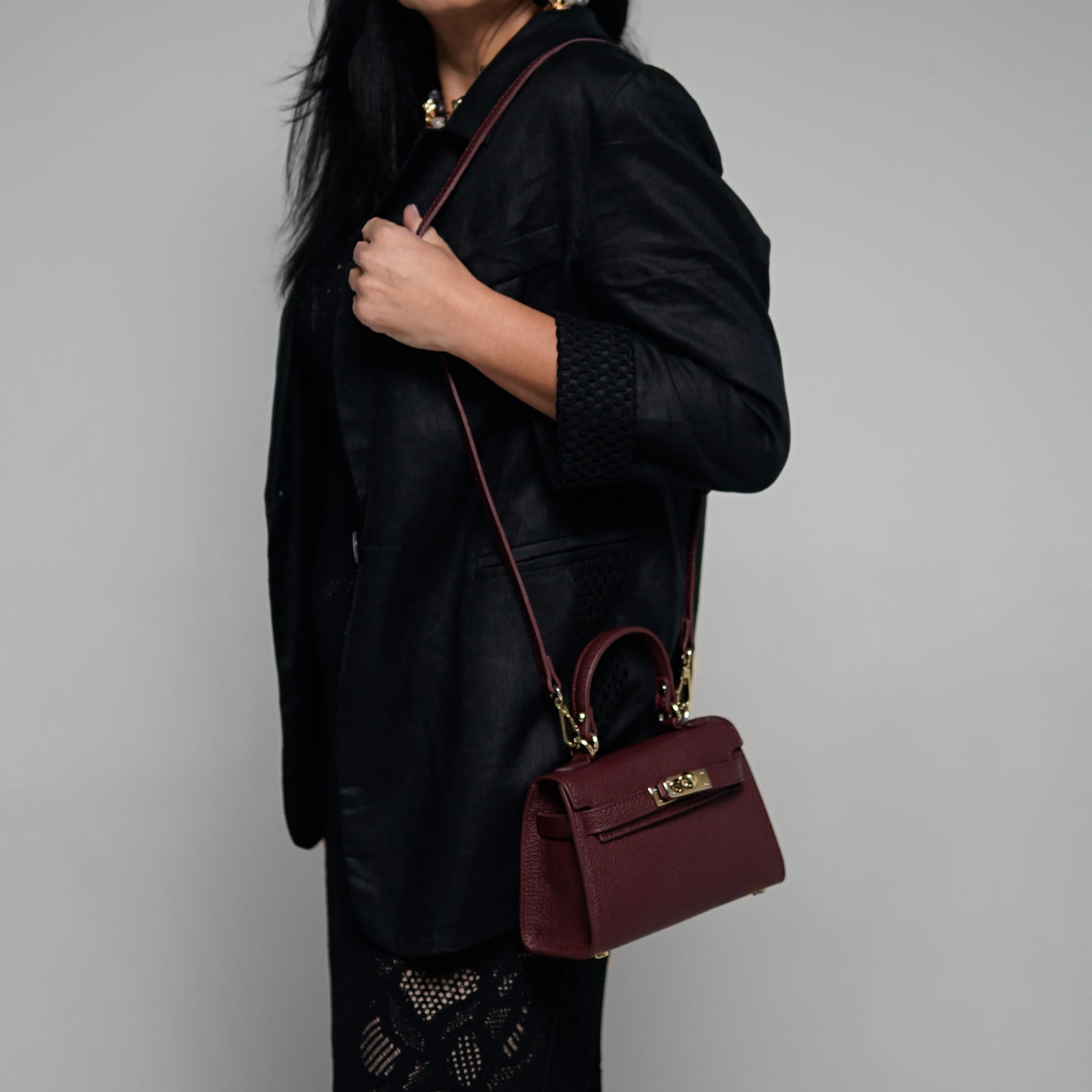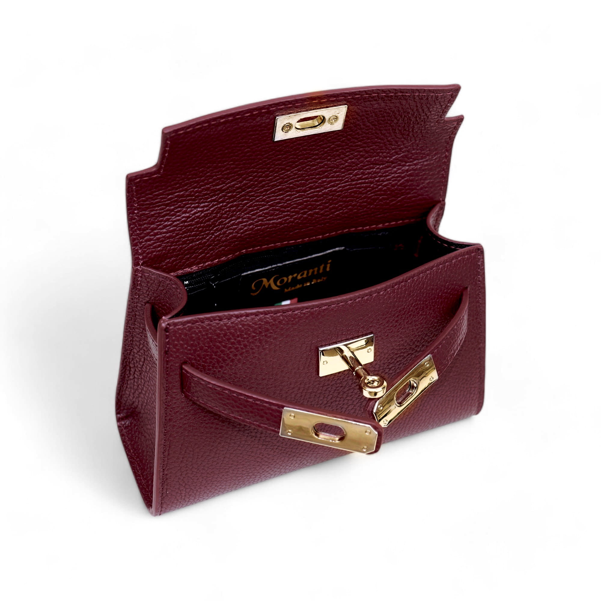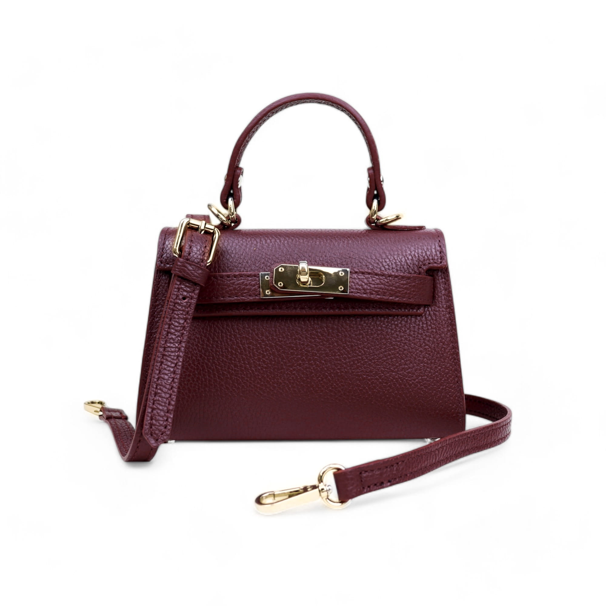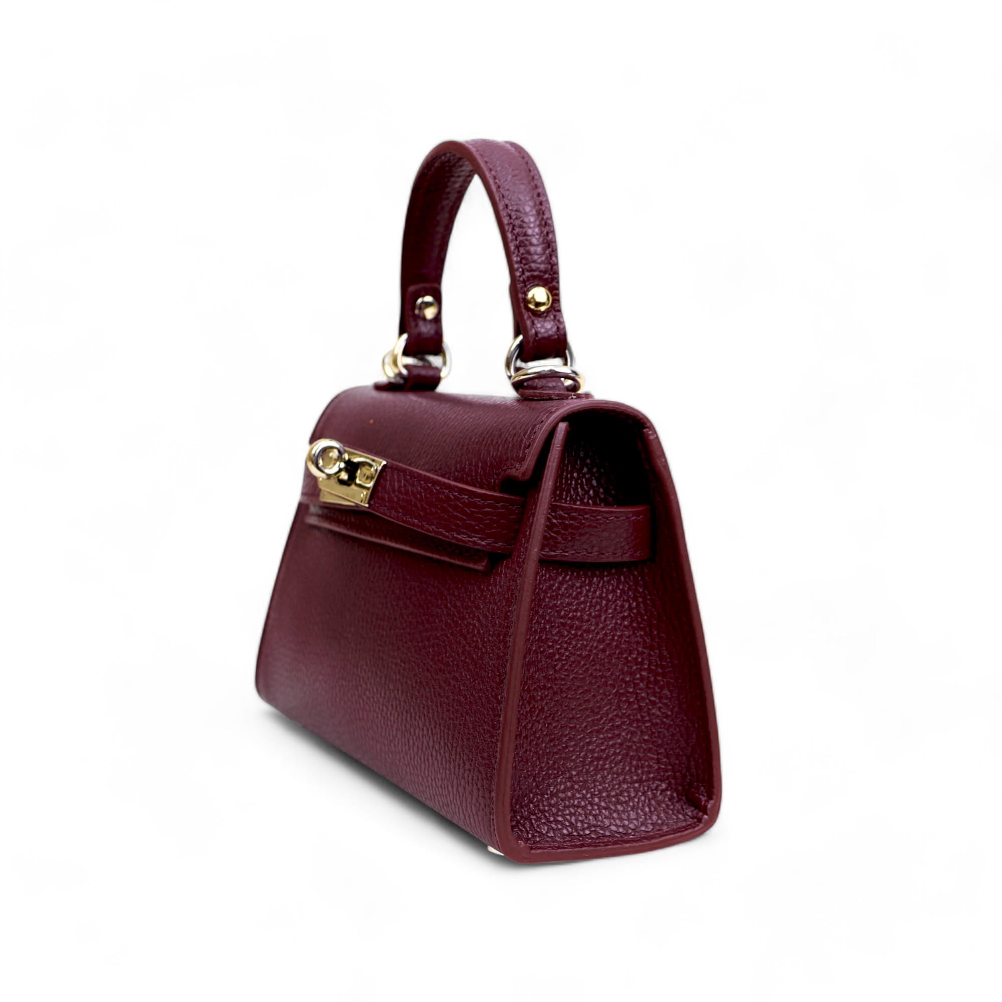 Torebka Damska Kuferek, licowa skóra Emily Bordo (złoto)