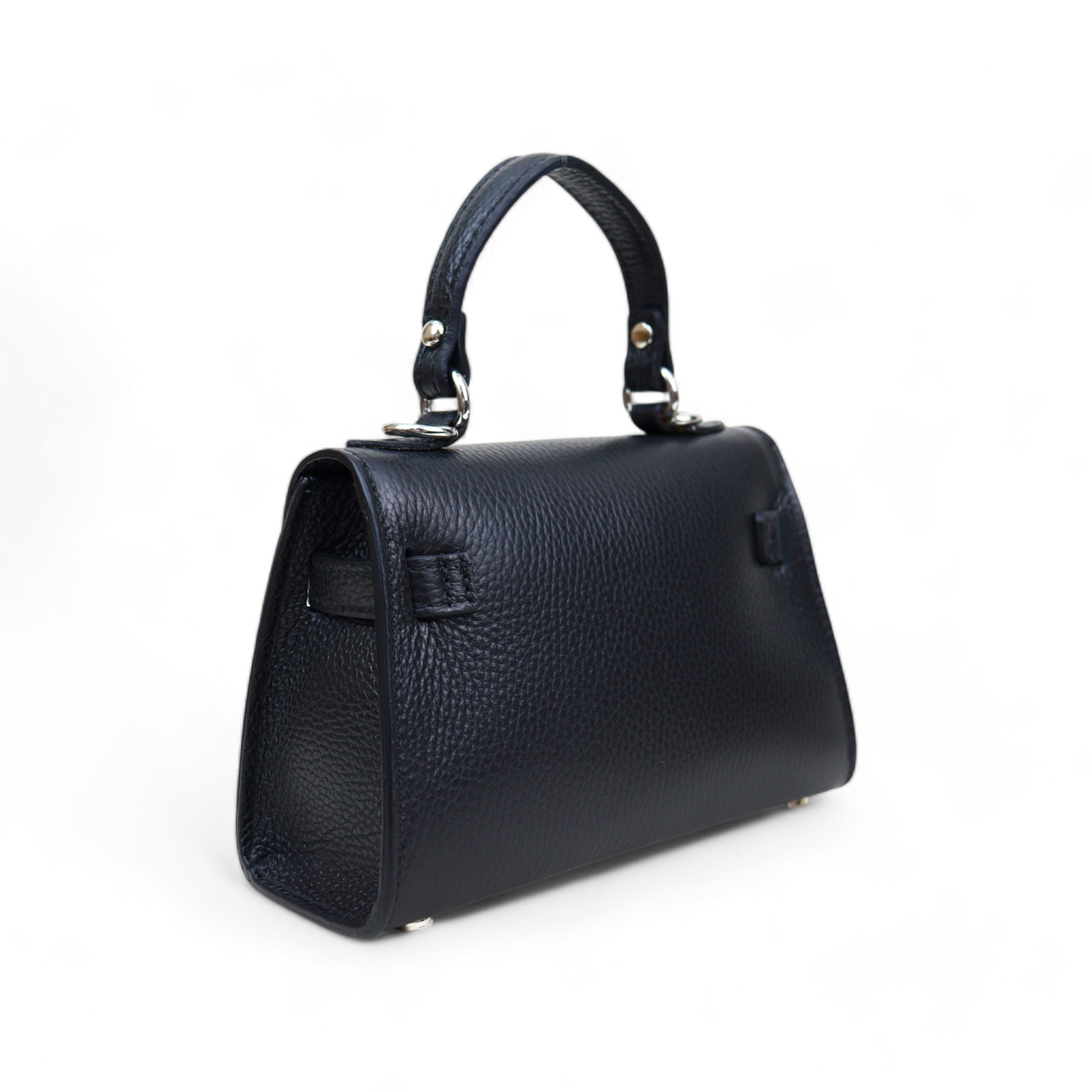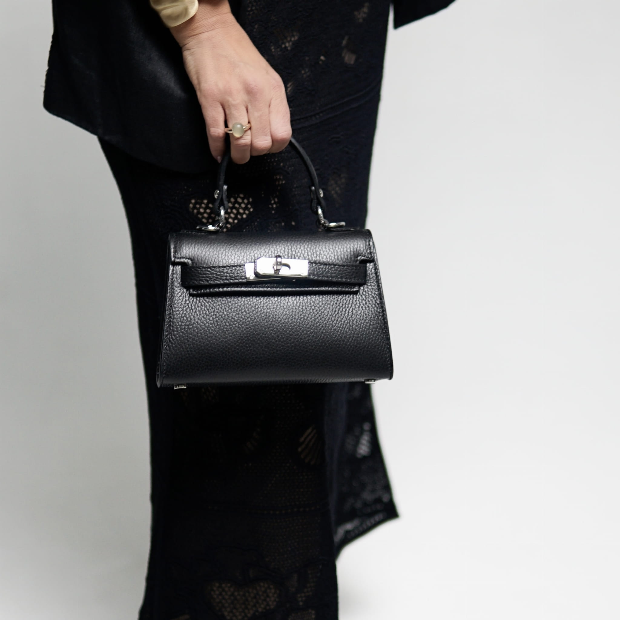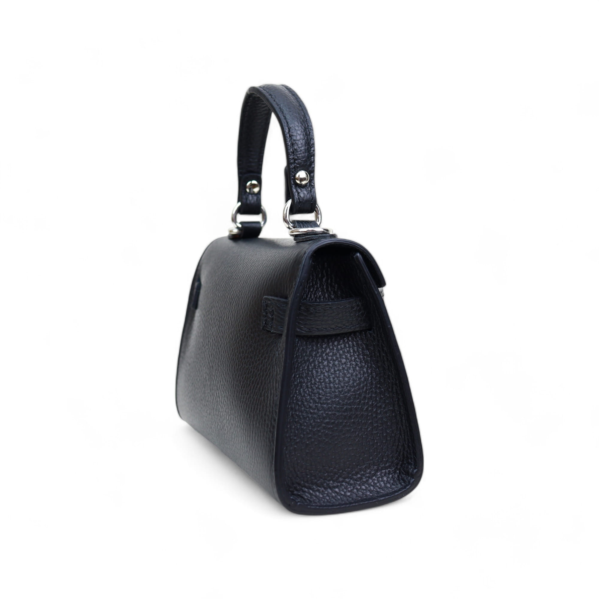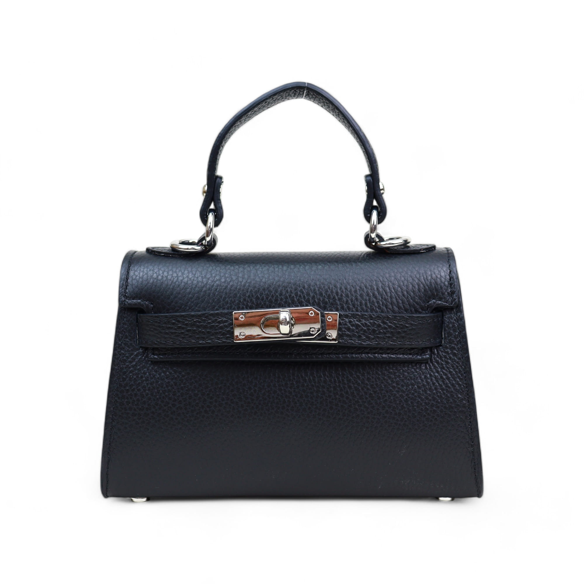 Torebka Damska Kuferek, licowa skóra Emily Czarna (srebro)