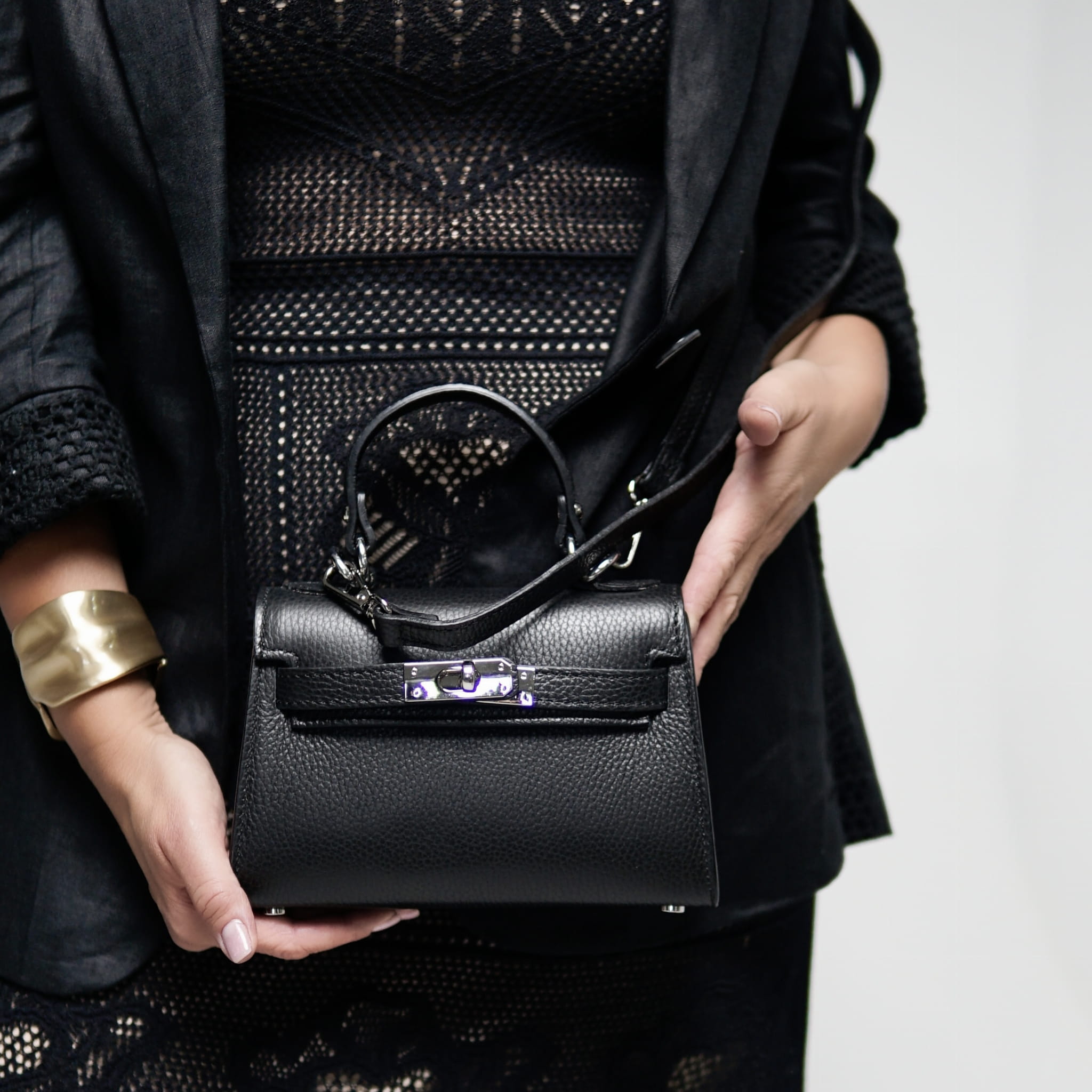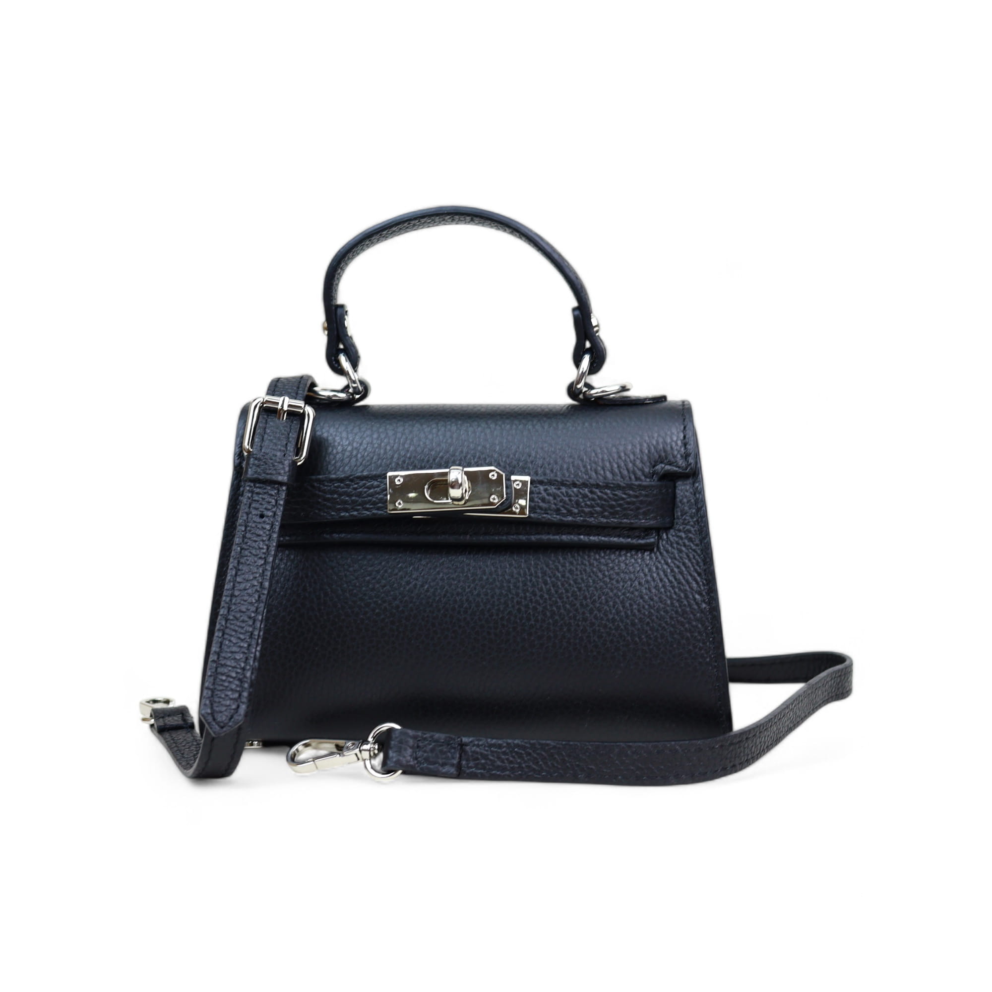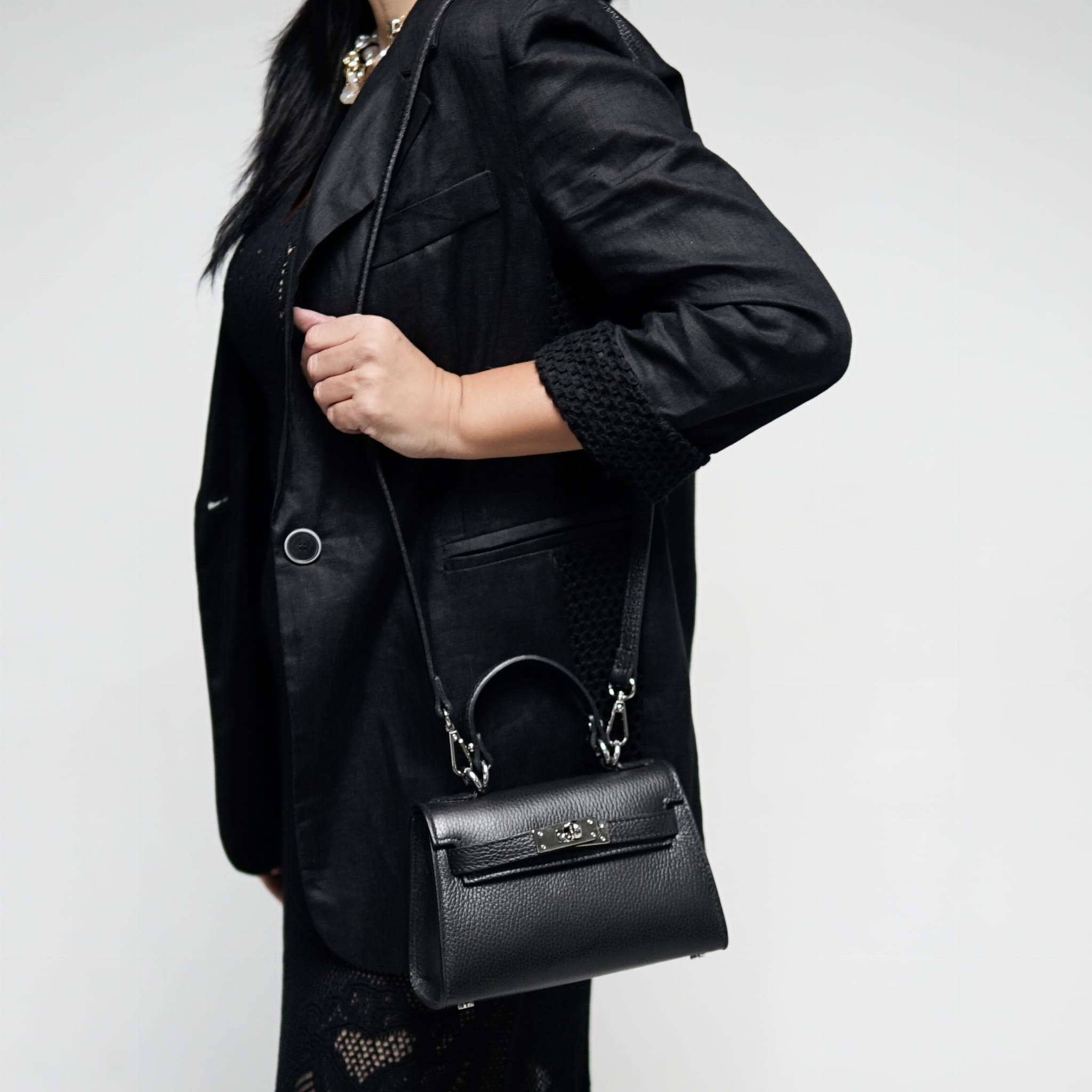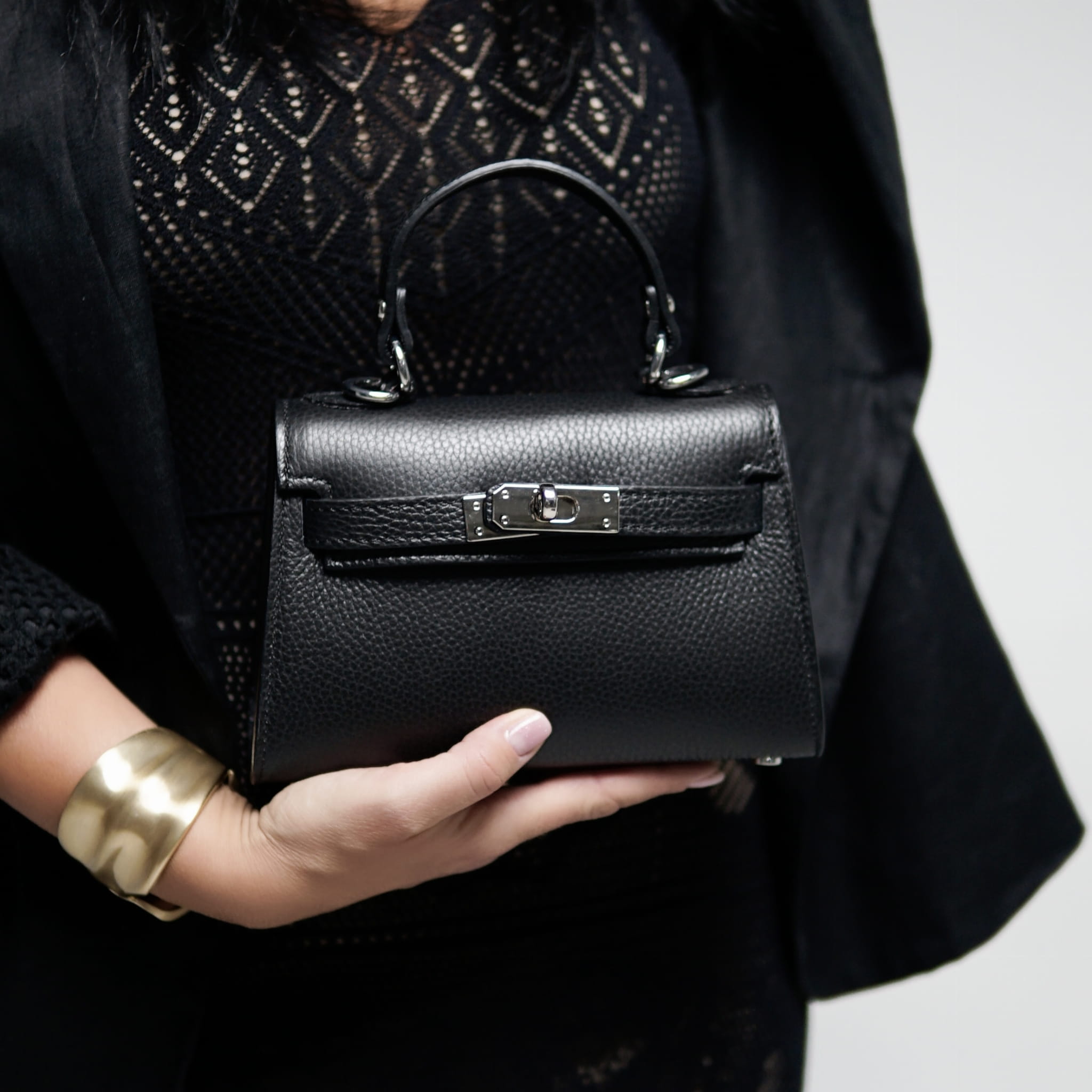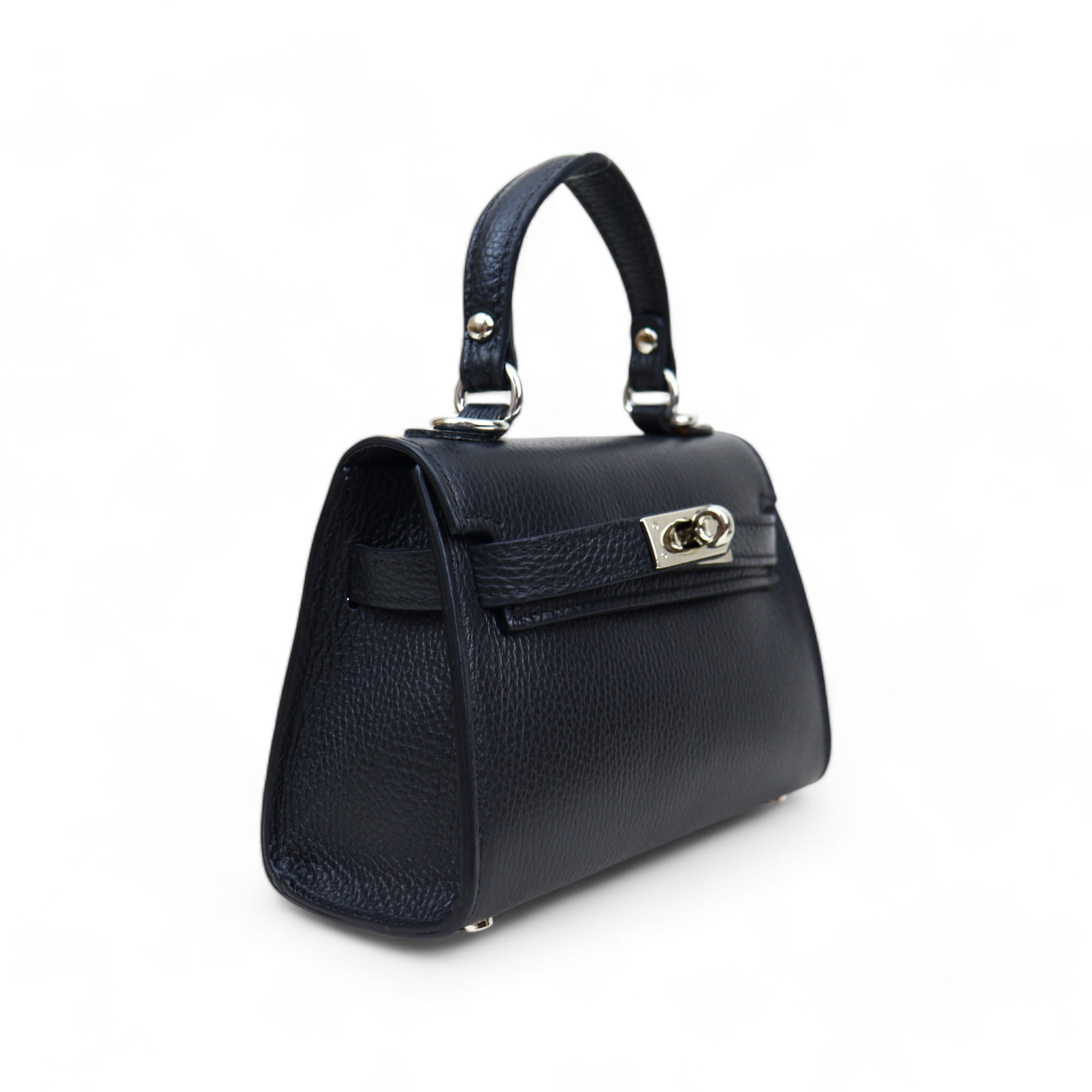 Torebka Damska Kuferek, licowa skóra Emily Czarna (srebro)