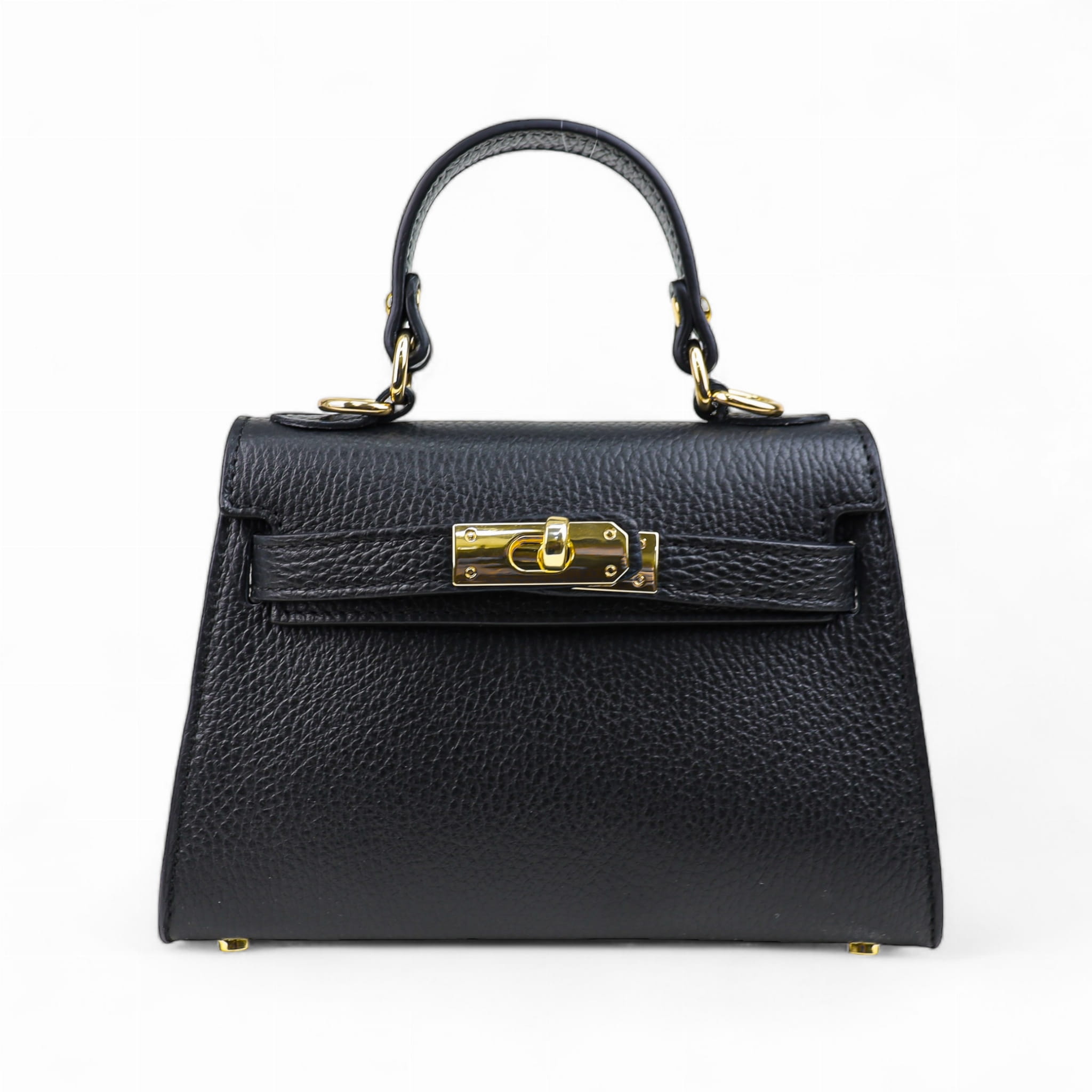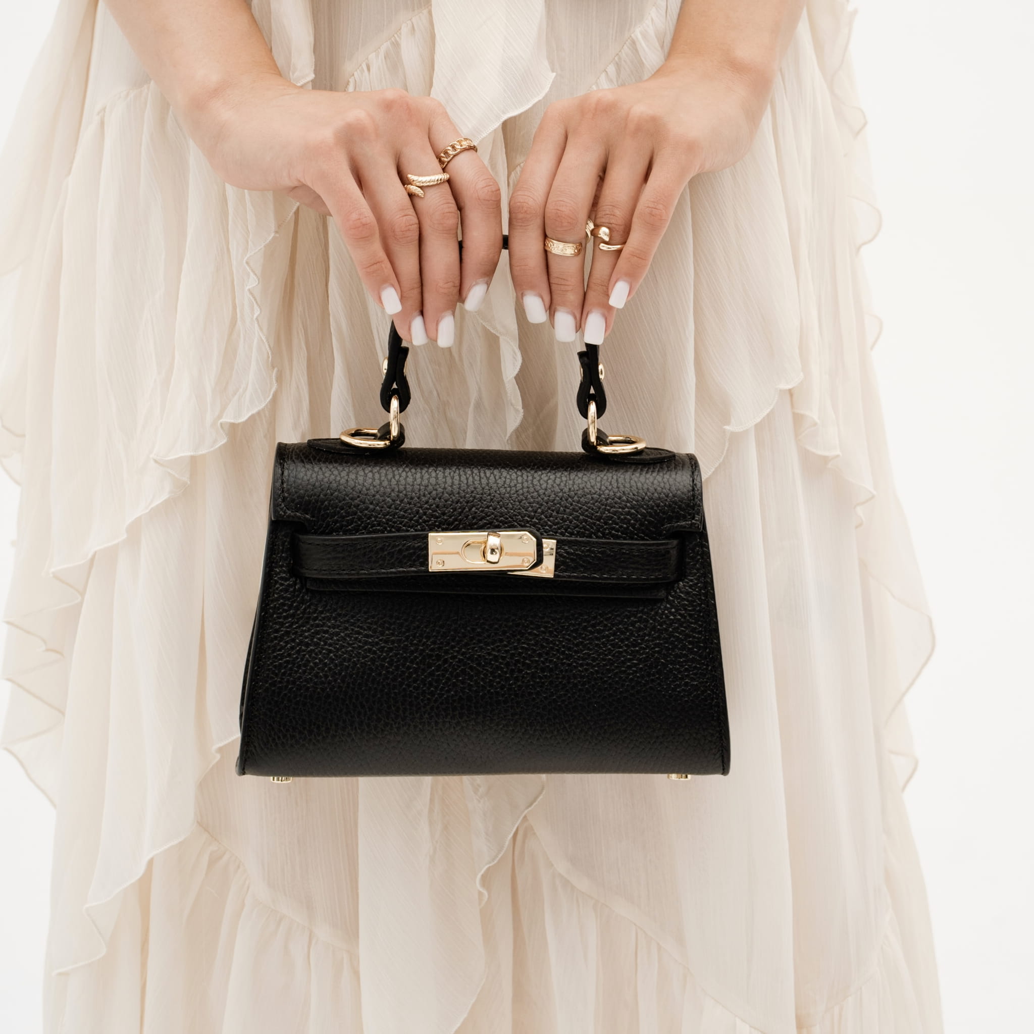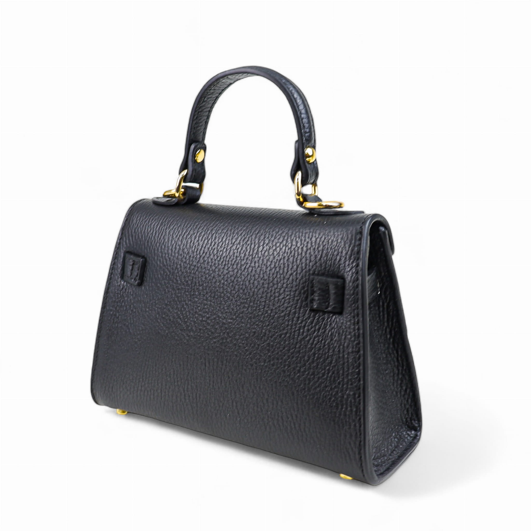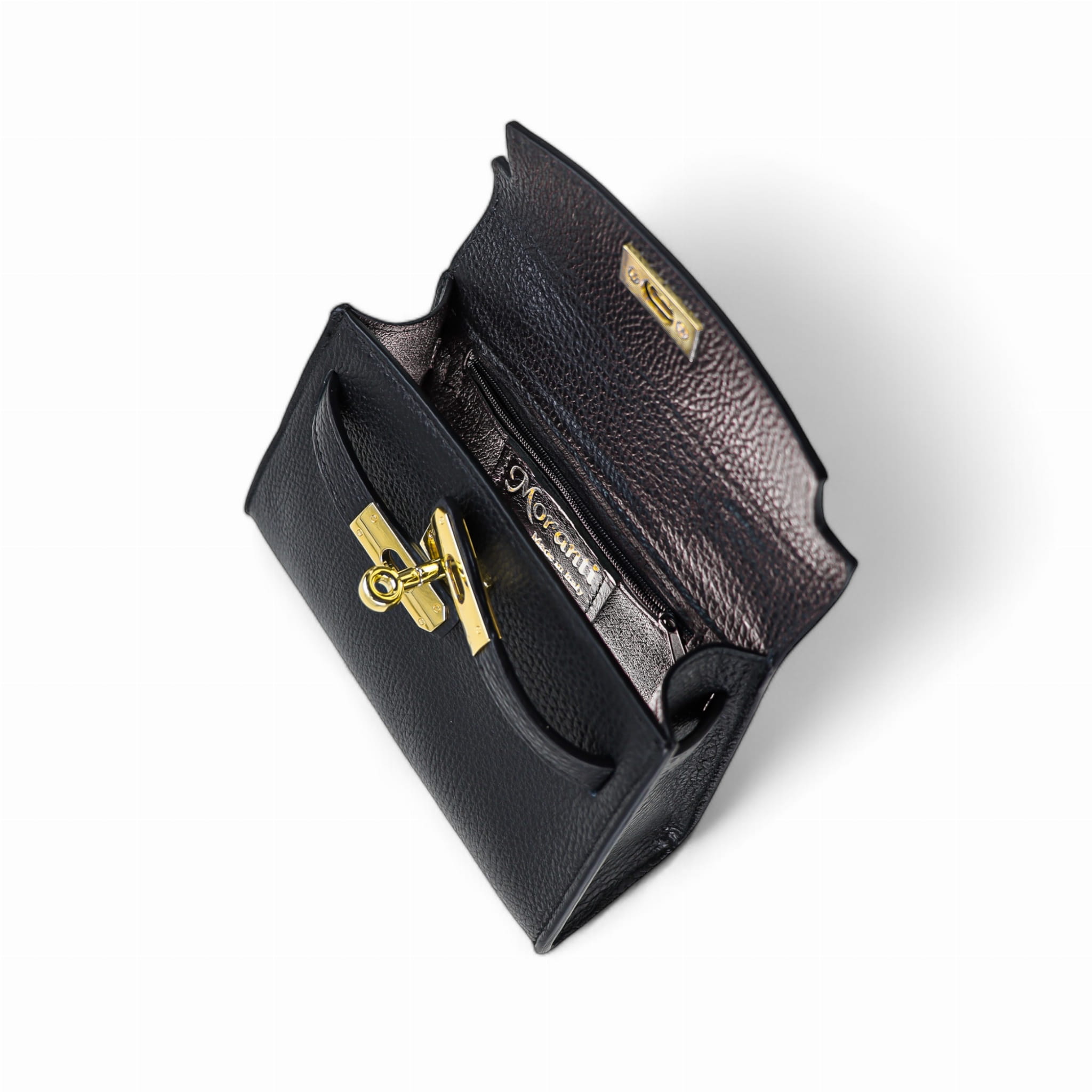Torebka Damska Kuferek, licowa skóra Emily Czarna (złoto)