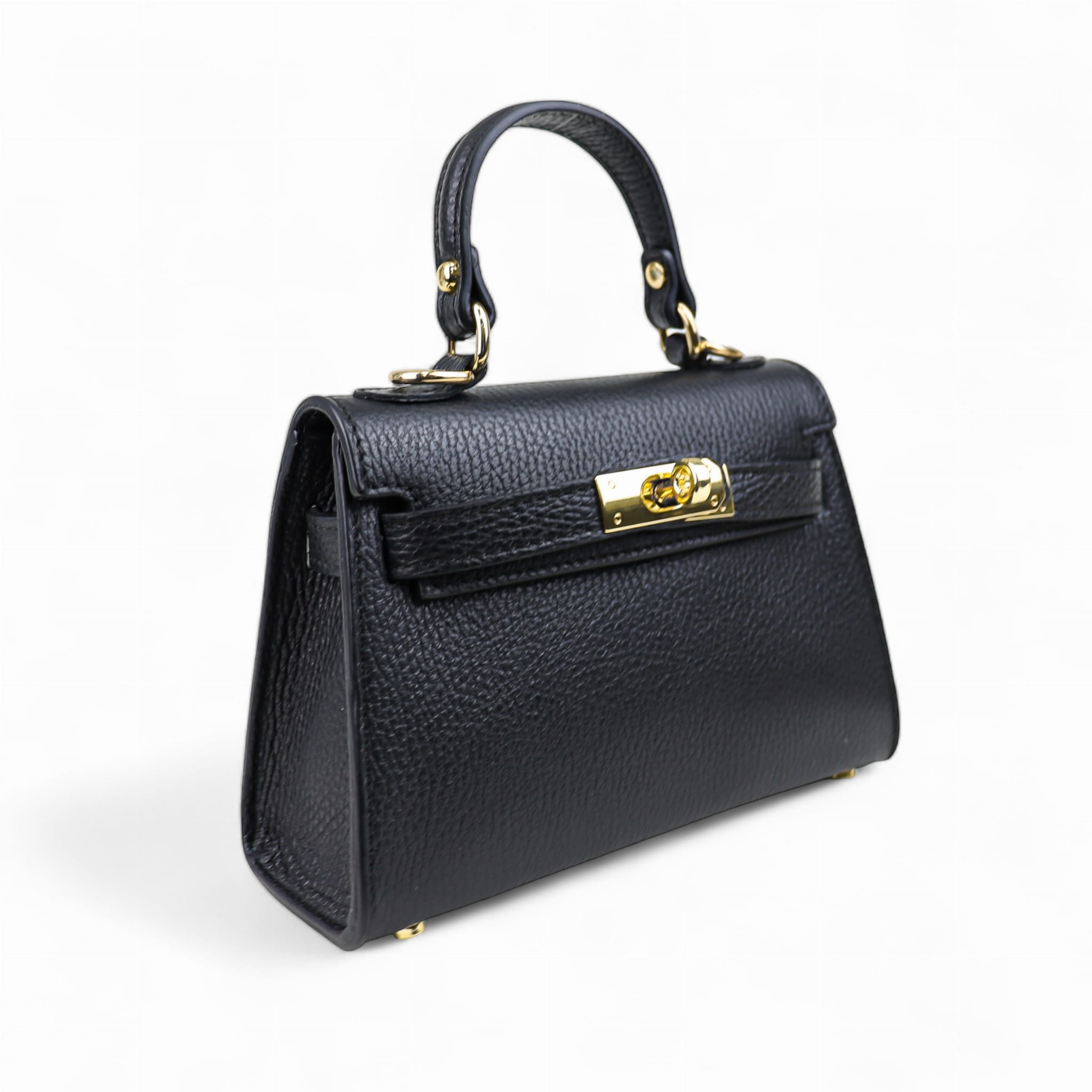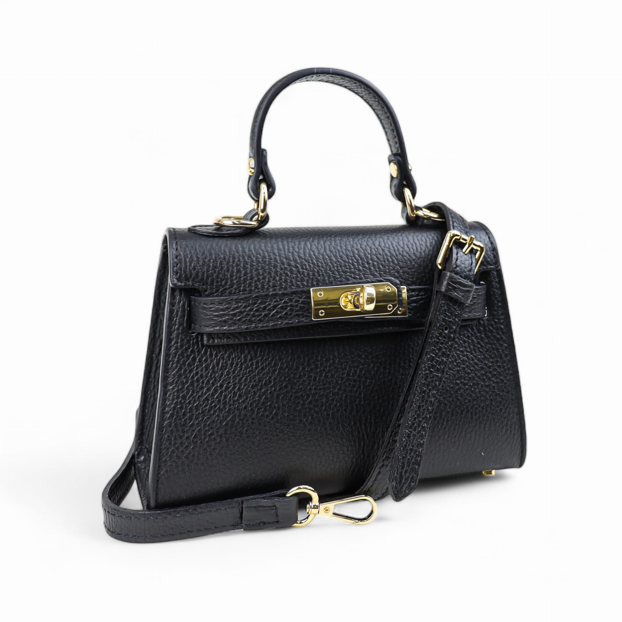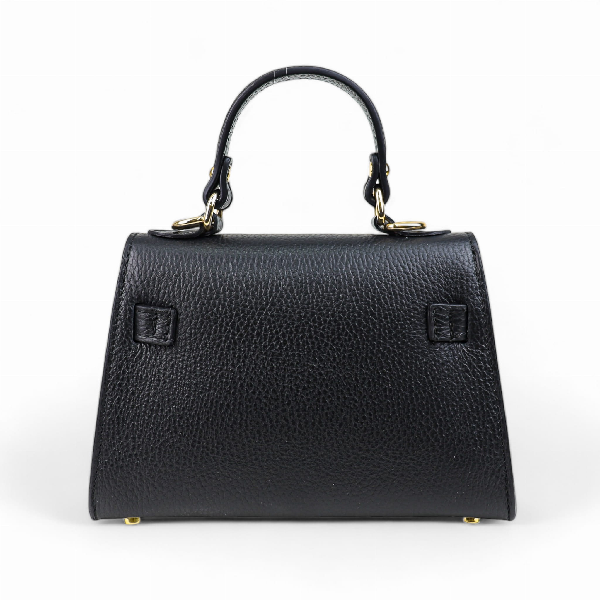 Torebka Damska Kuferek, licowa skóra Emily Czarna (złoto)