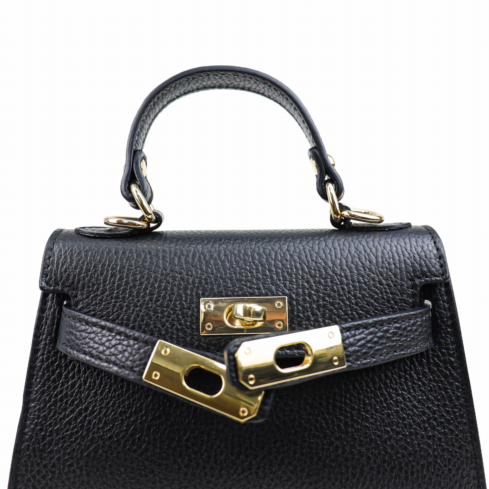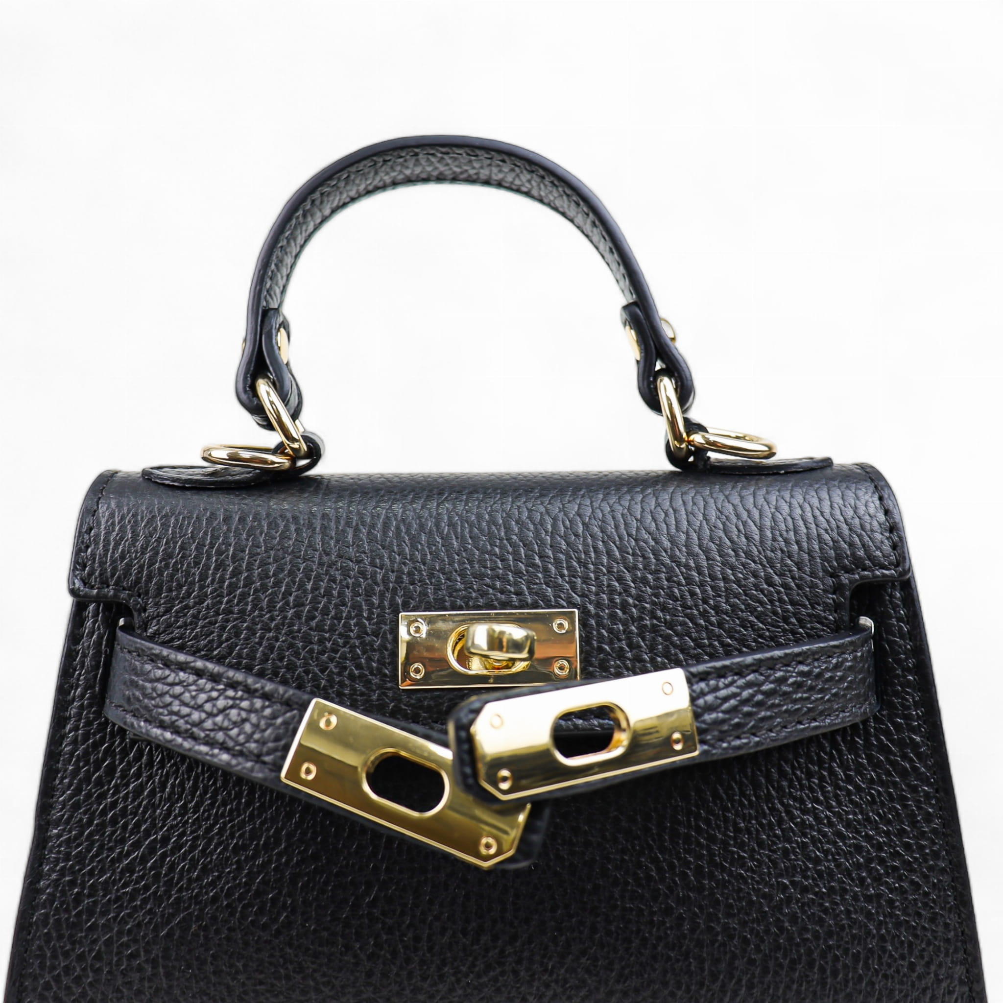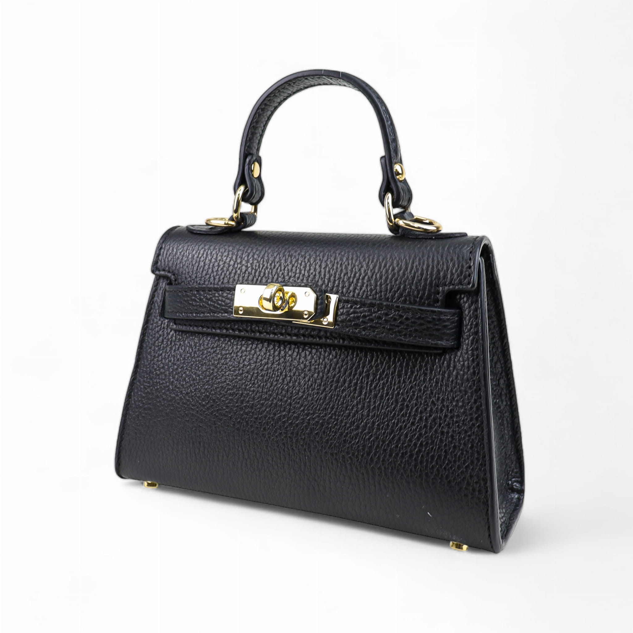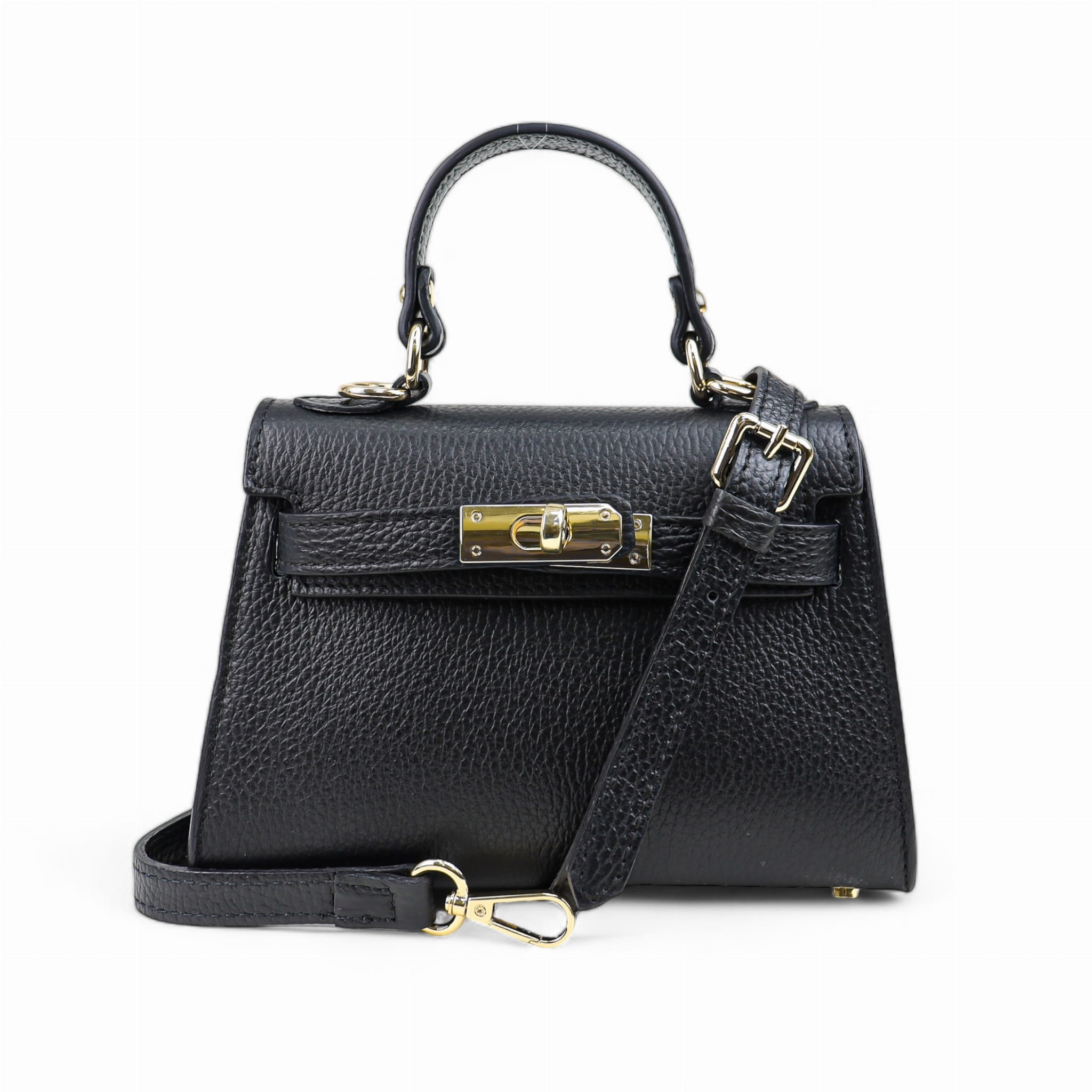 Torebka Damska Kuferek, licowa skóra Emily Czarna (złoto)