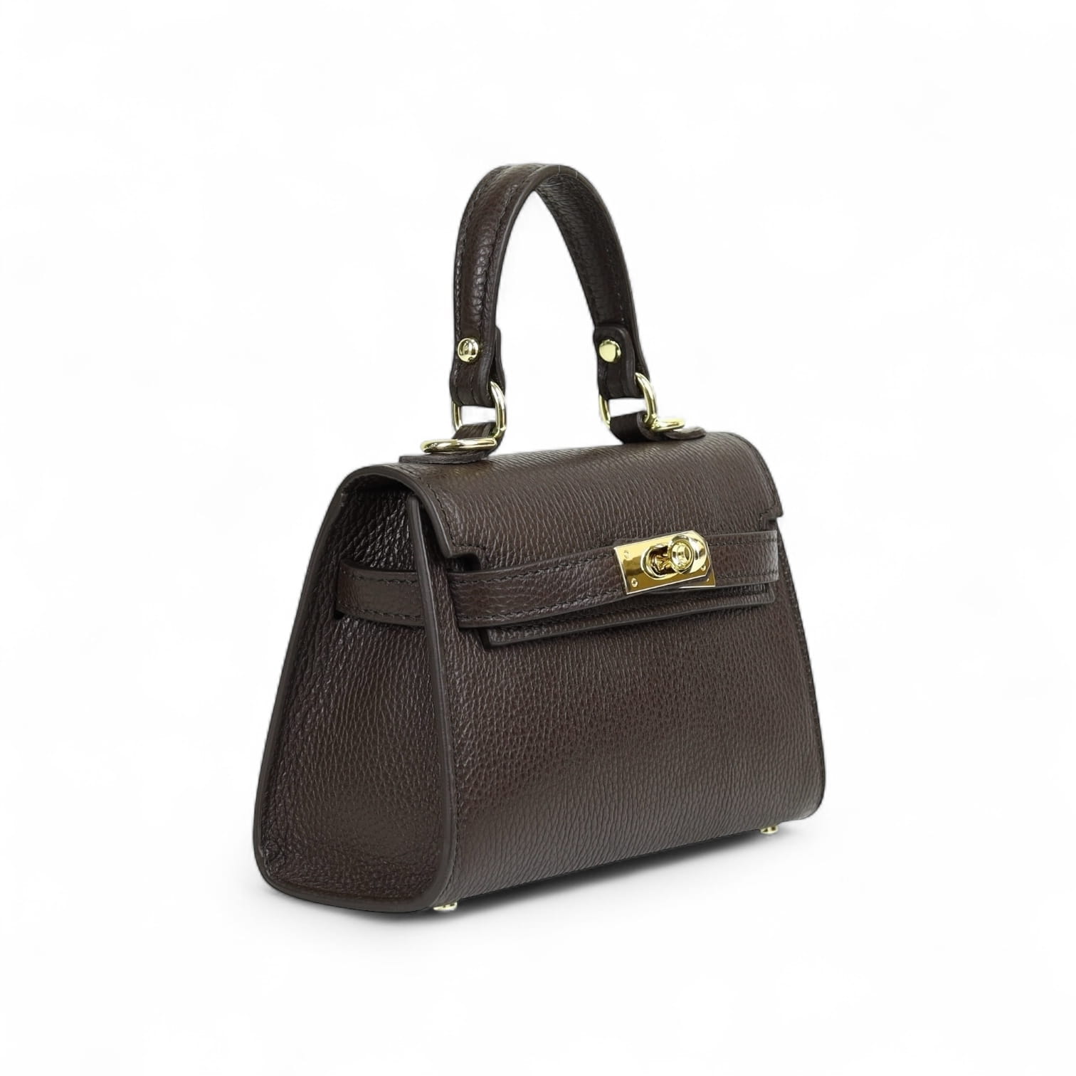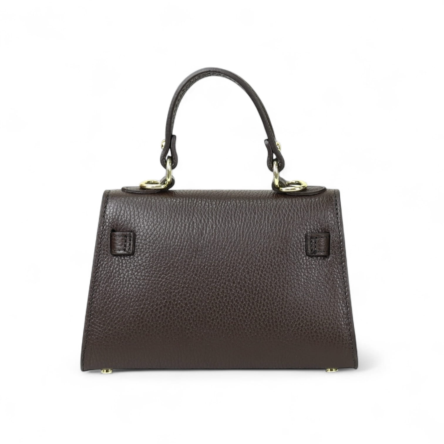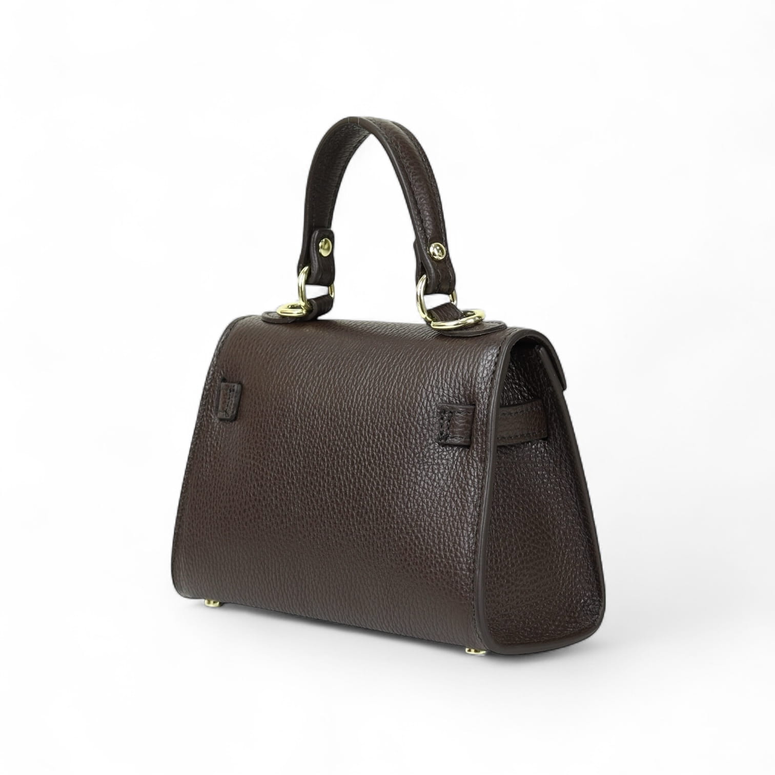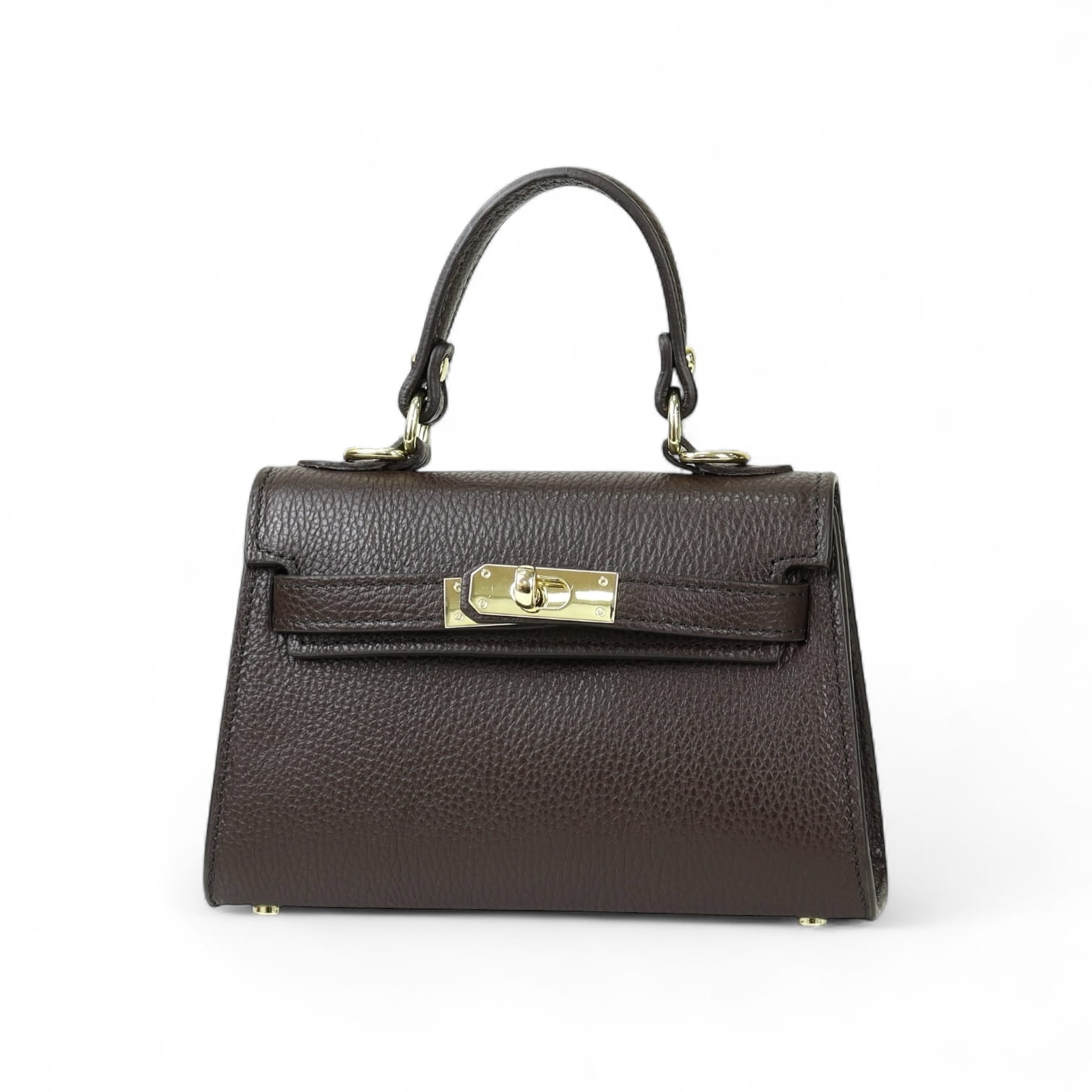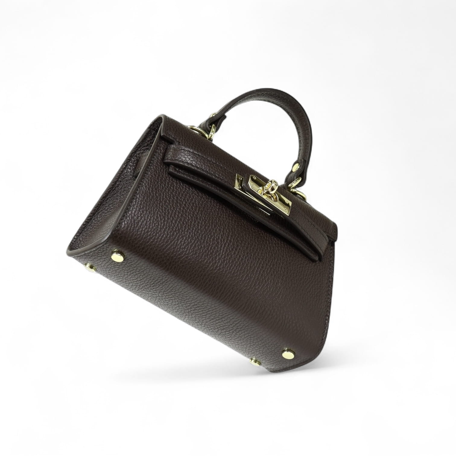 Torebka Damska Kuferek, licowa skóra Emily Espresso (złoto)