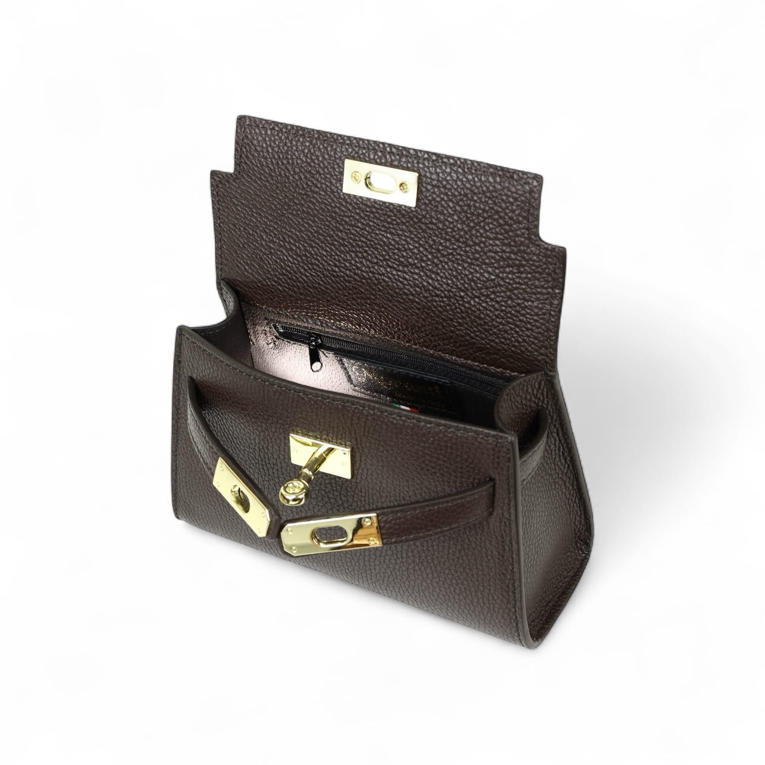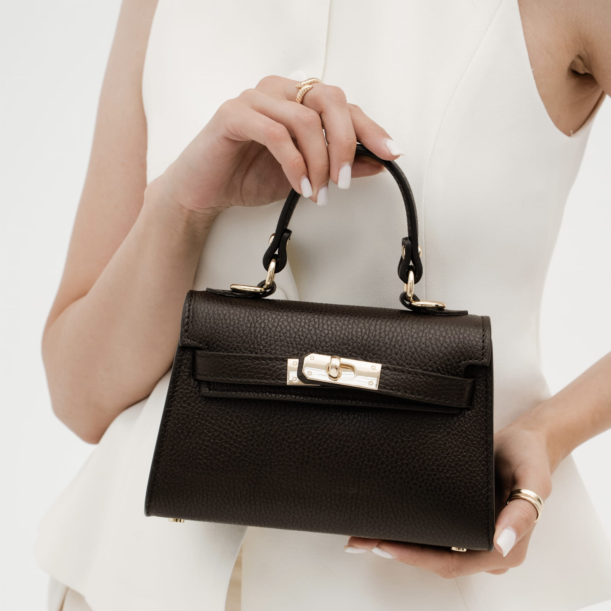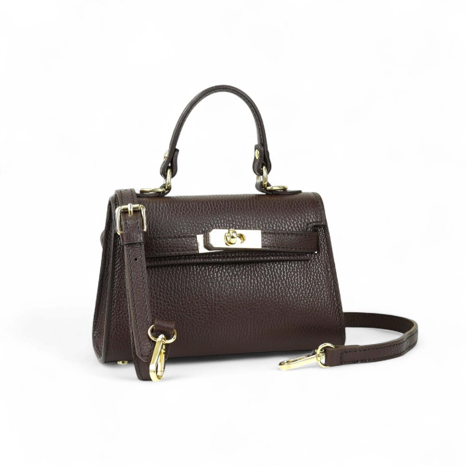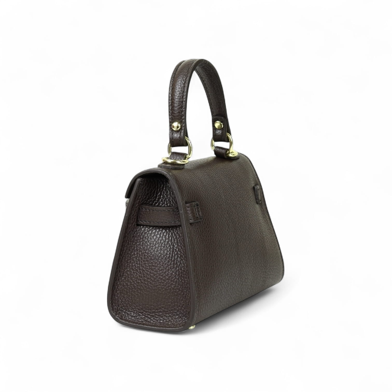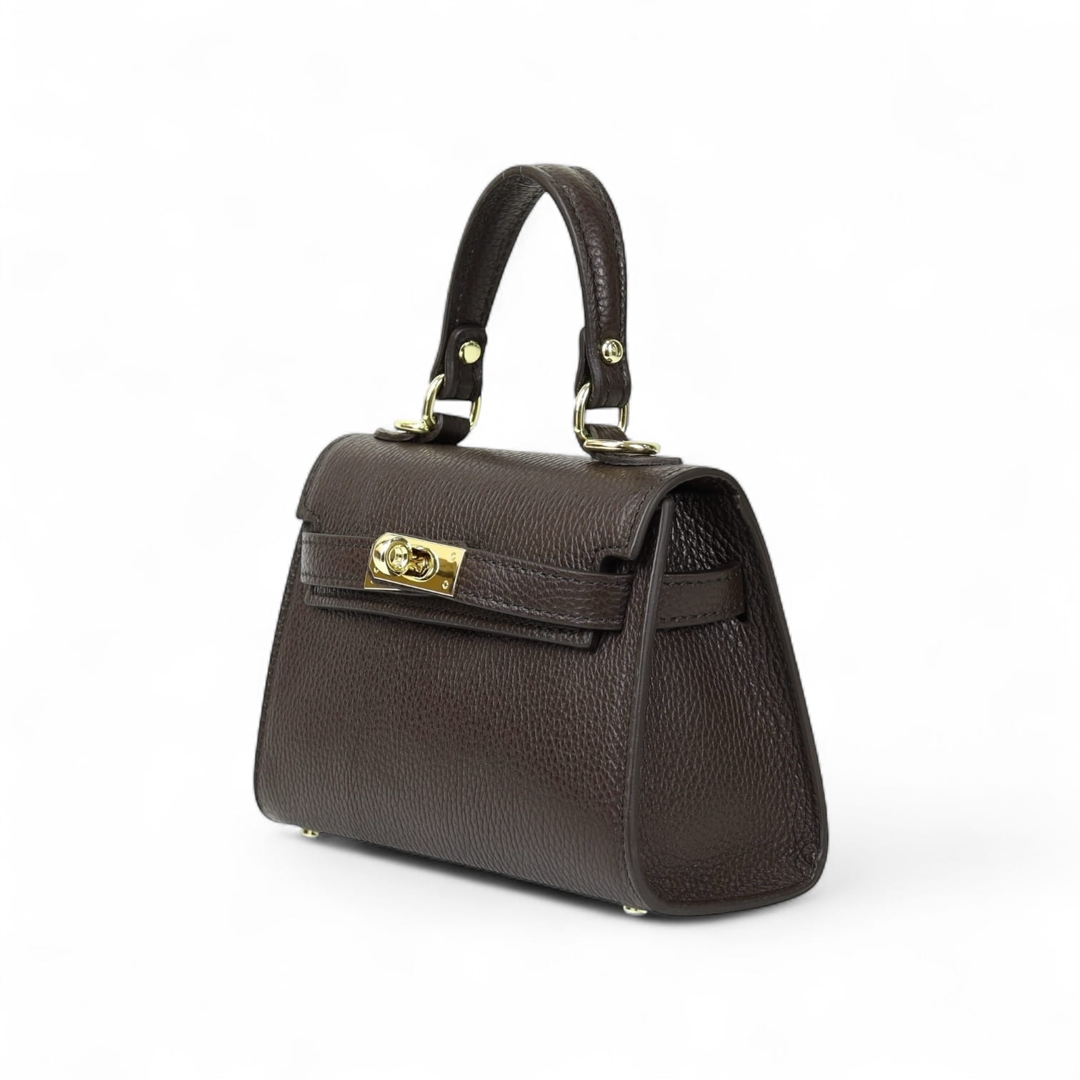 Torebka Damska Kuferek, licowa skóra Emily Espresso (złoto)