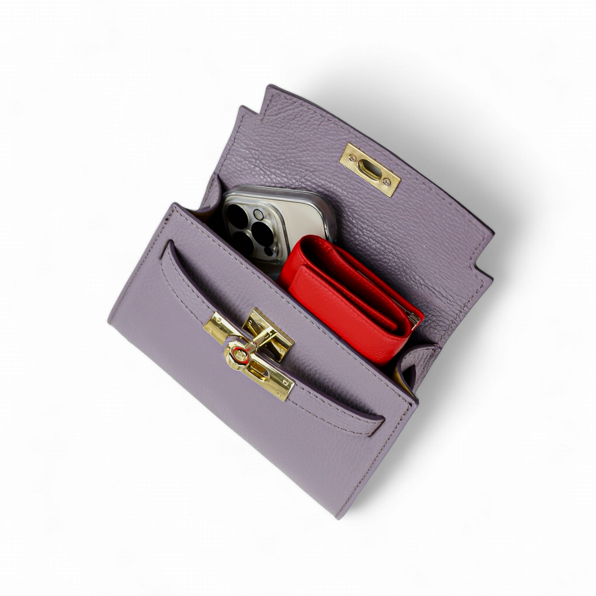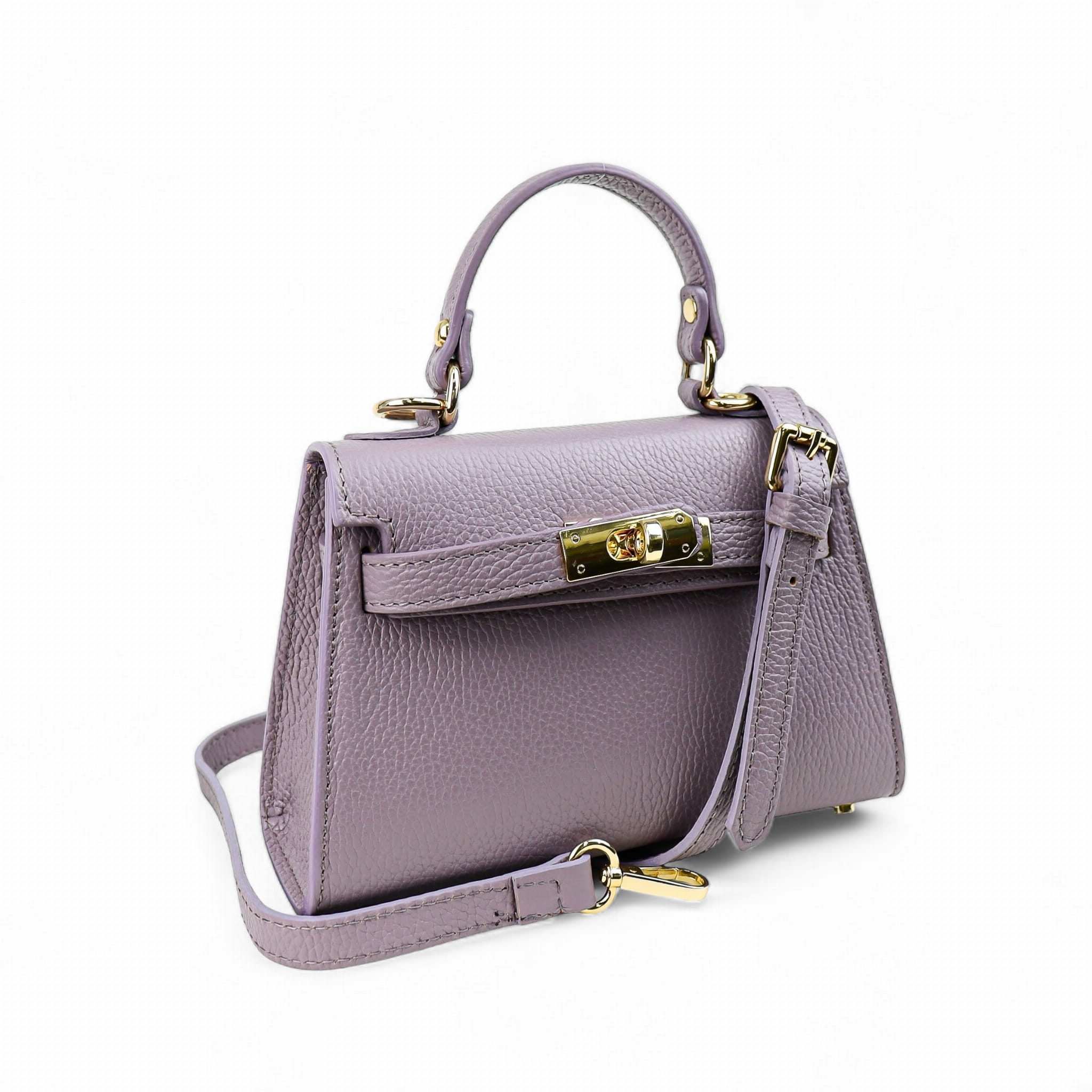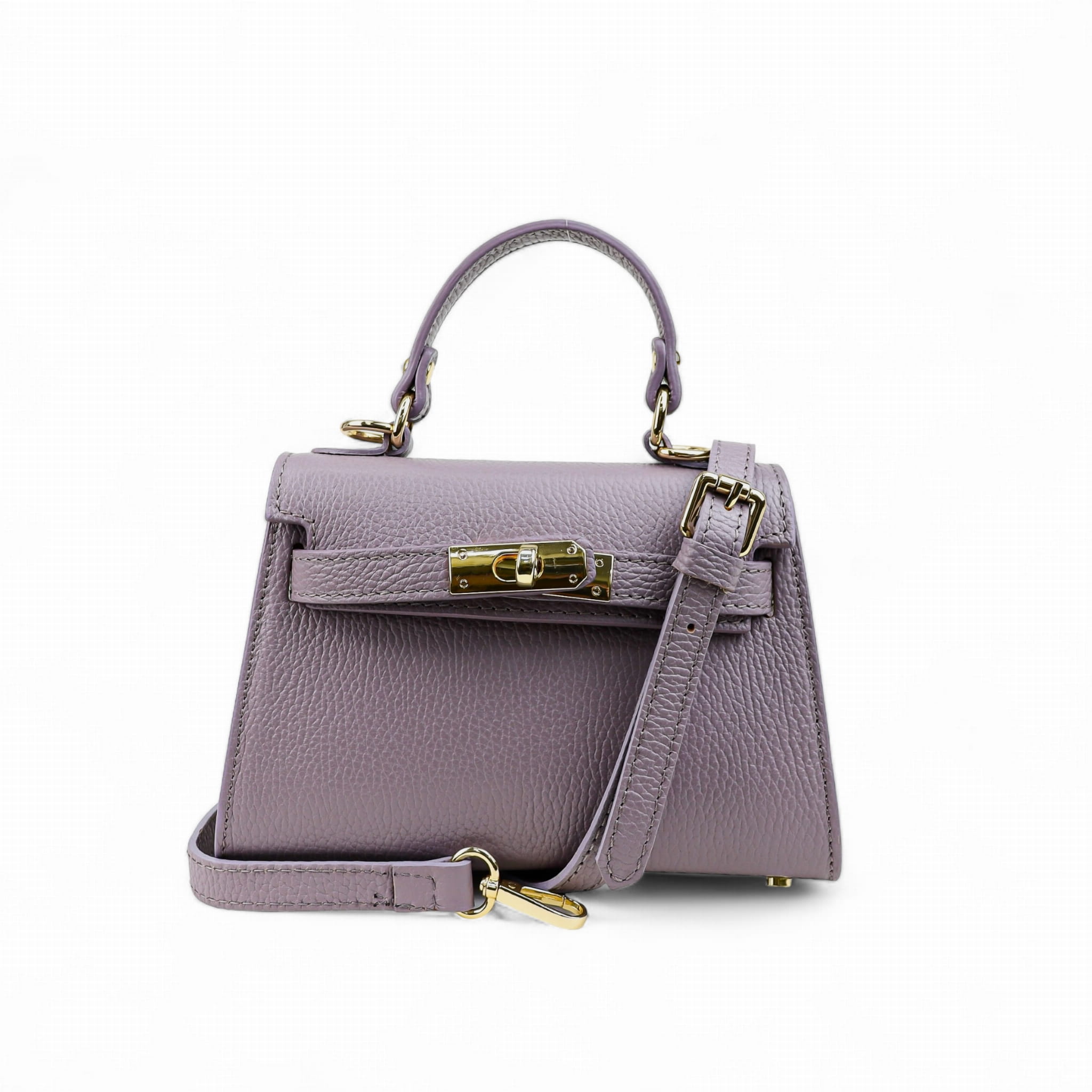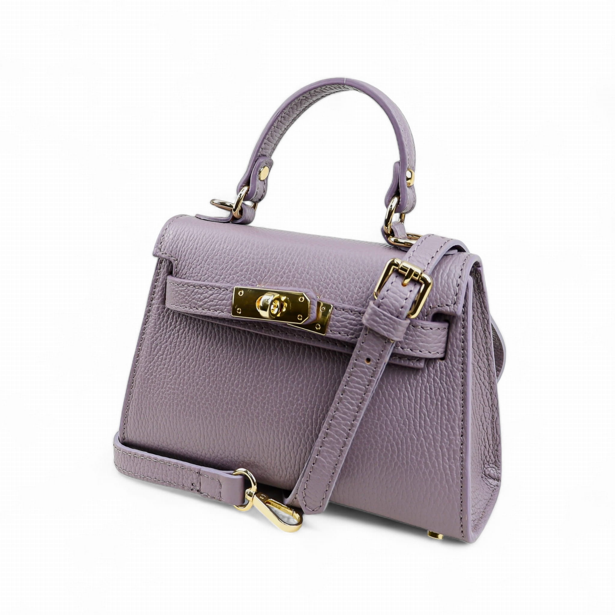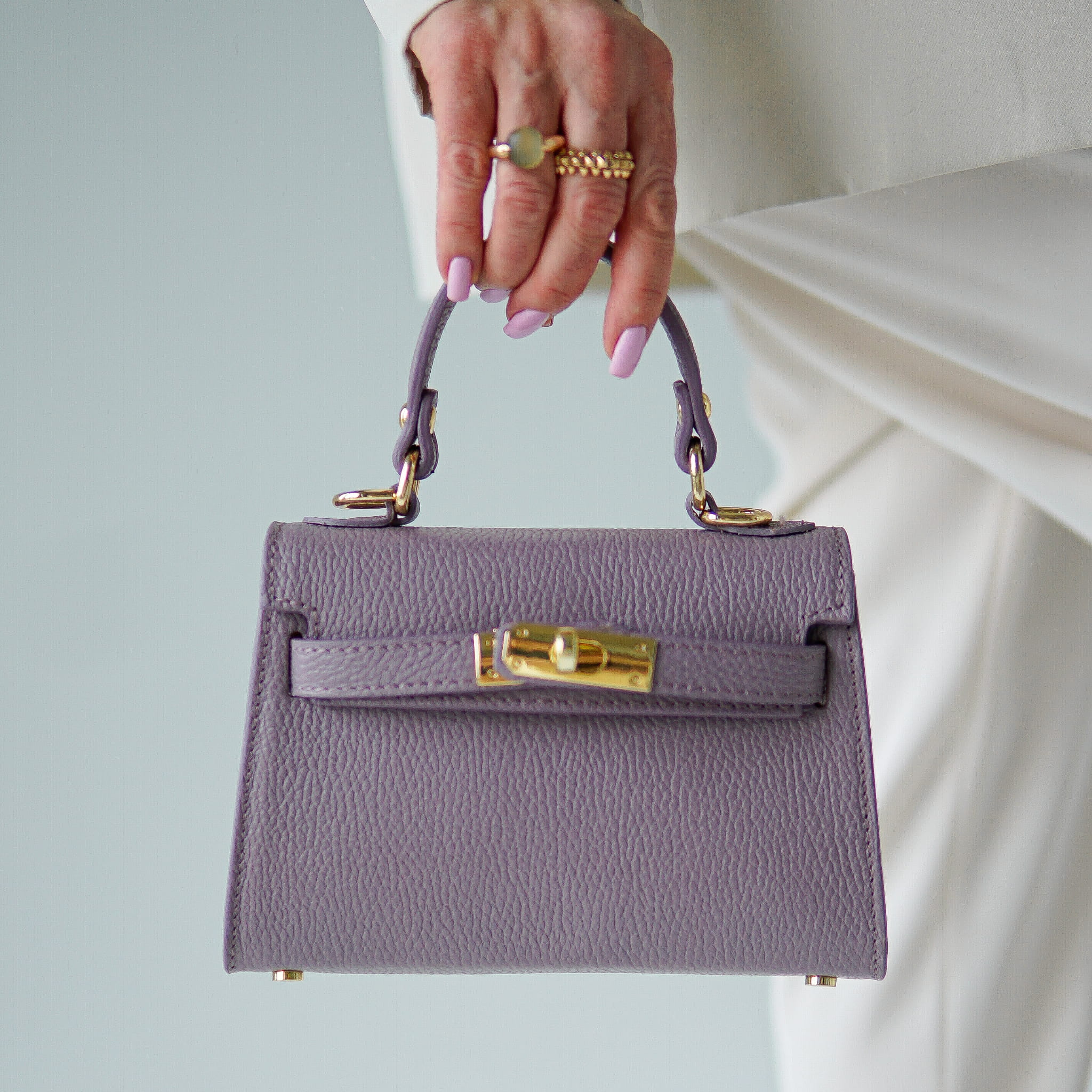 Torebka Damska Kuferek, licowa skóra Emily Liliowa (złoto)