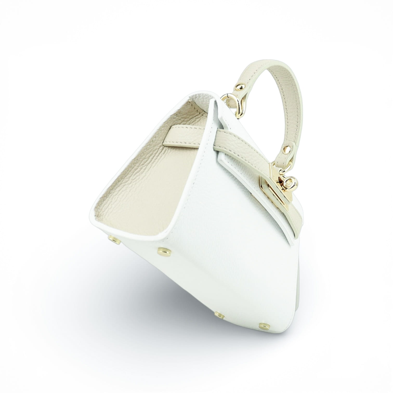 Torebka Damska Kuferek, skóra naturalna Emily Biały-Beżowy