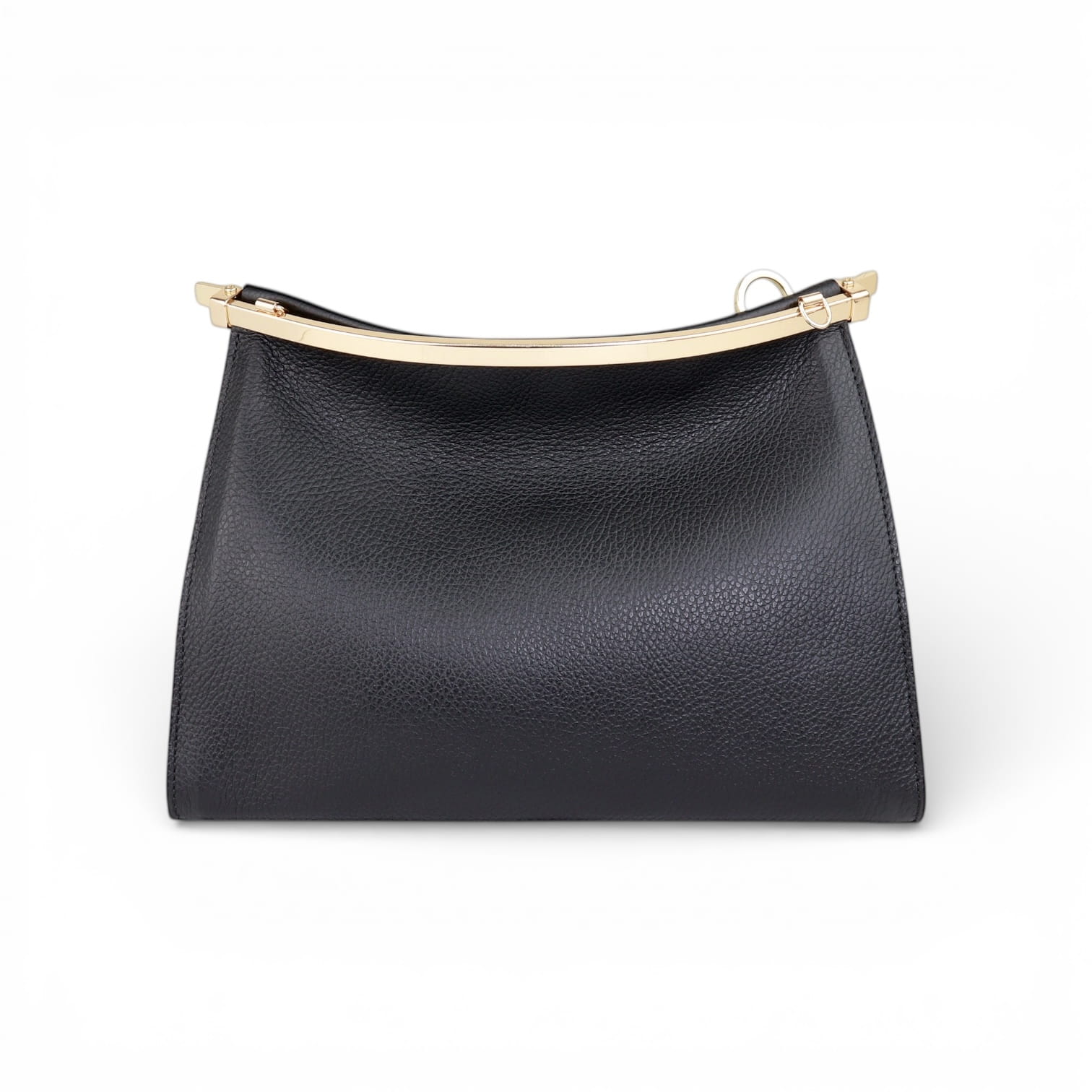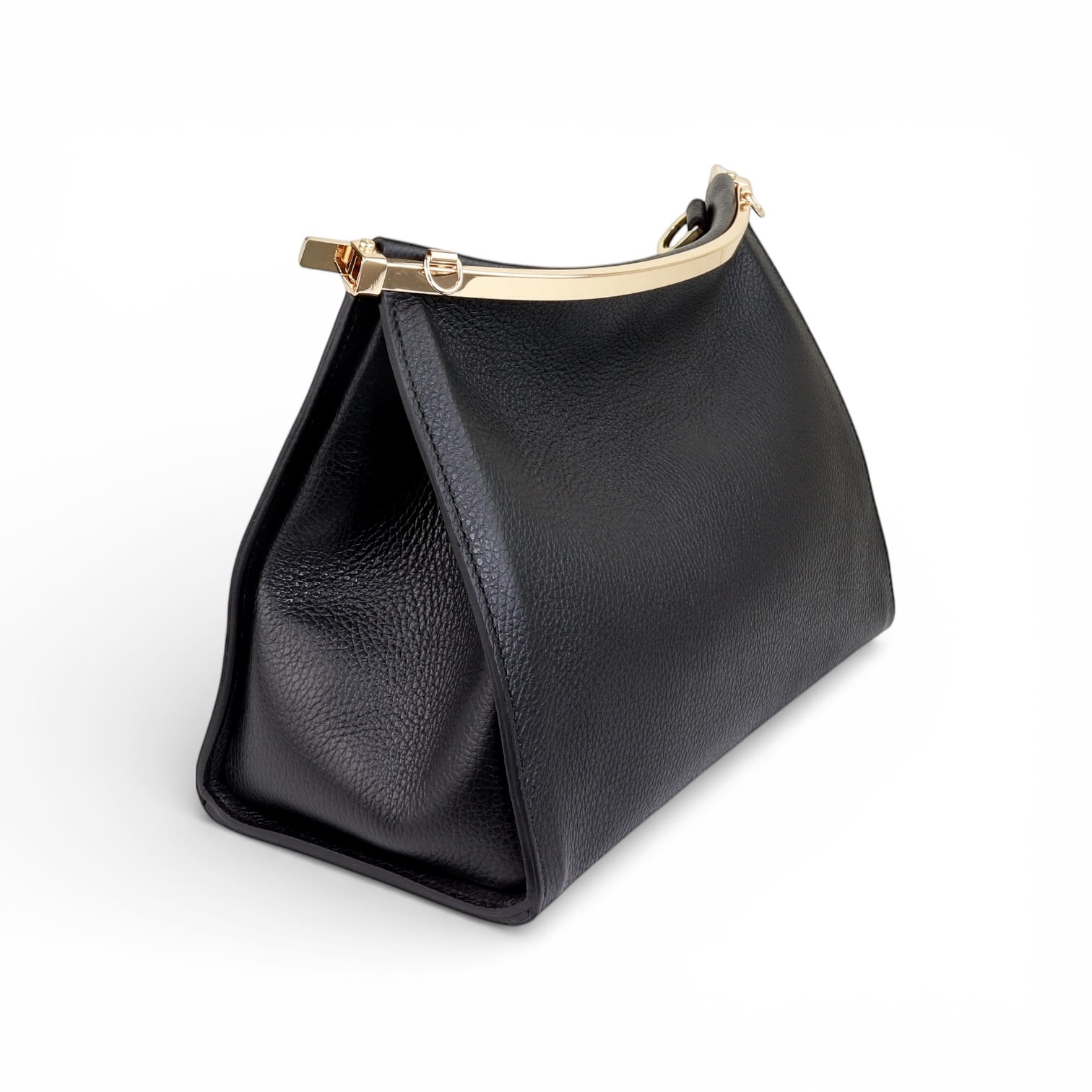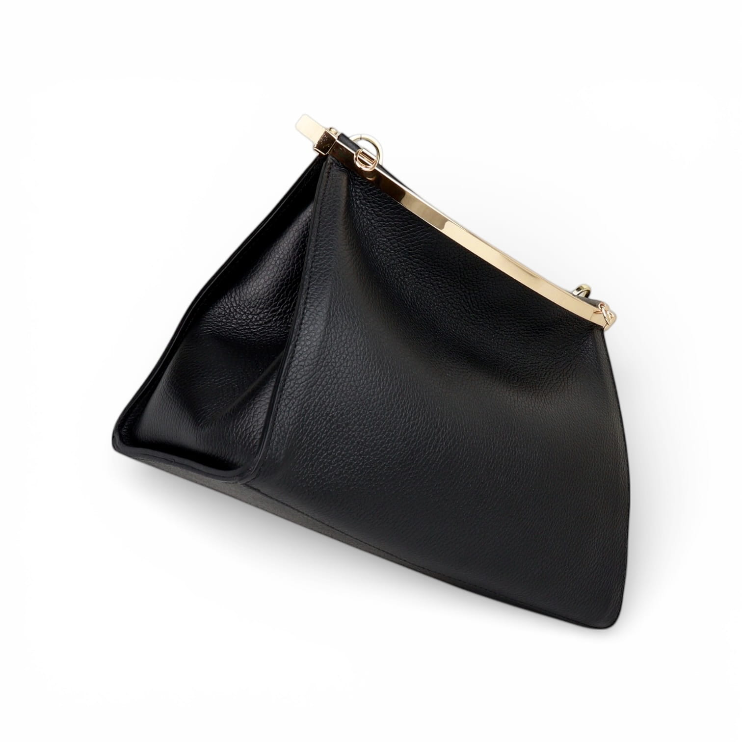 Torebka zamykana jest na metalową ramę, która porządkuje formę i wzmacnia konstrukcję. Model wyposażony jest w dwa odpinane paski: krótki, nieregulowany pasek do noszenia na ramieniu oraz długi pasek regulowany, który umożliwia noszenie na ramieniu lub przez ramię. Większy rozmiar sprawia, że torebka jest bardziej pojemna i lepiej sprawdza się podczas dłuższych wyjść, spotkań i wydarzeń.