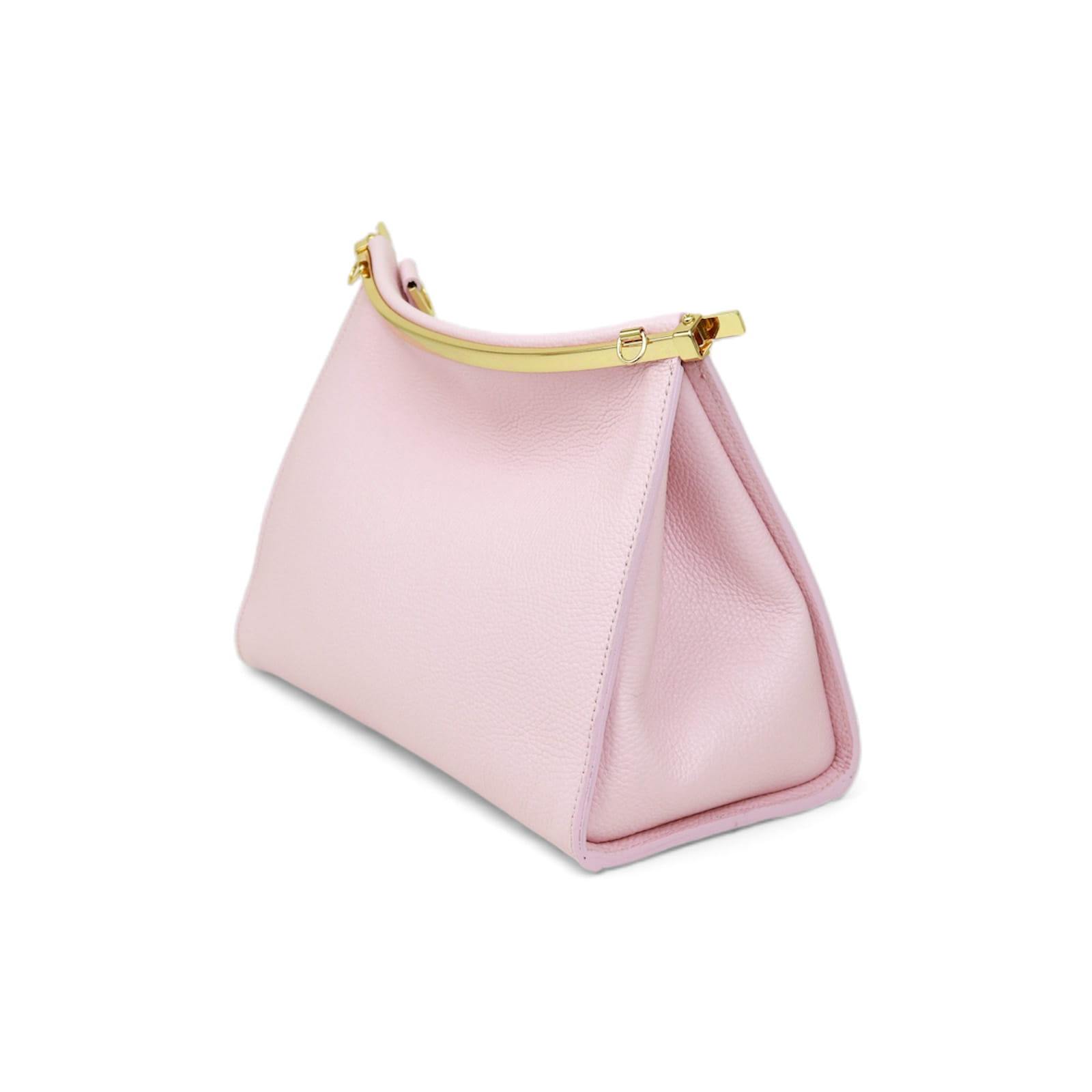 Torebka zamykana jest na metalową ramę, która porządkuje formę i wzmacnia konstrukcję. Model wyposażony jest w dwa odpinane paski: krótki, nieregulowany pasek do noszenia na ramieniu oraz długi pasek regulowany, który umożliwia noszenie na ramieniu lub przez ramię. Większy rozmiar sprawia, że torebka jest bardziej pojemna i lepiej sprawdza się podczas dłuższych wyjść, spotkań i wydarzeń.