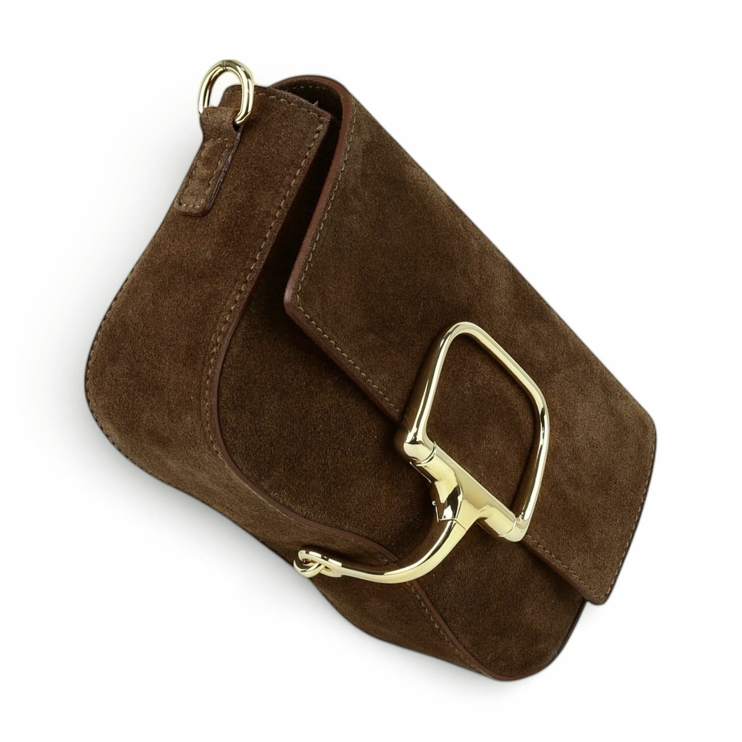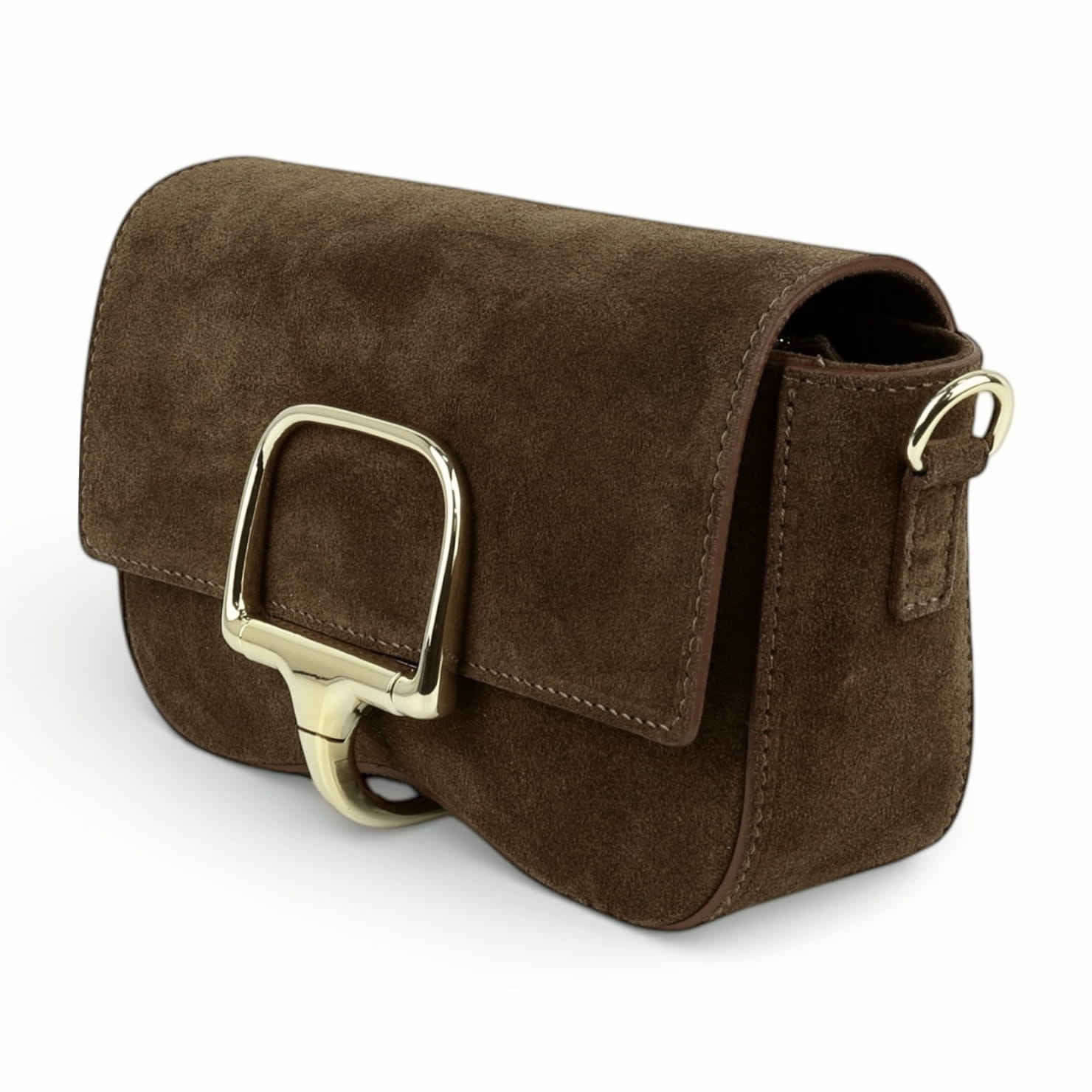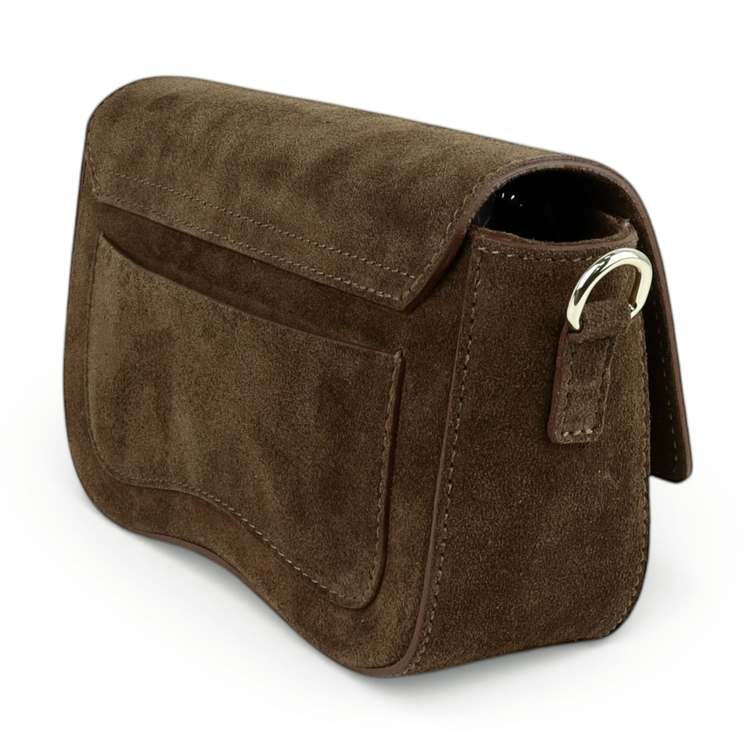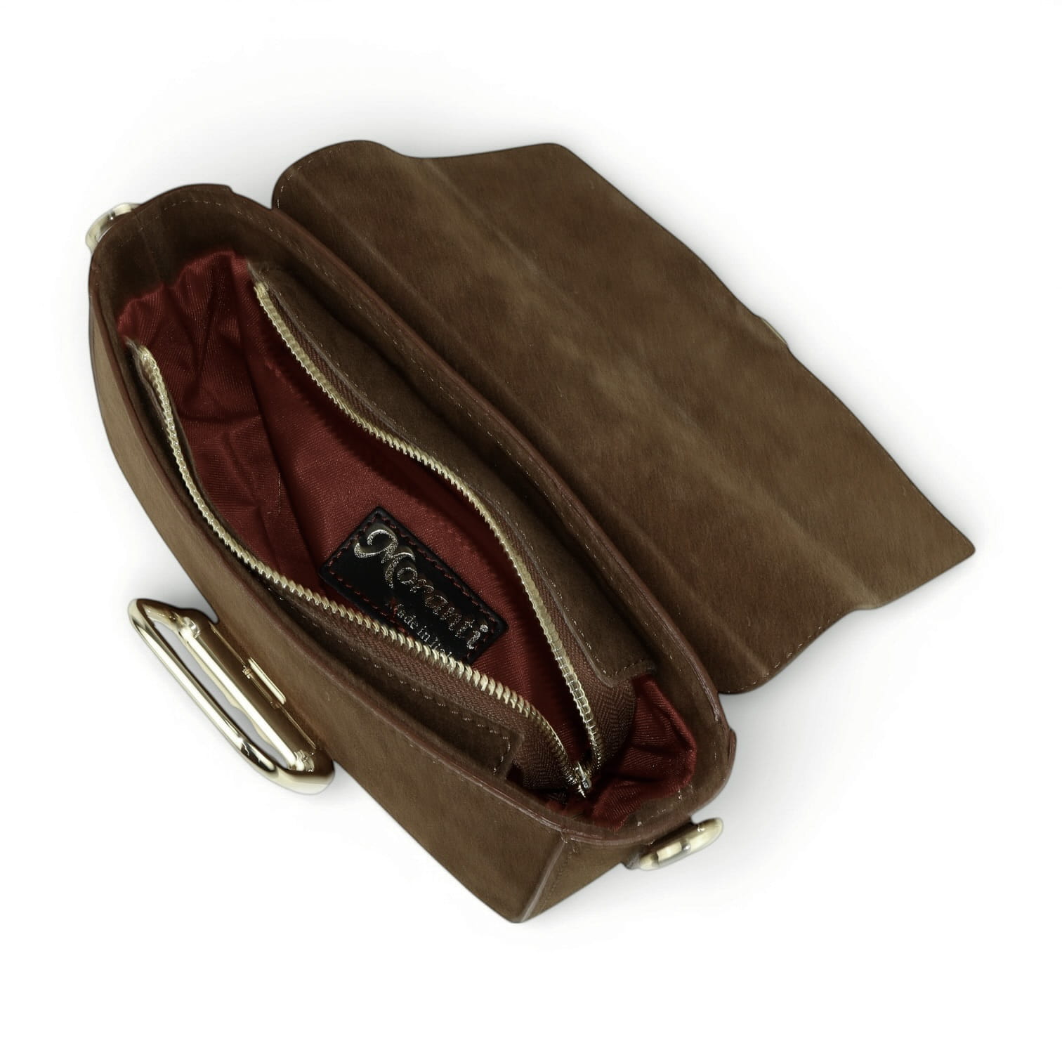 Elegancka włoska listonoszka damska z naturalnego zamszu – złote okucia.