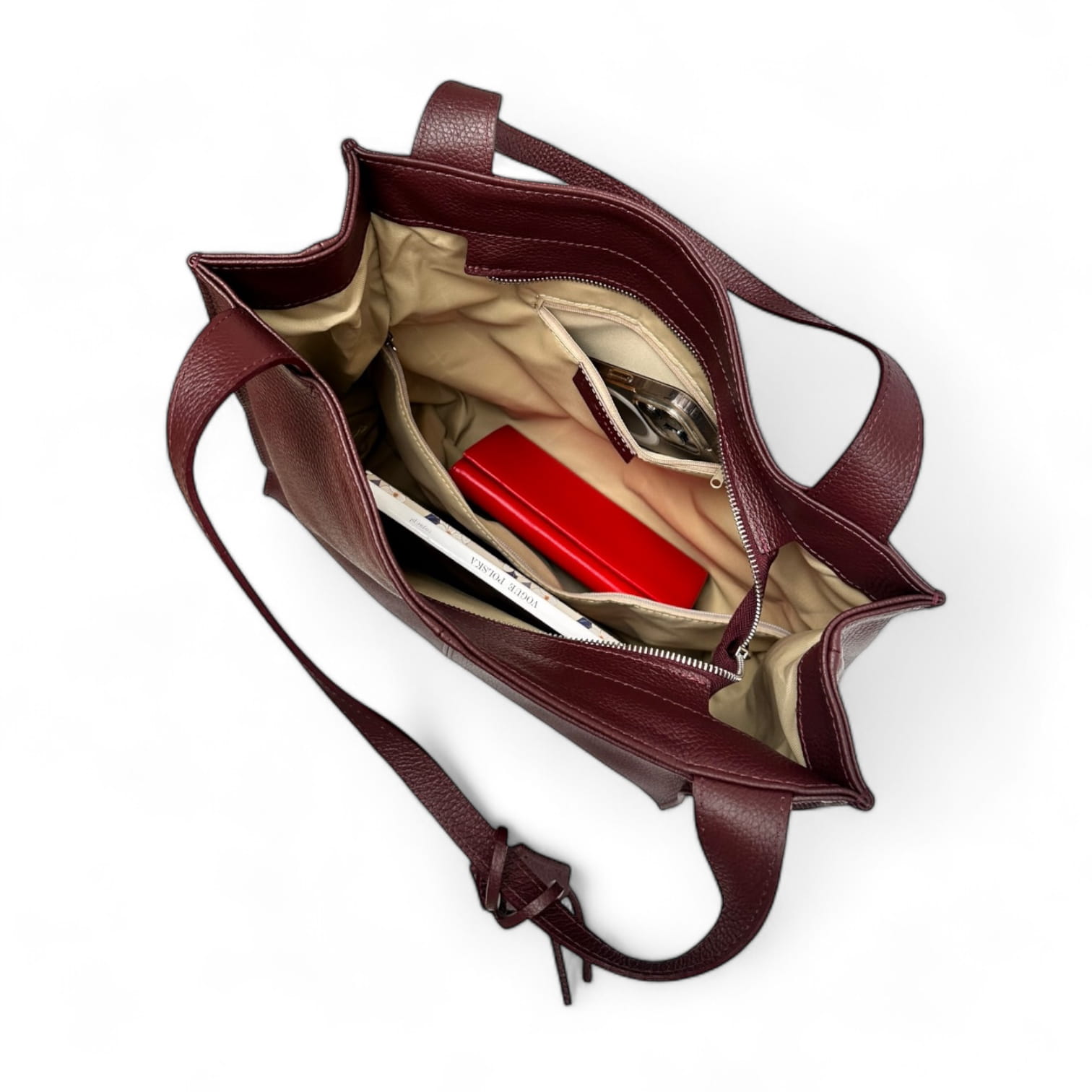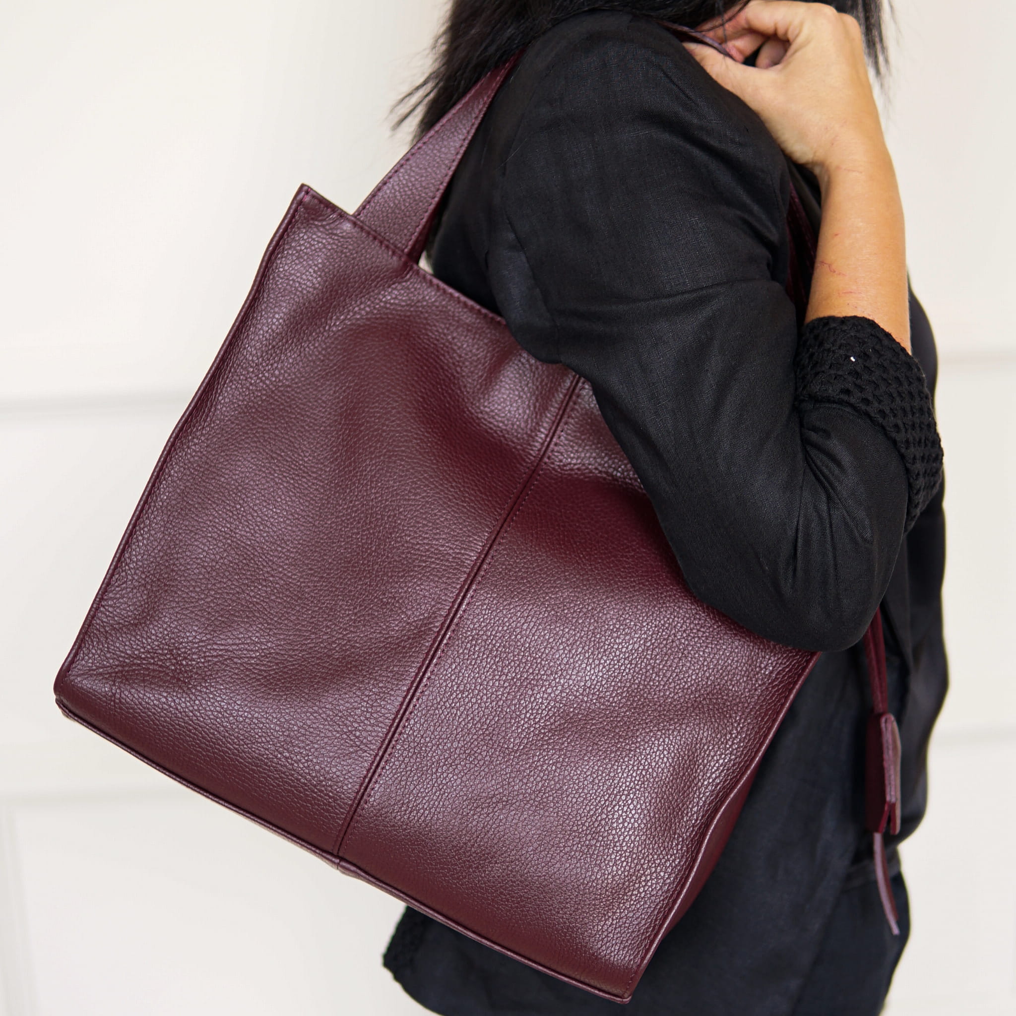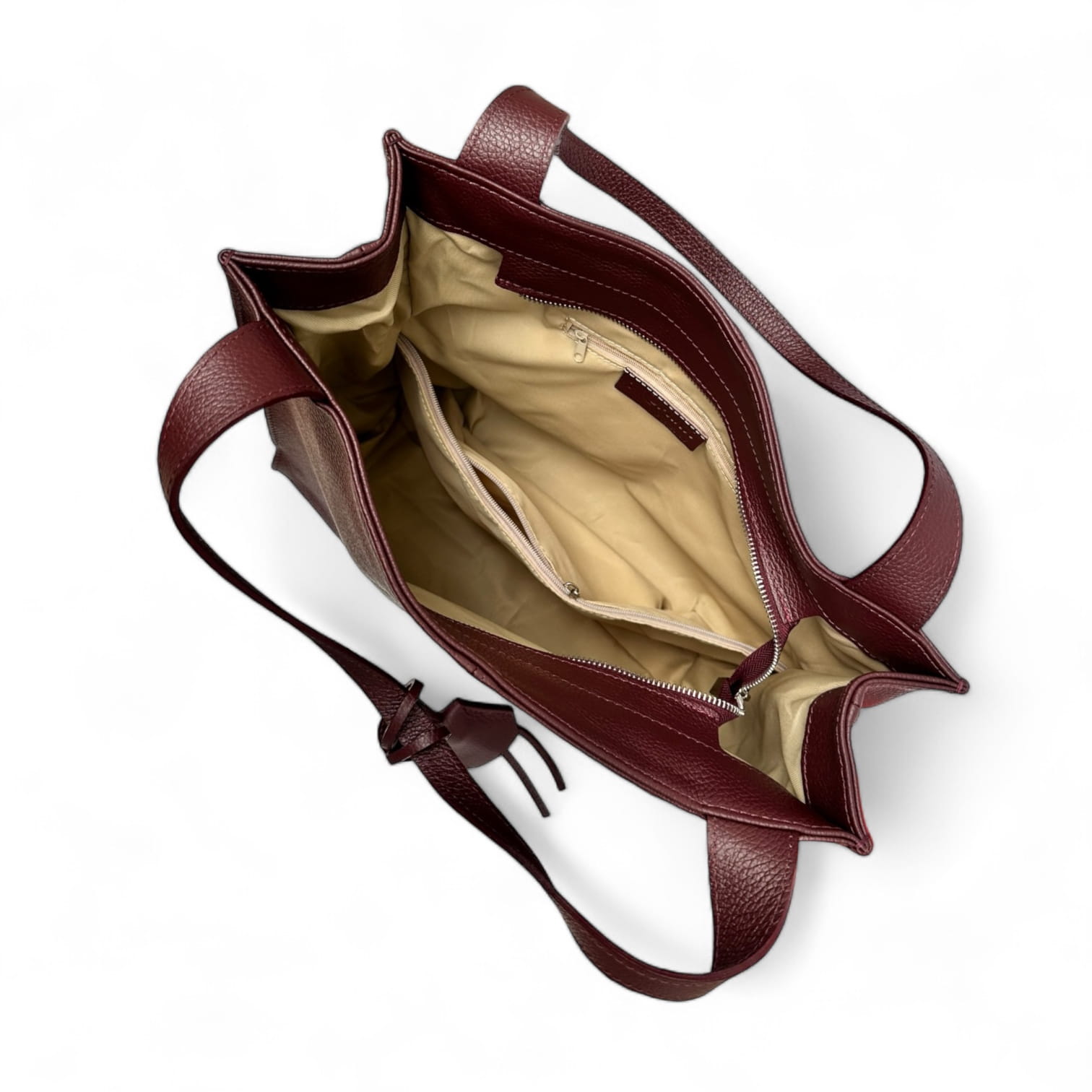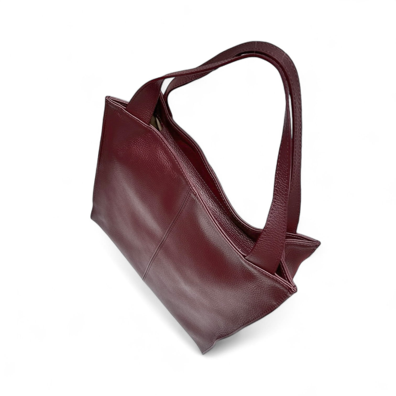 Torebka Damska Shopper, skóra naturalna Elif Bordowa