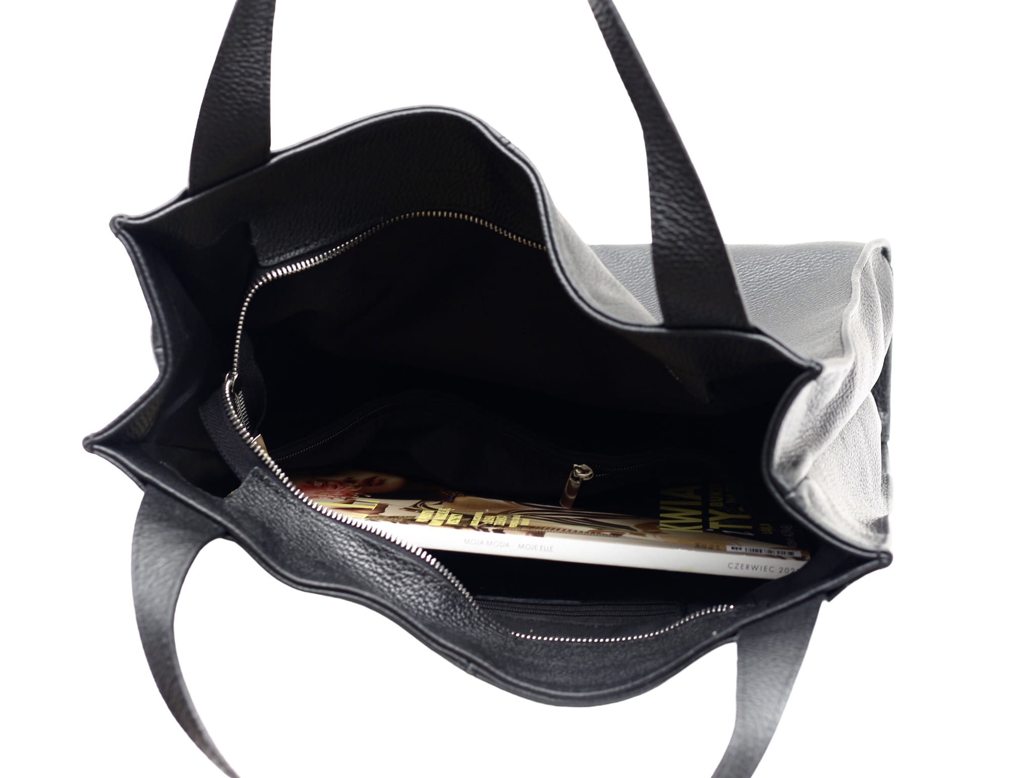 - Posiada dwie kieszenie wewnętrzne zapinane na suwak.