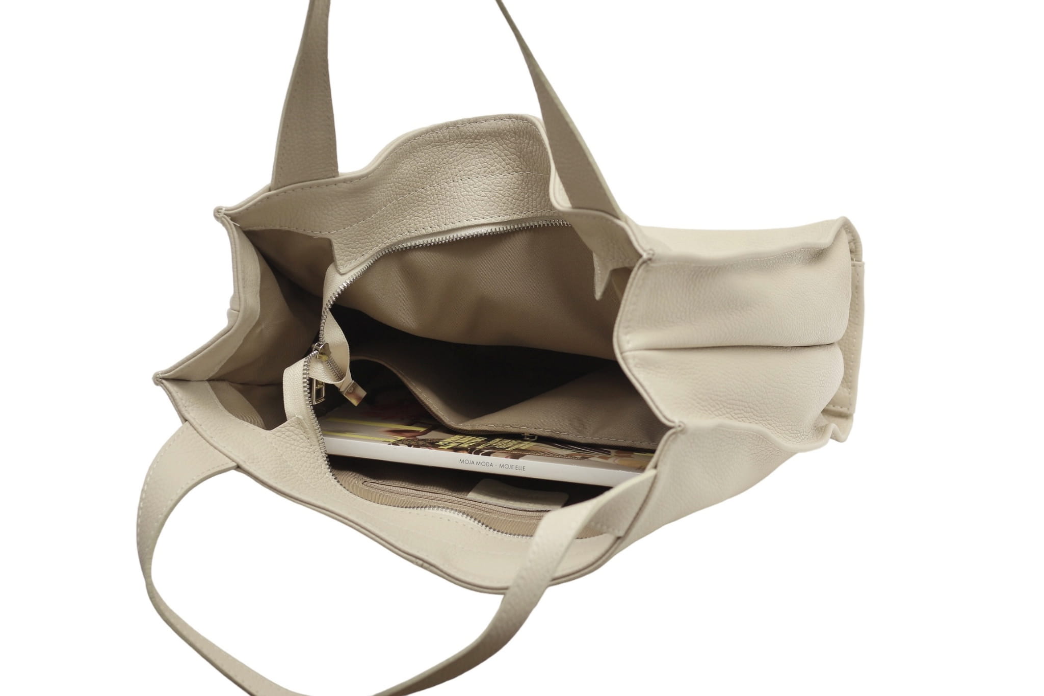 Torebka Damska Shopper, skóra naturalna Elif Ecru