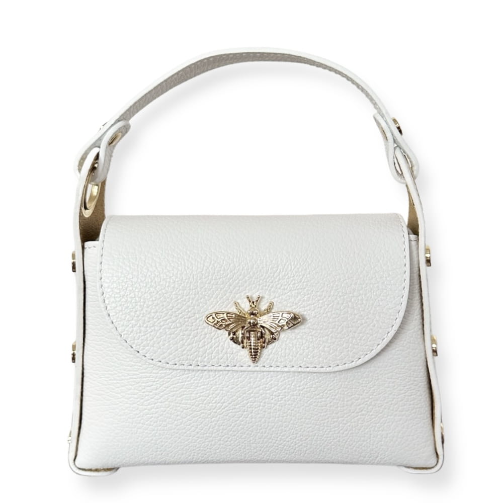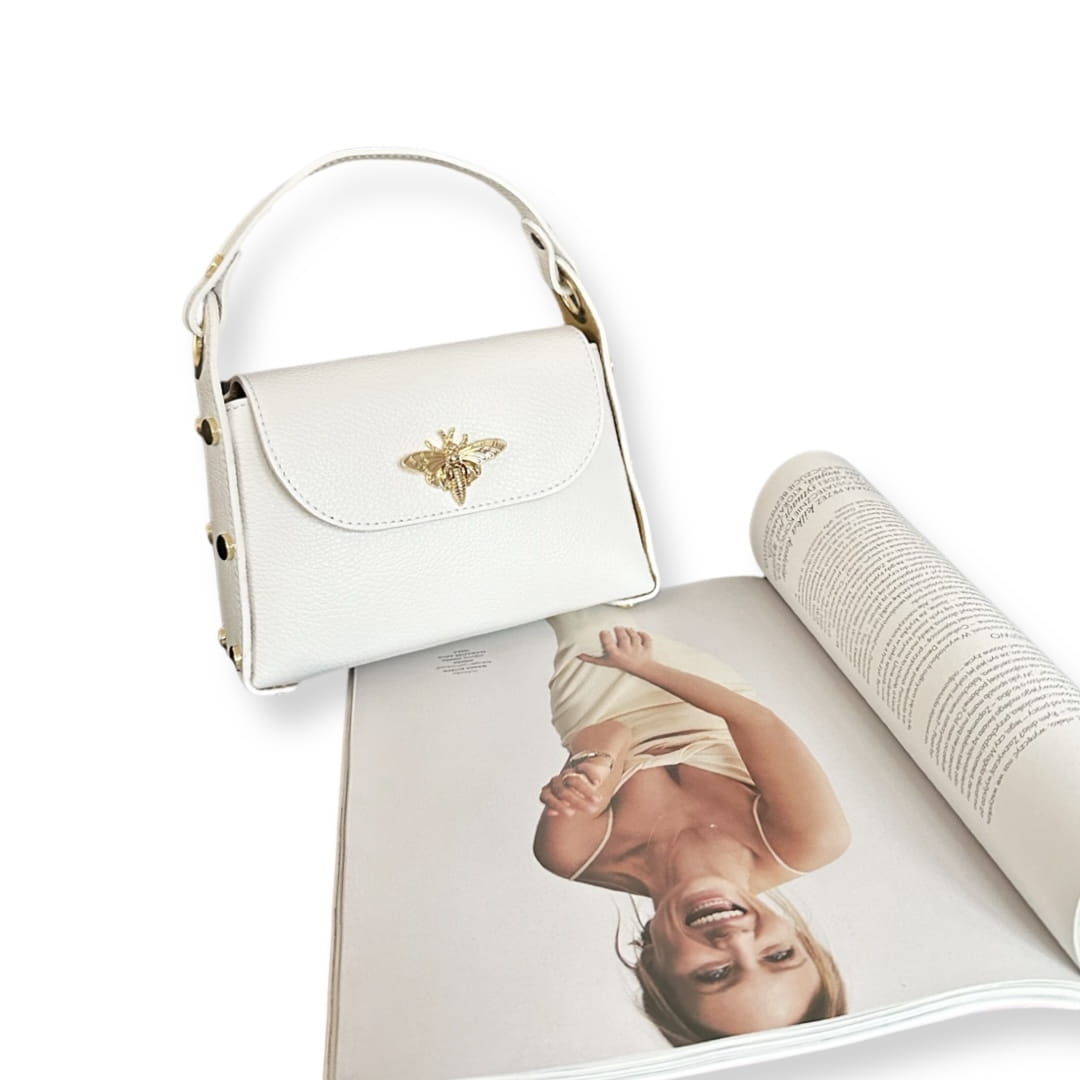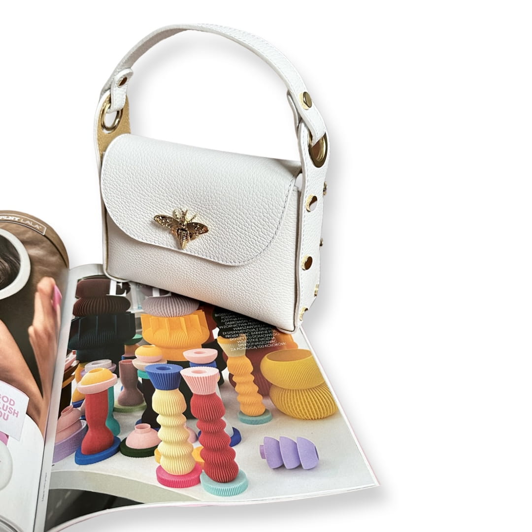 - Torebka zamykana zdobioną pszczółką na klapie co dodaje torebce wdzięku i urzekającego wyglądu.