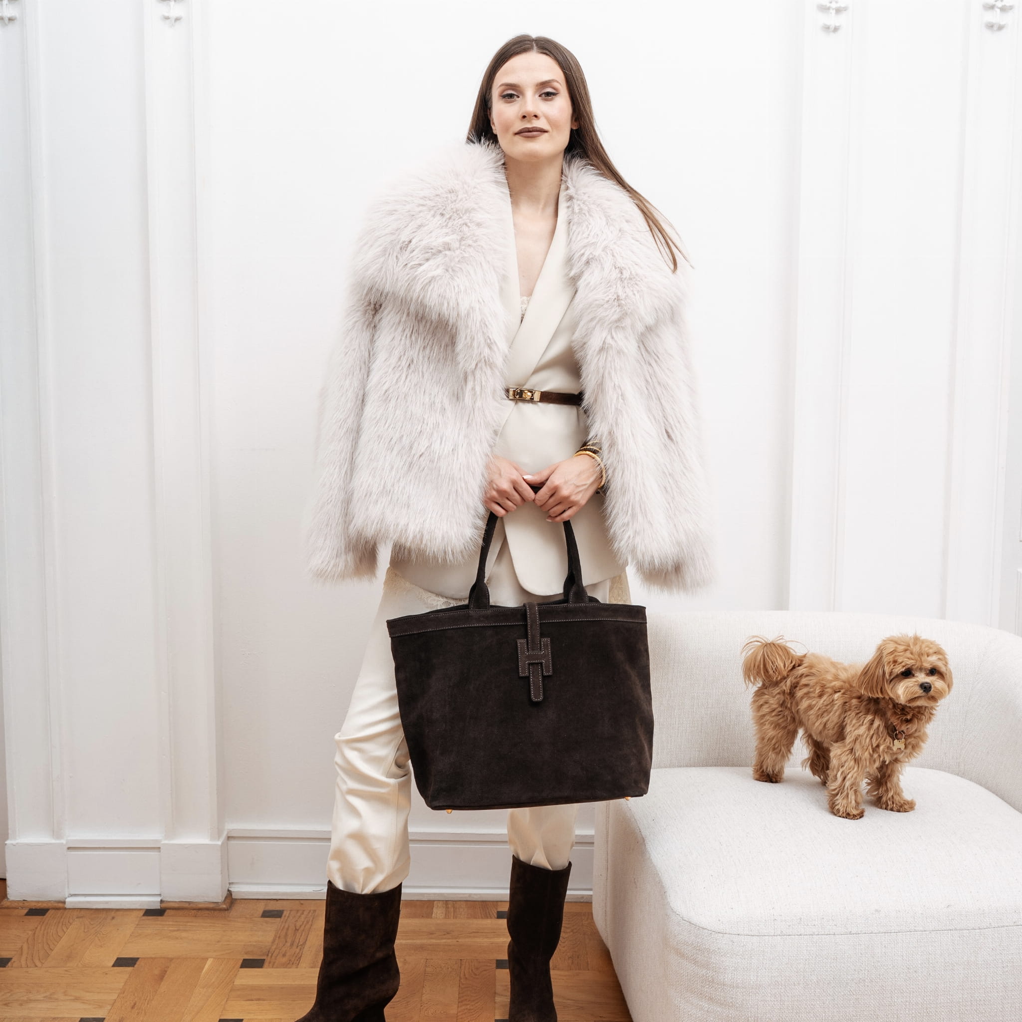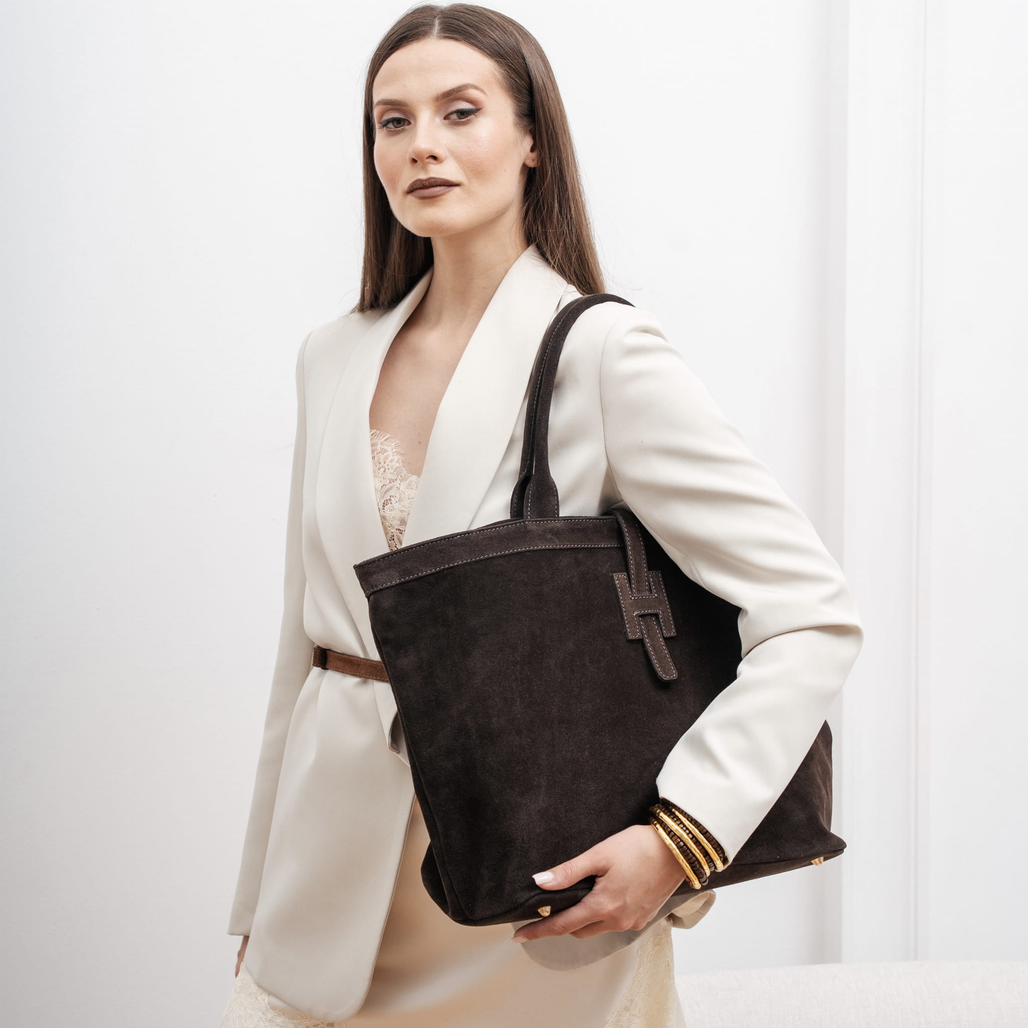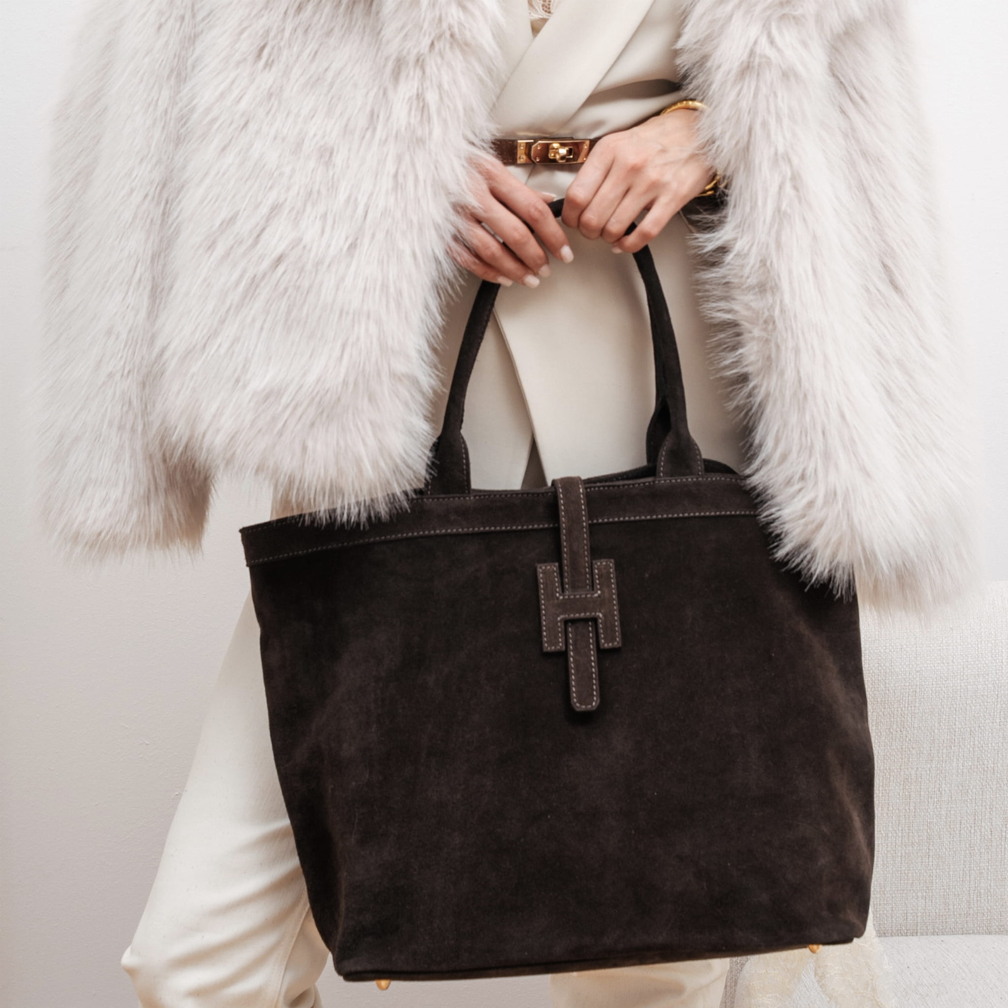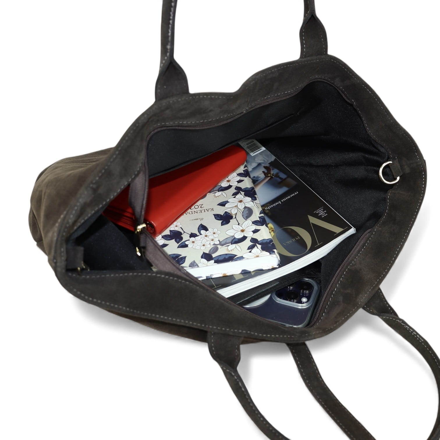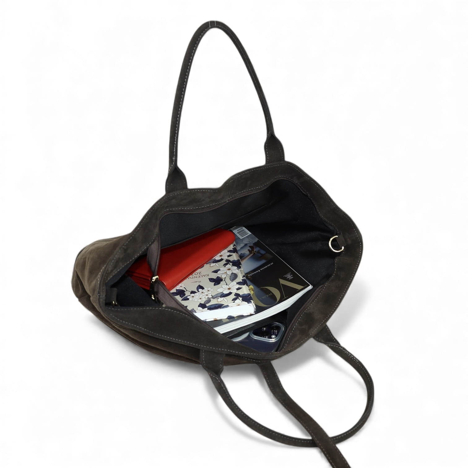 Stylowa i pojemna torebka shopper wykonana z wysokiej jakości naturalnej skóry zamszowej, szyta we Włoszech. Idealna na co dzień – łączy elegancję, funkcjonalność i ponadczasowy włoski styl.