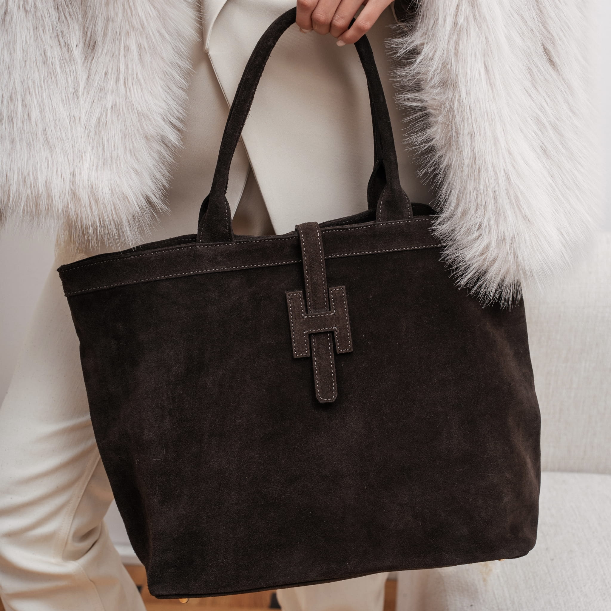 Elegancka torebka shopper z naturalnej skóry zamszowej – Made in Italy.