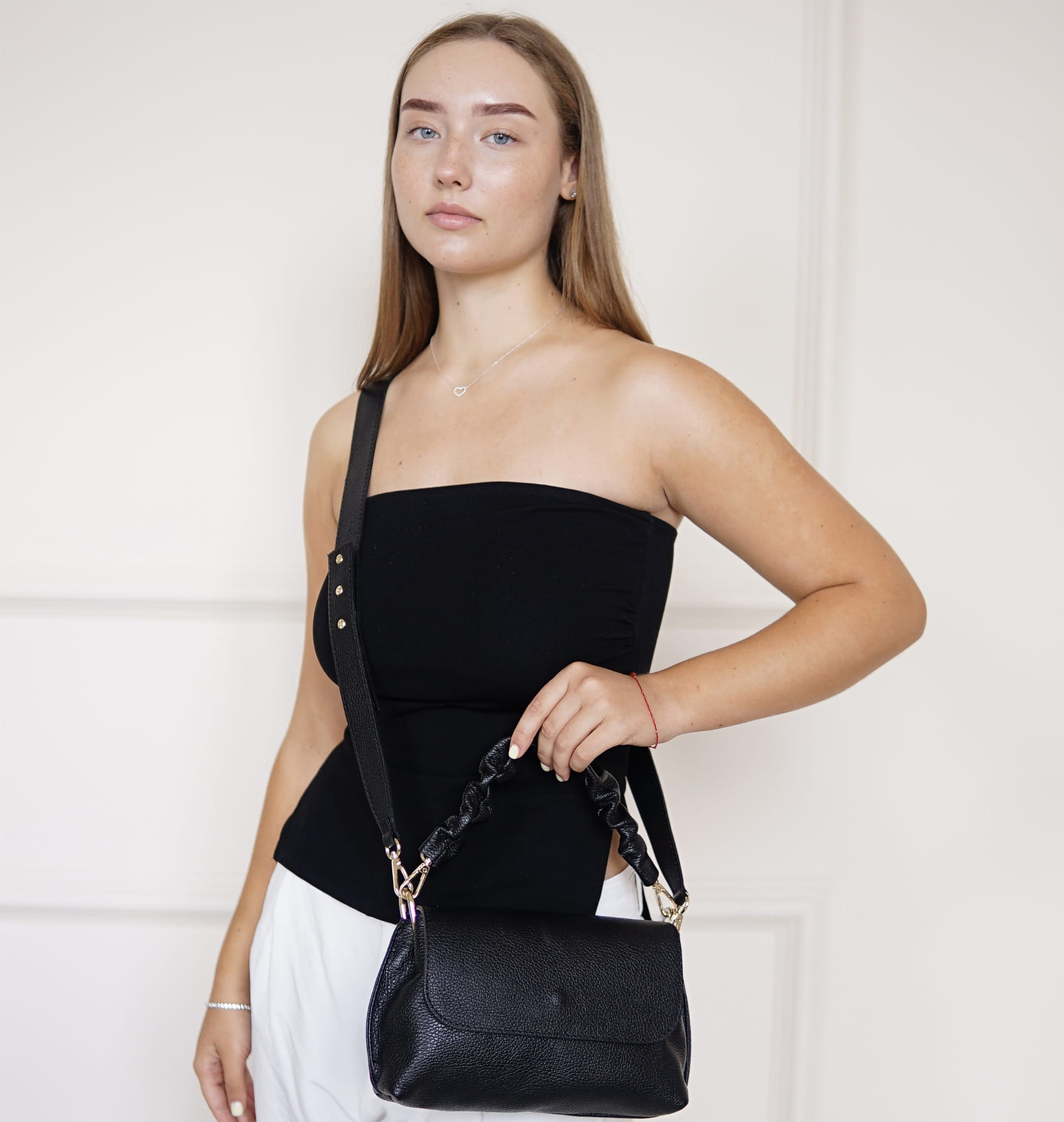 - Można nosić na dwa sposoby: na ramieniu lub przez ramię jak listonoszkę.
