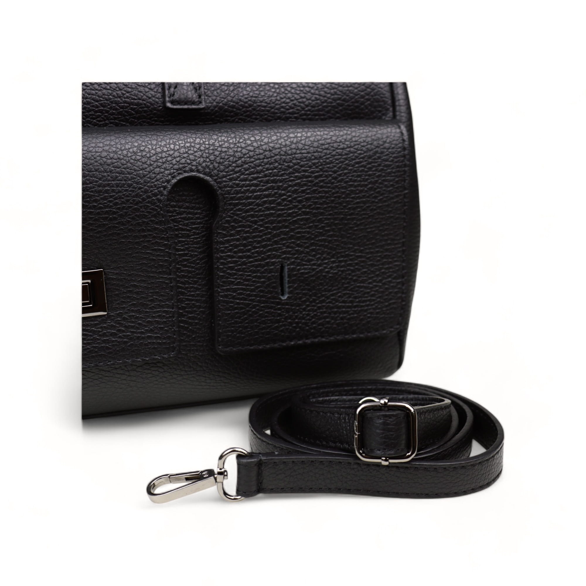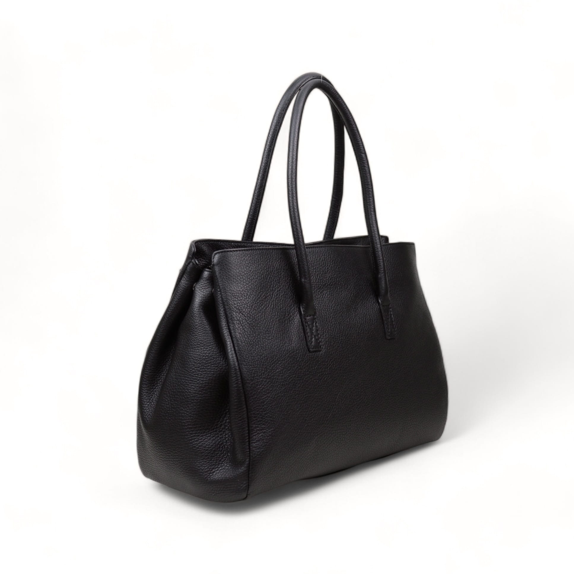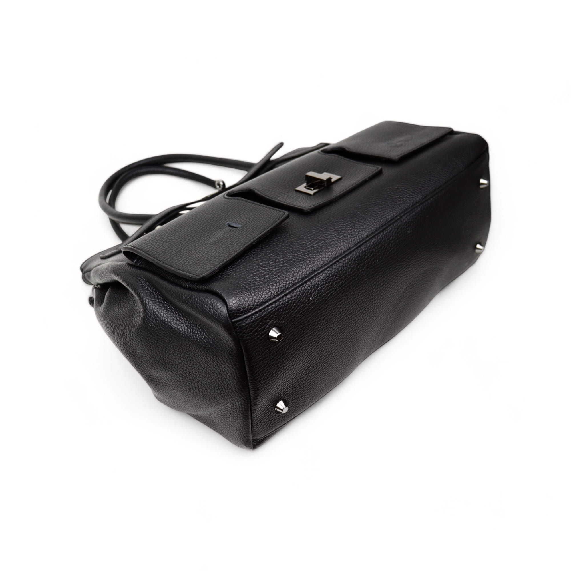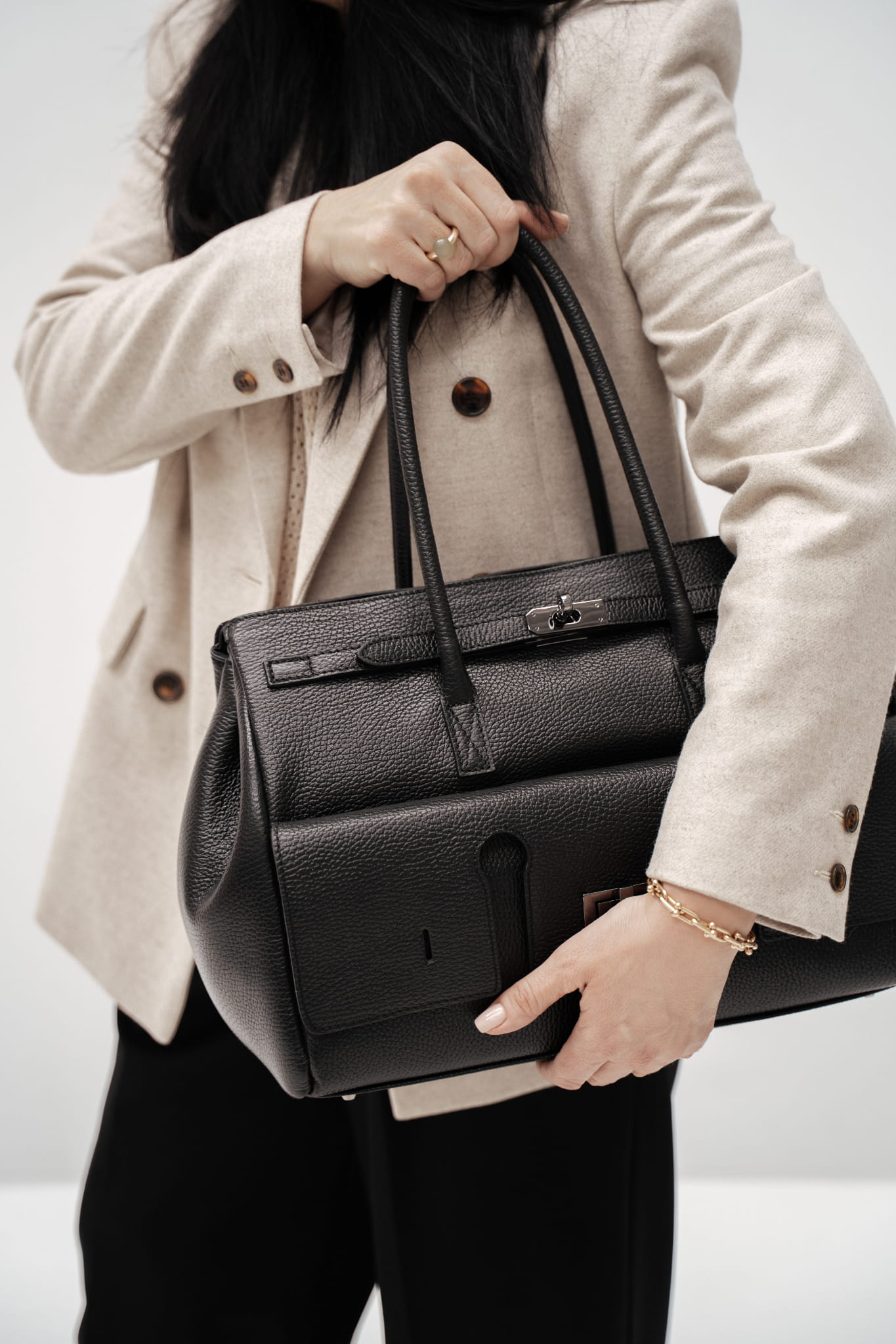 Dwa skórzane uchwyty do noszenia torby w ręku.