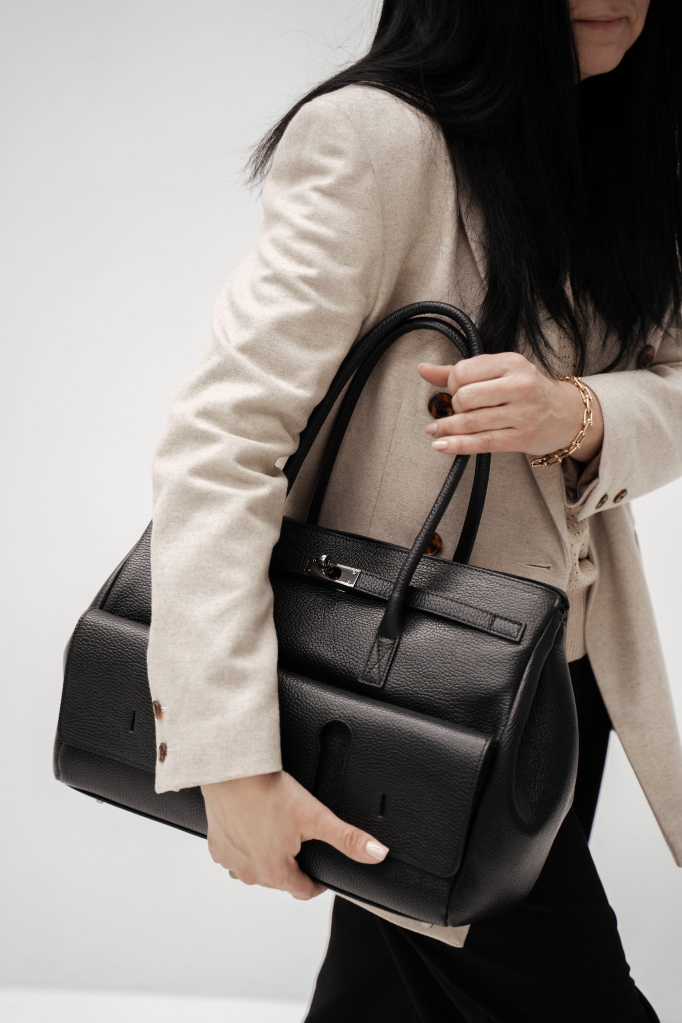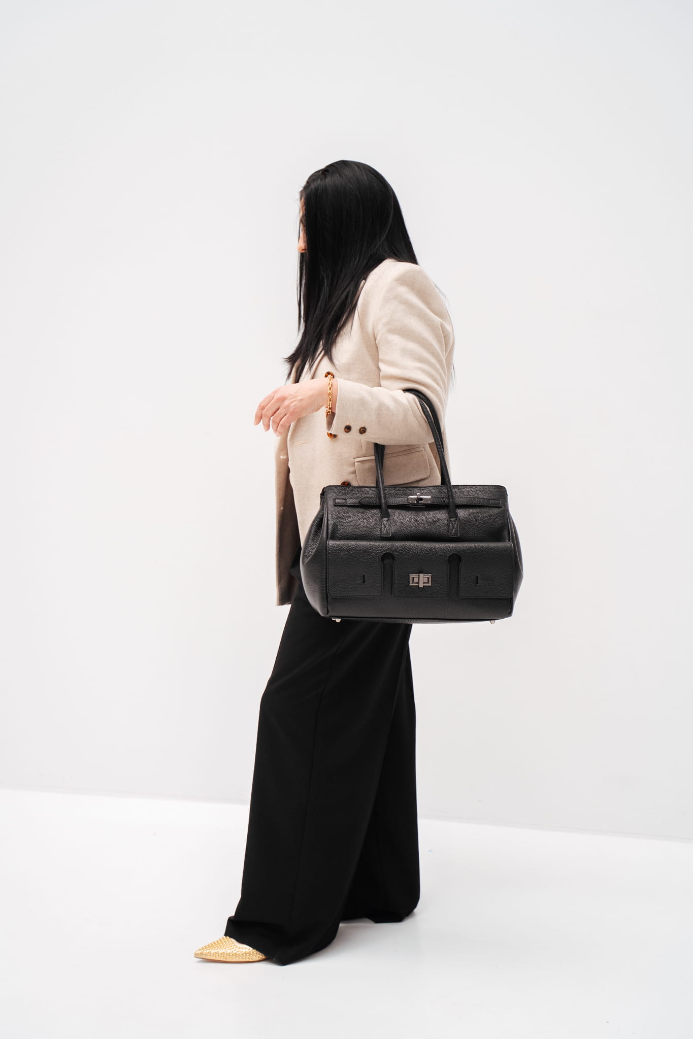 Posiada nóżki u podstawy, zabezpieczają torebkę przed zarysowaniami.